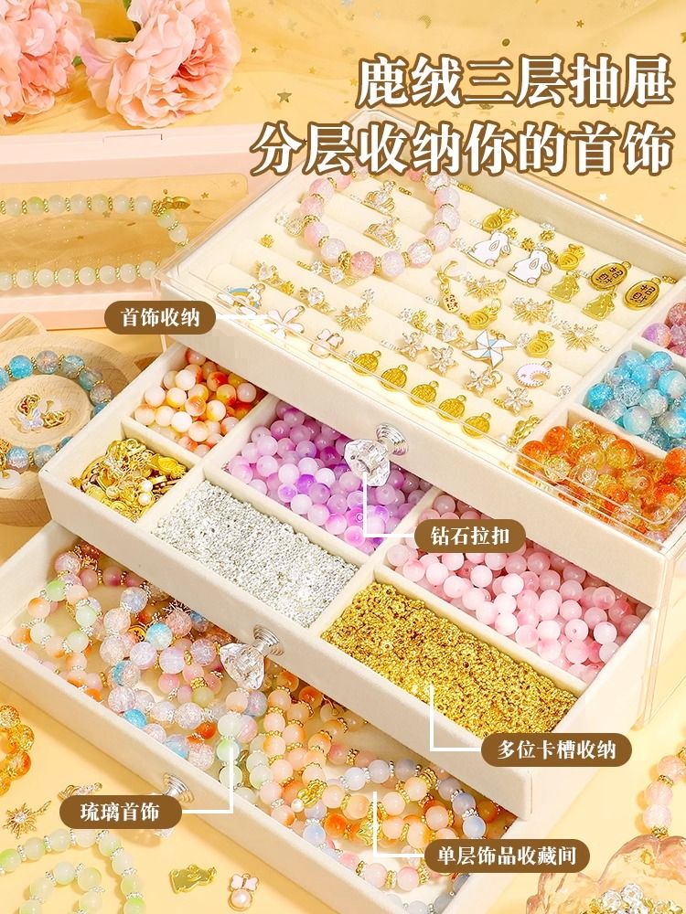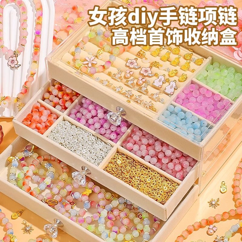 串珠手工手串琉璃项链diy材料儿童手链玩具女孩穿珠子女童自制作
