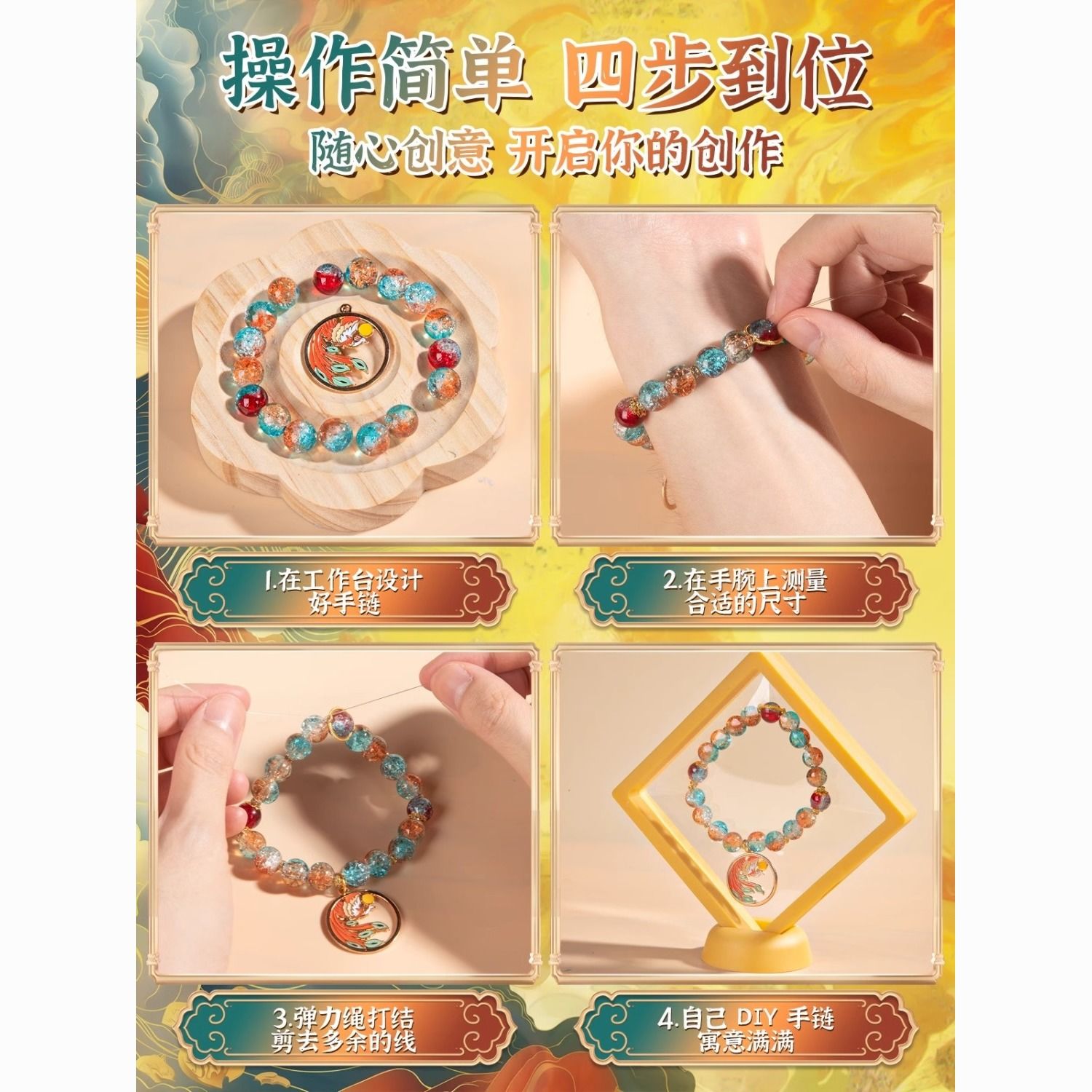 儿童手链串珠手串手工diy材料女孩的生日礼物礼盒女童穿珠子玩具6