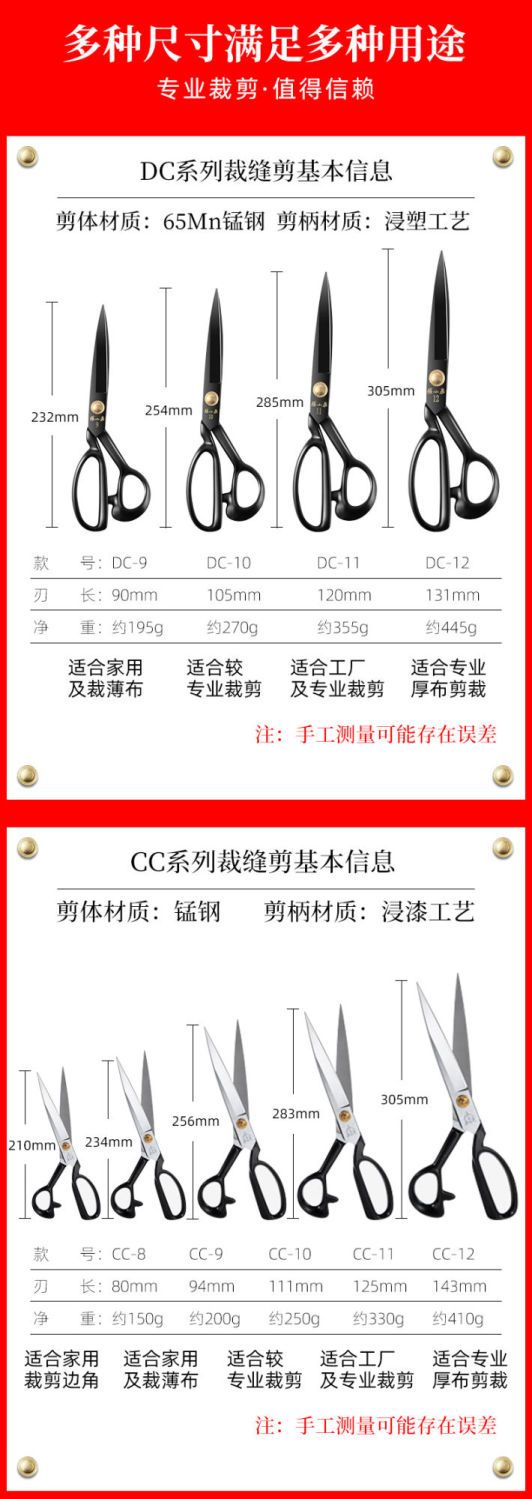 张小泉剪刀锰钢正品服装裁布大剪刀剪裁缝纫8-12寸10专业裁缝剪