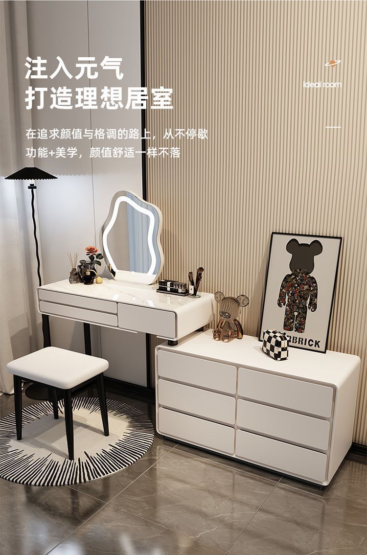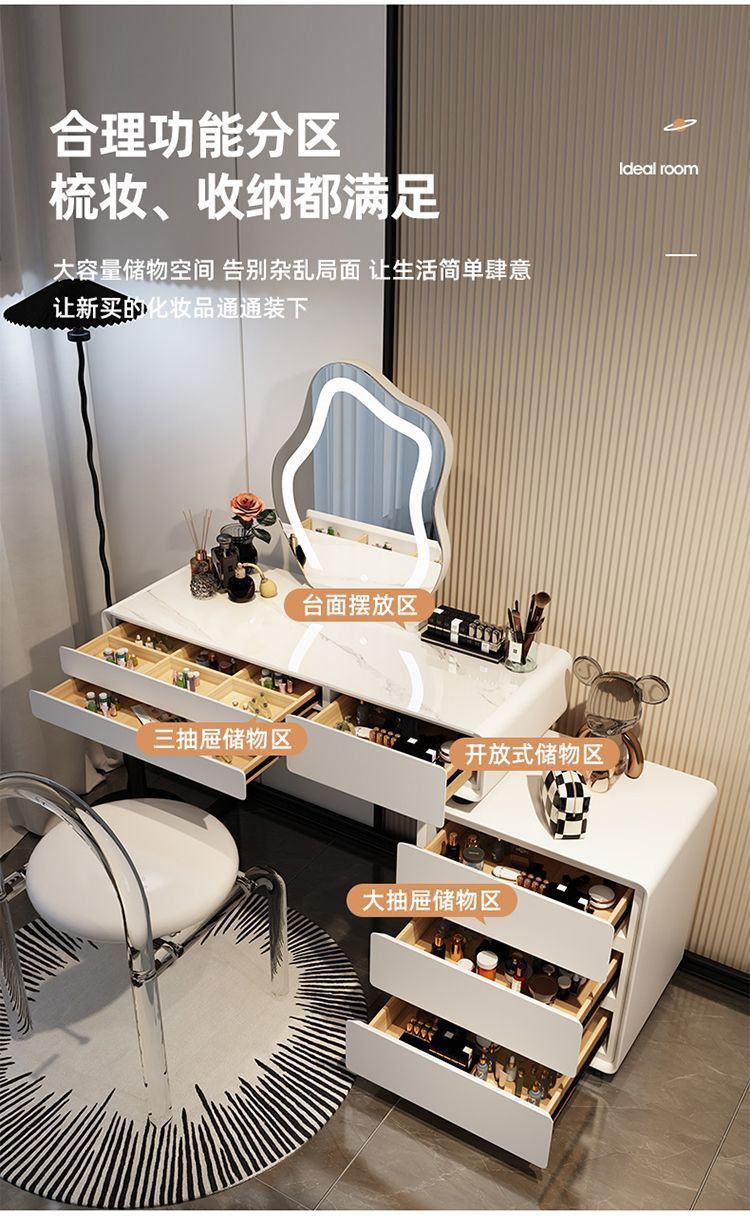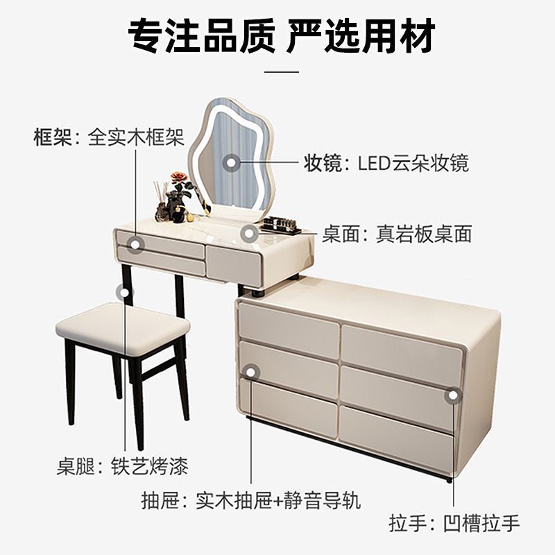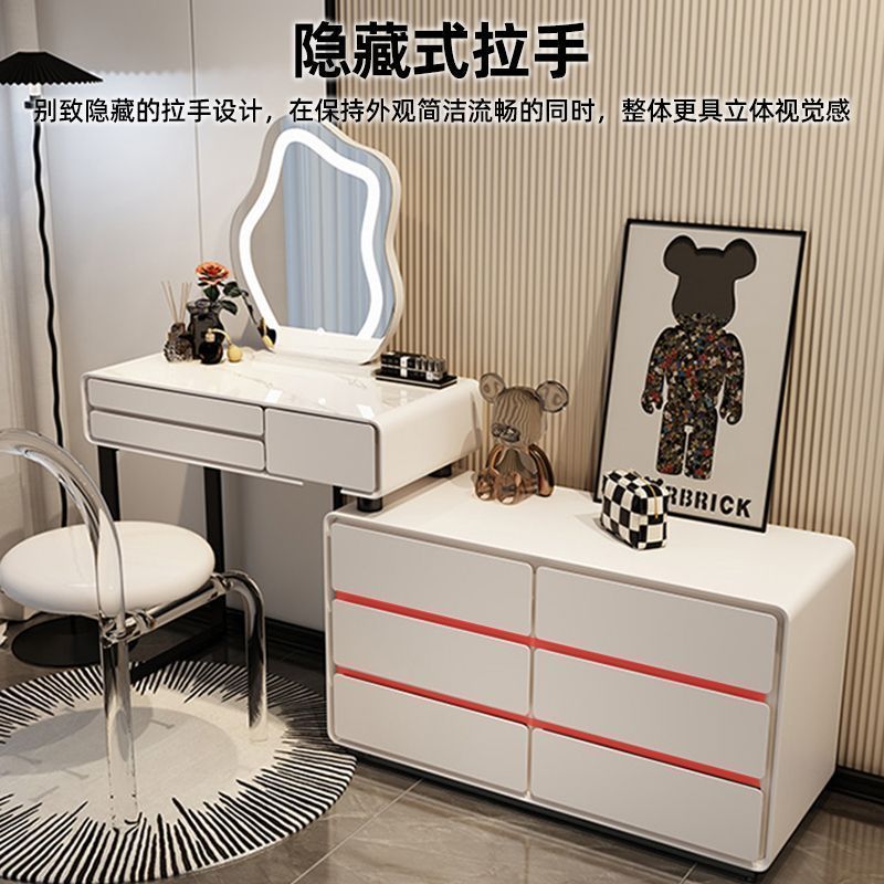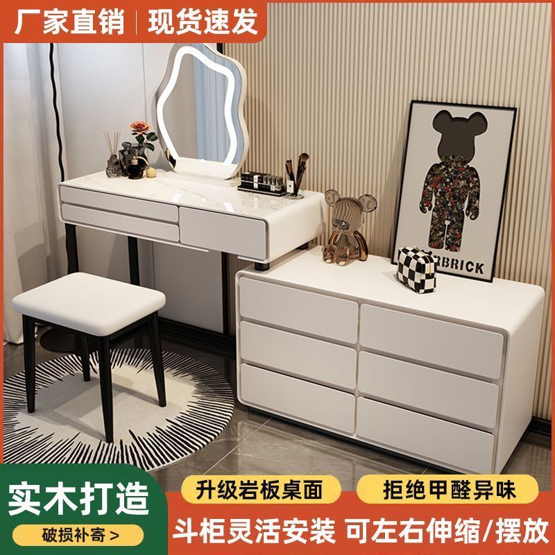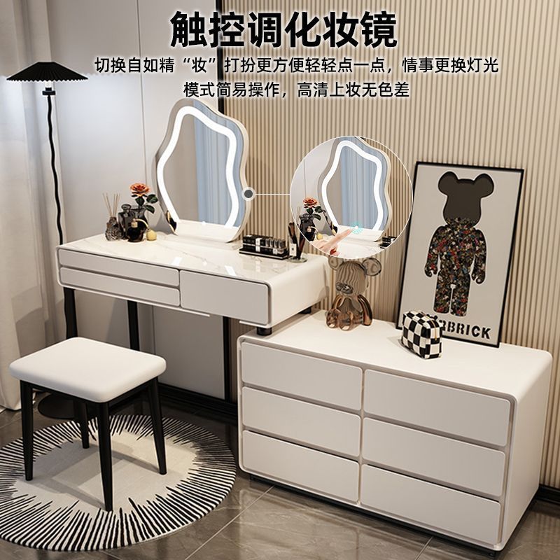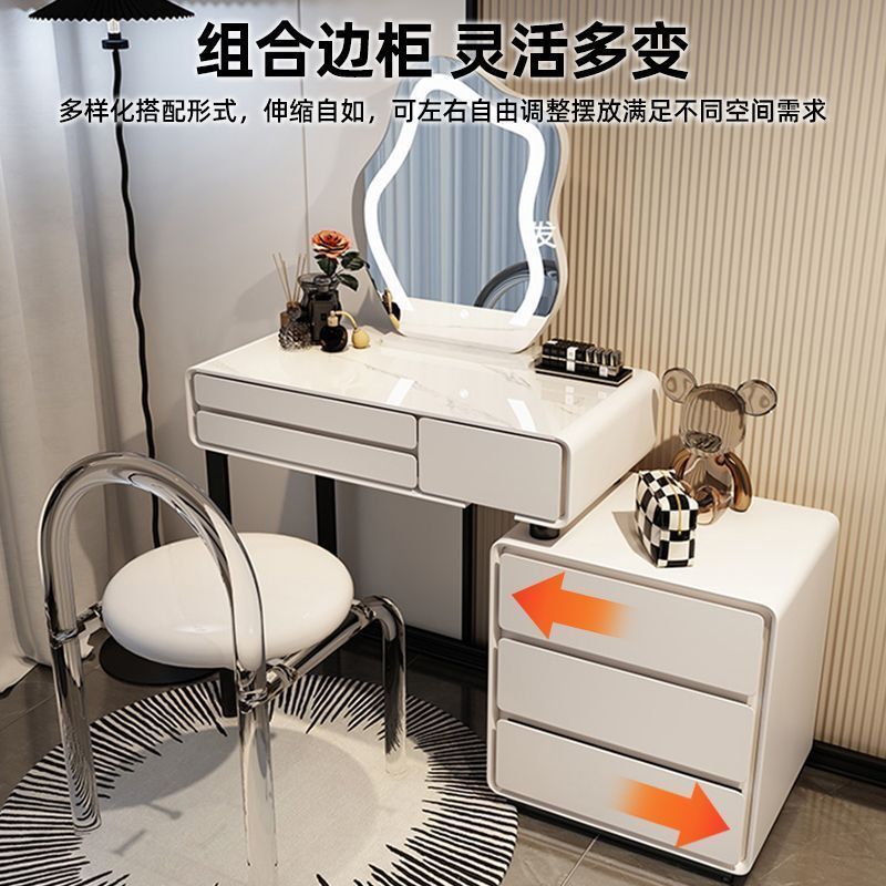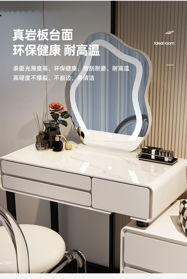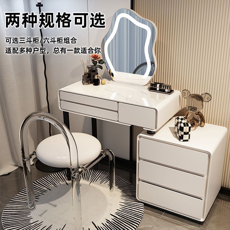 奶油风梳妆台实木岩板智能现代简约小户型化妆桌侘寂风新款化妆台
