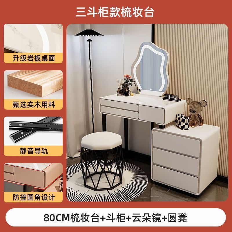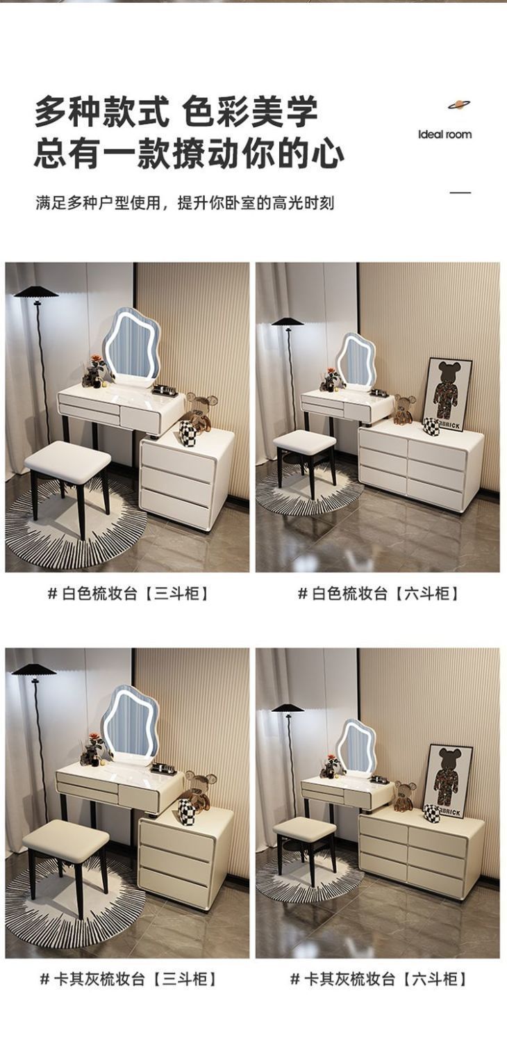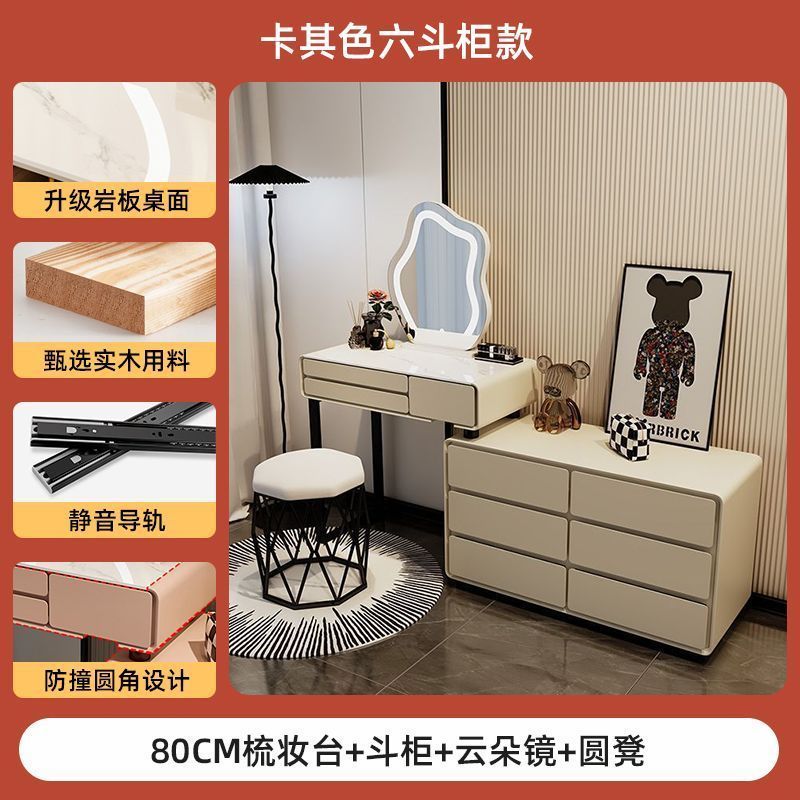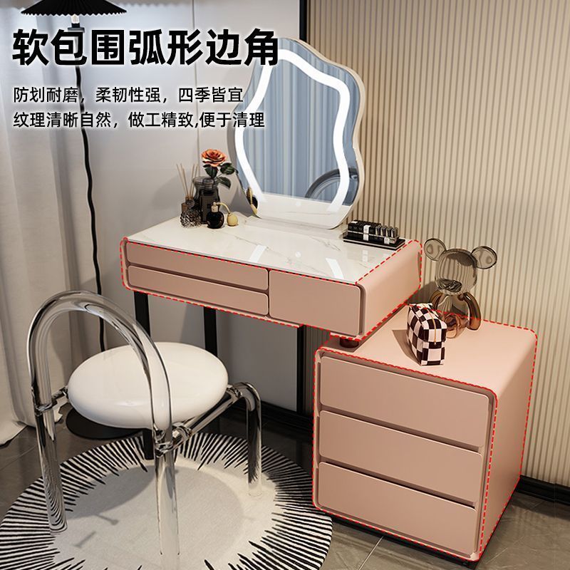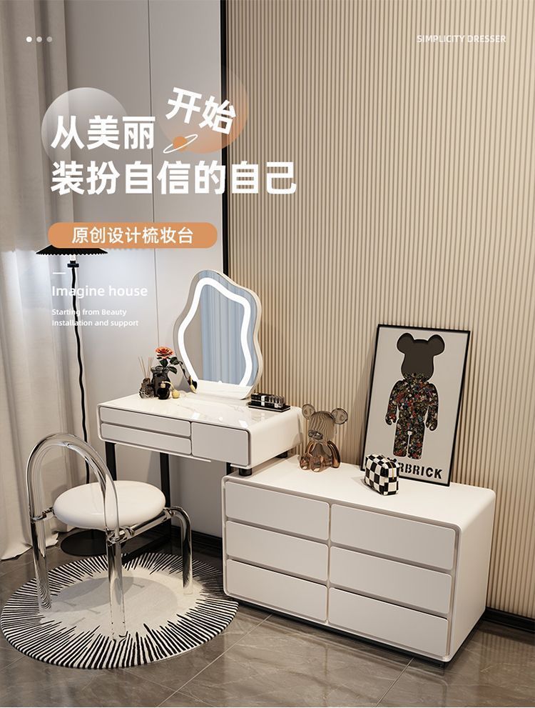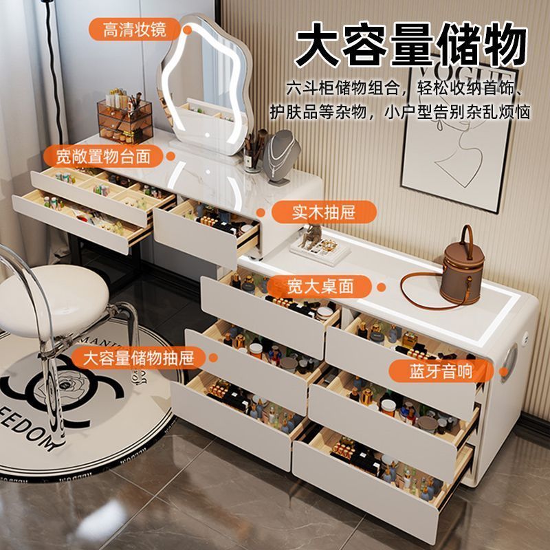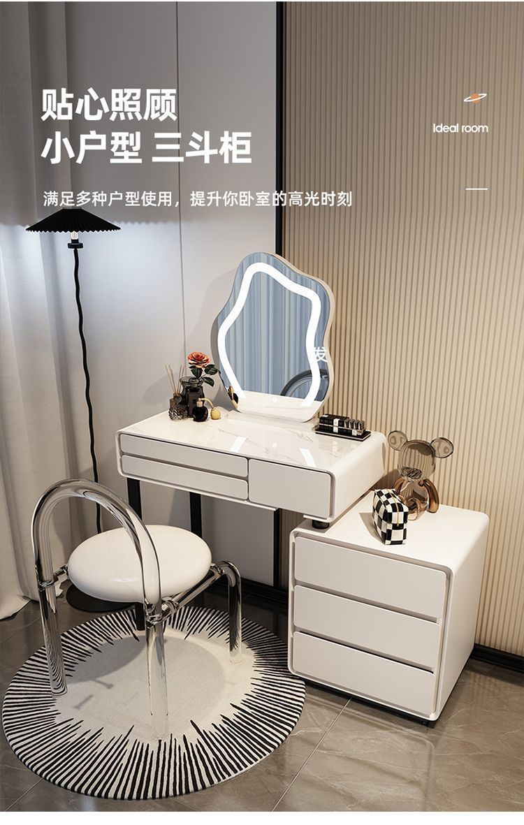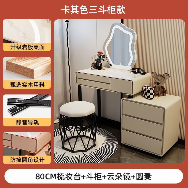 奶油风梳妆台实木岩板智能现代简约小户型化妆桌侘寂风新款化妆台