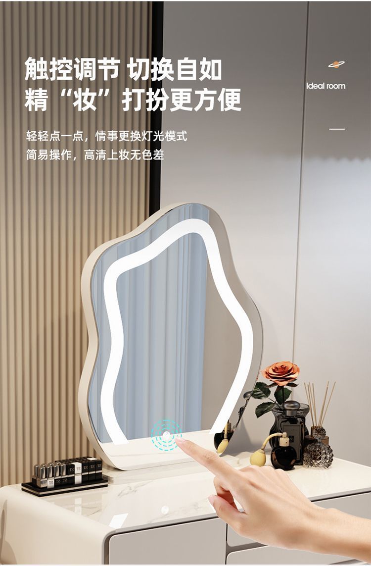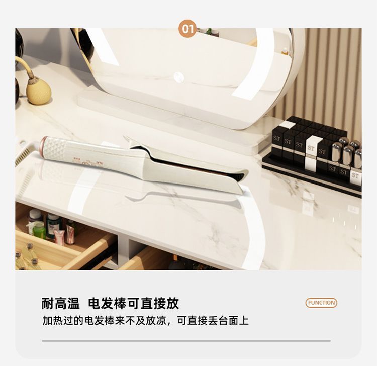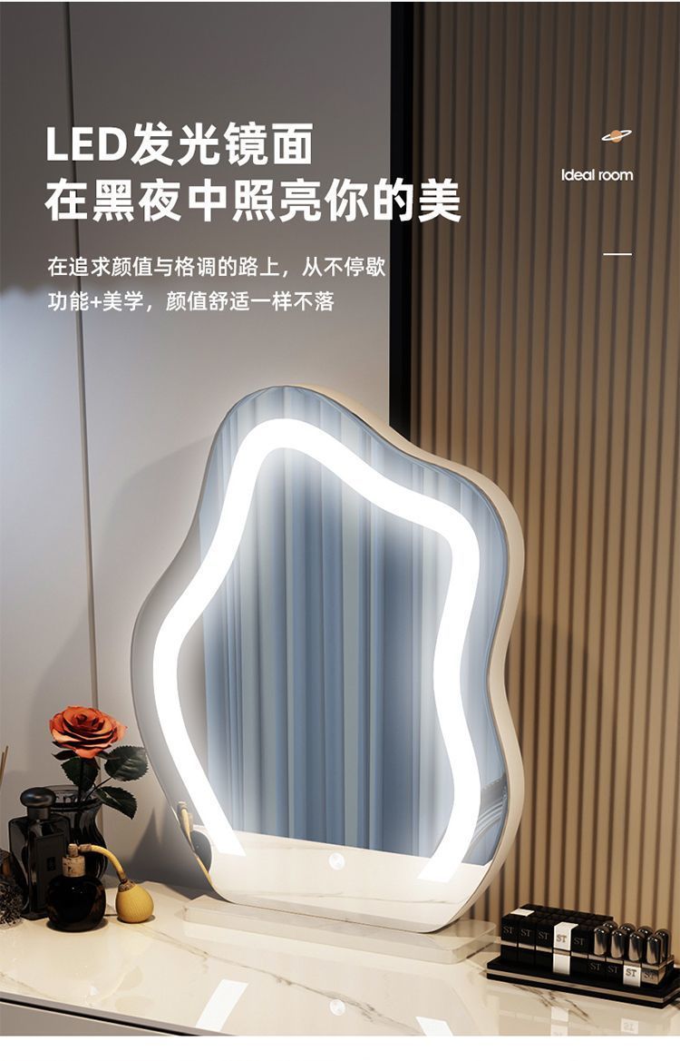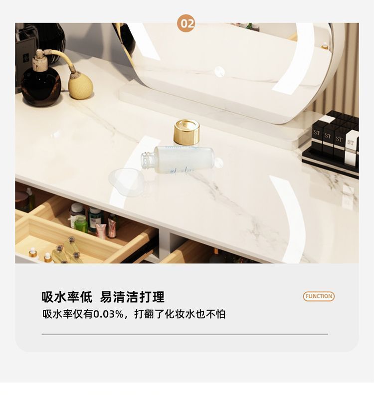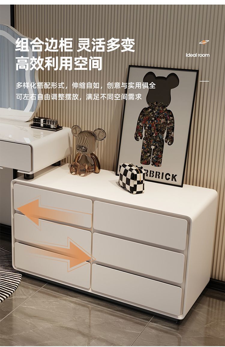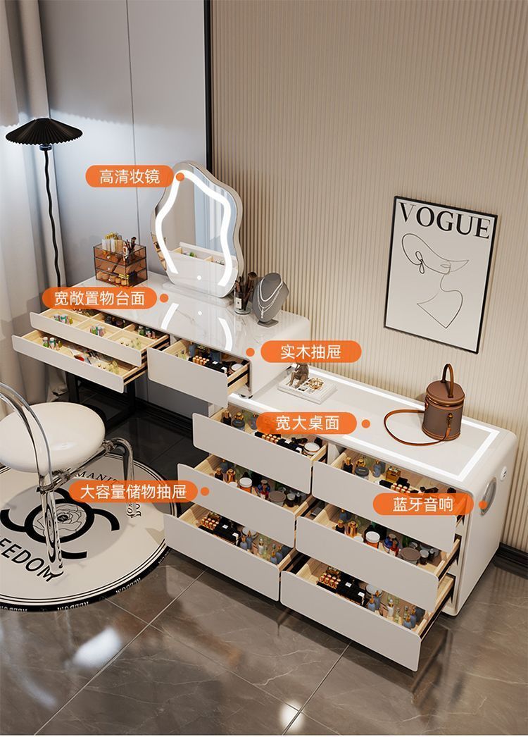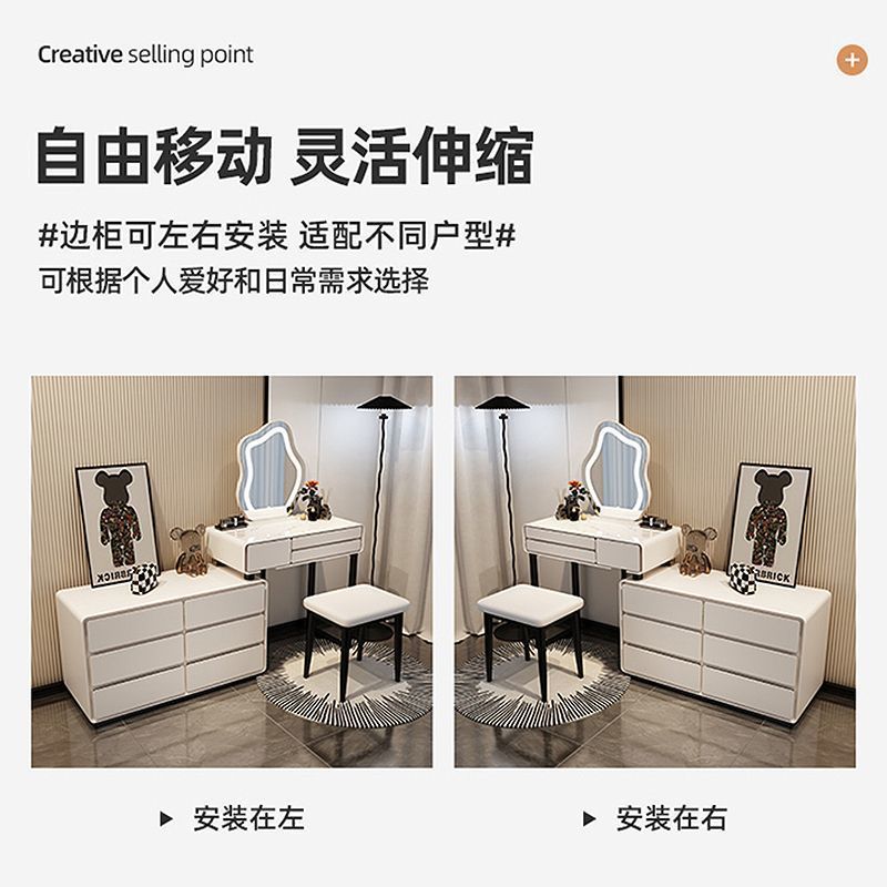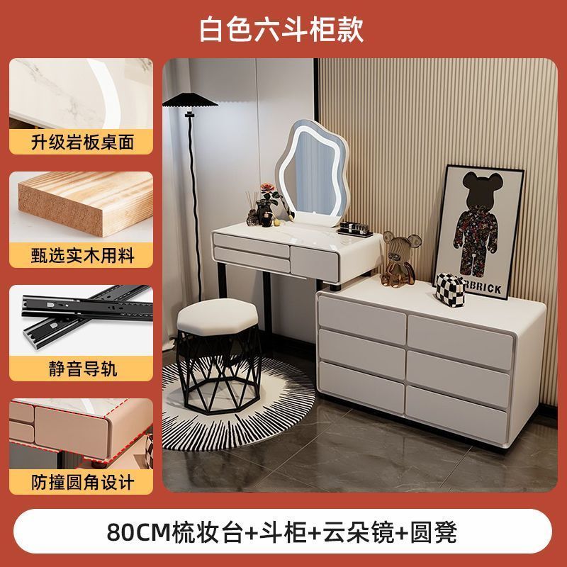 奶油风梳妆台实木岩板智能现代简约小户型化妆桌侘寂风新款化妆台