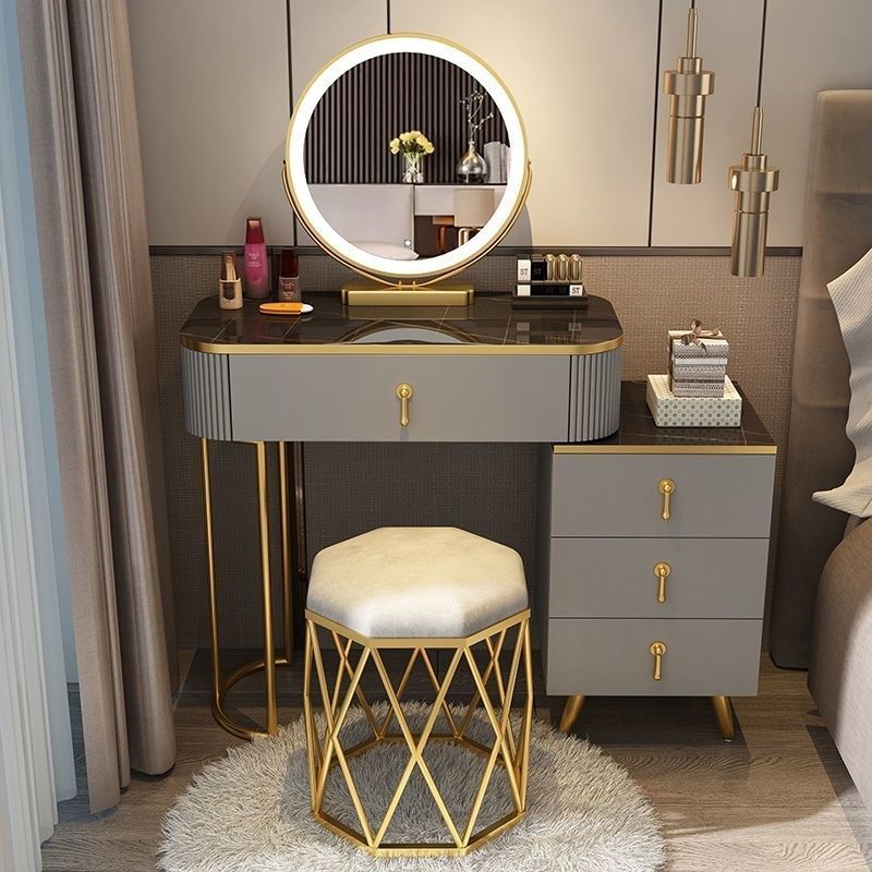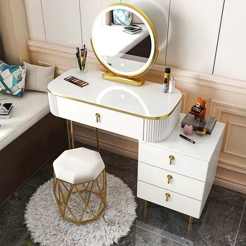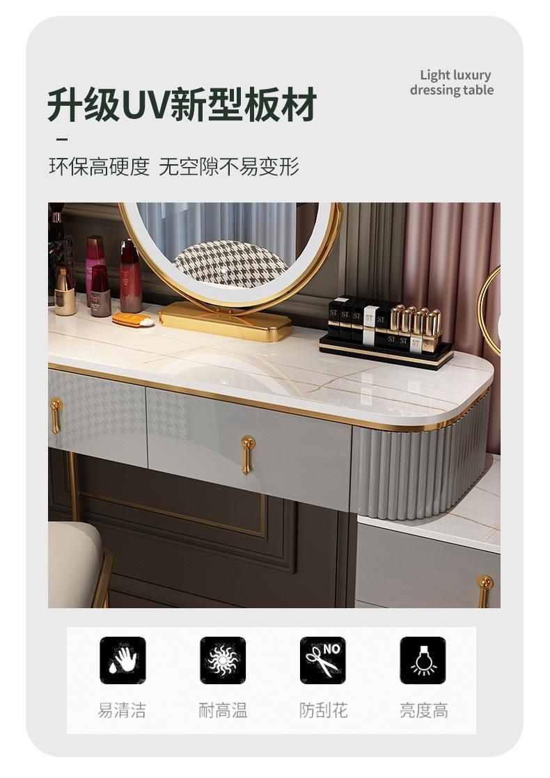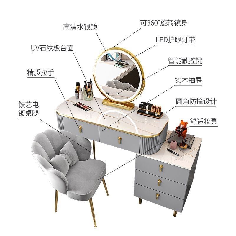 轻奢梳妆台卧室现代简约化妆台实木网红ins风化妆桌子收纳柜高档