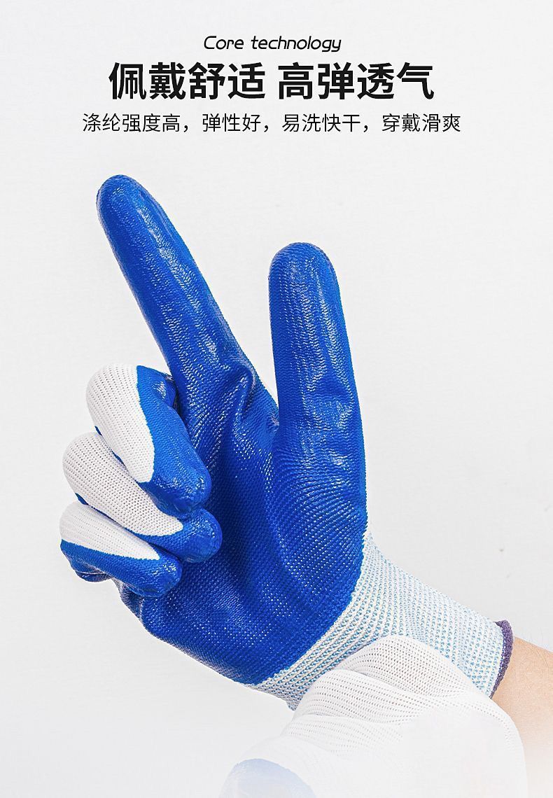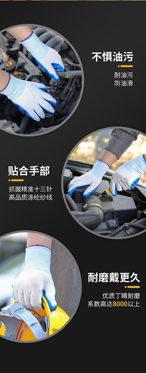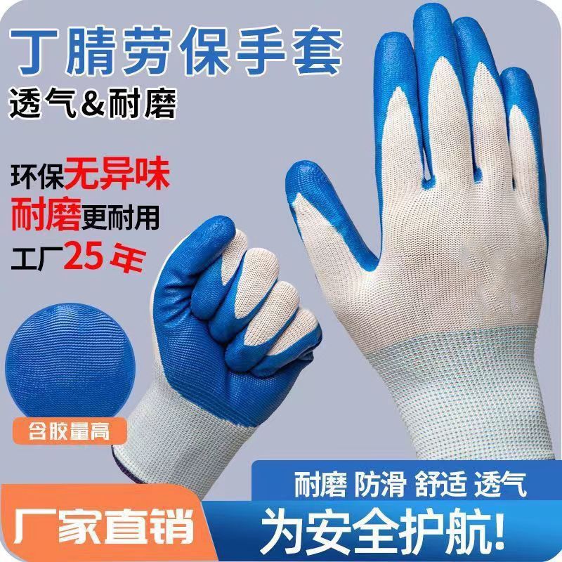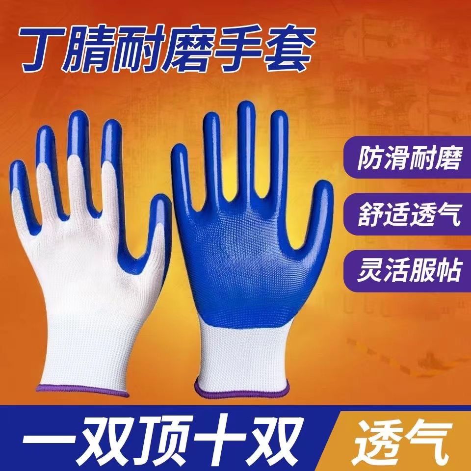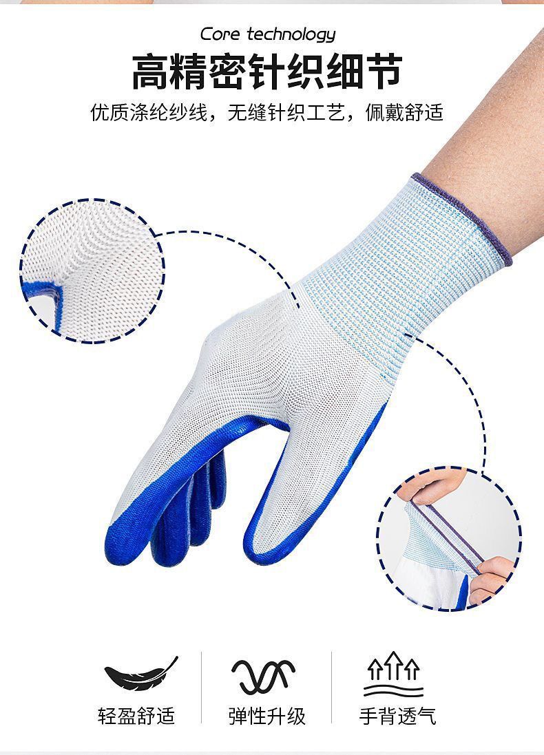 正品手套耐磨劳保透气耐用防滑干活工作工地橡胶乳胶胶皮手套批发