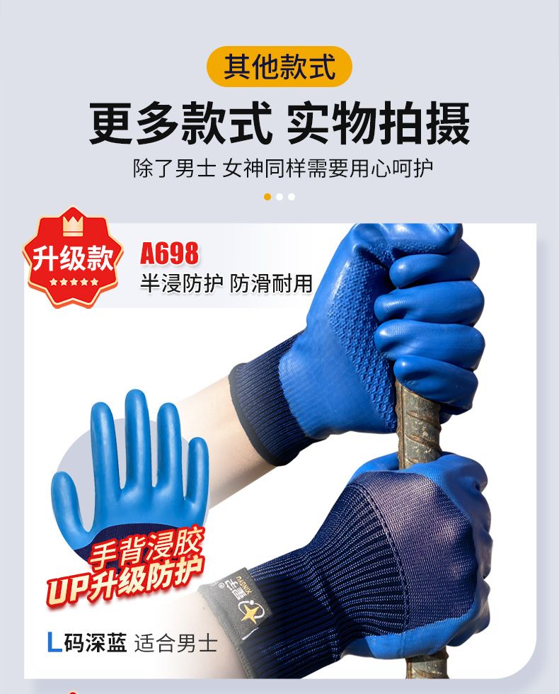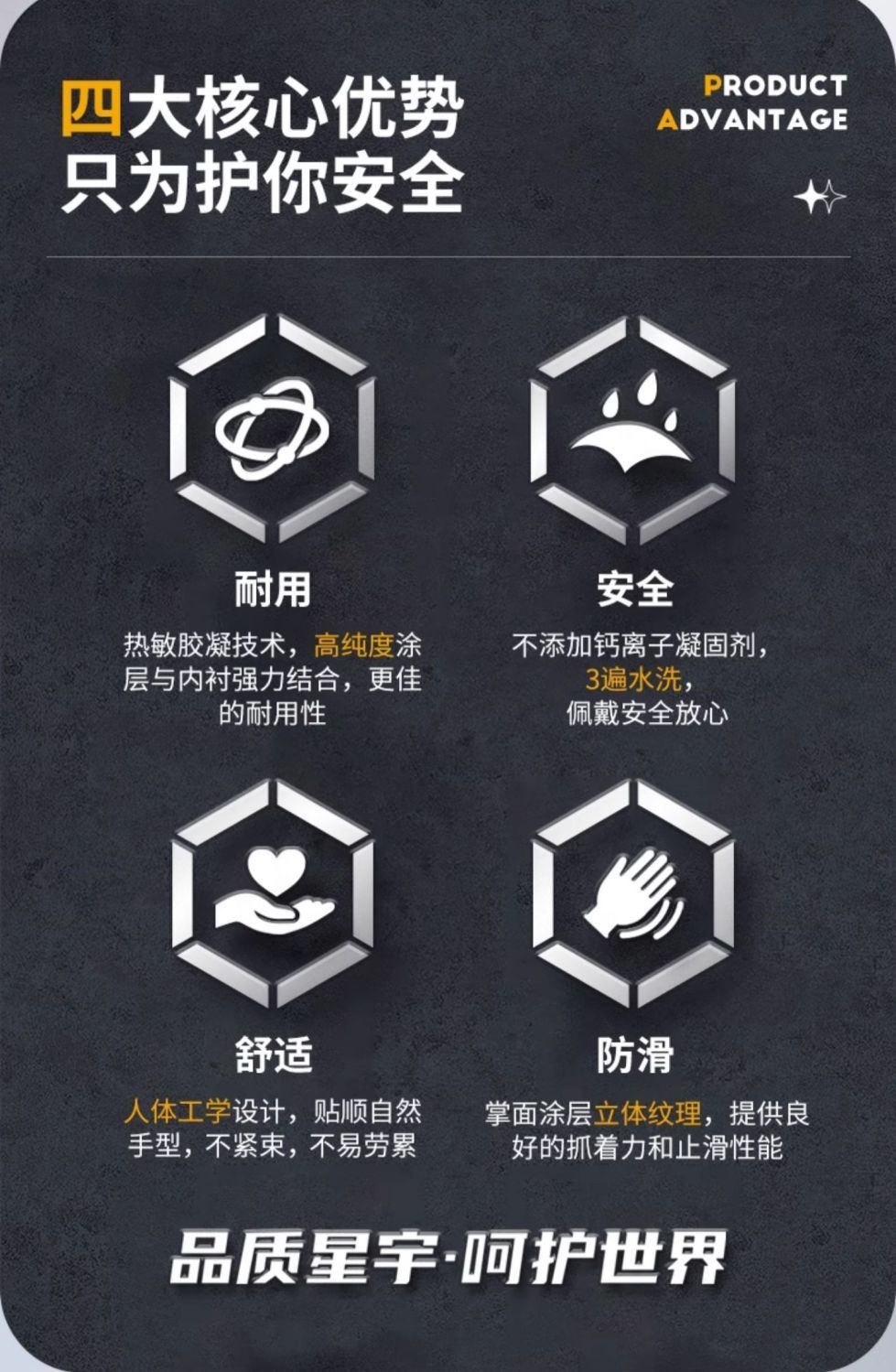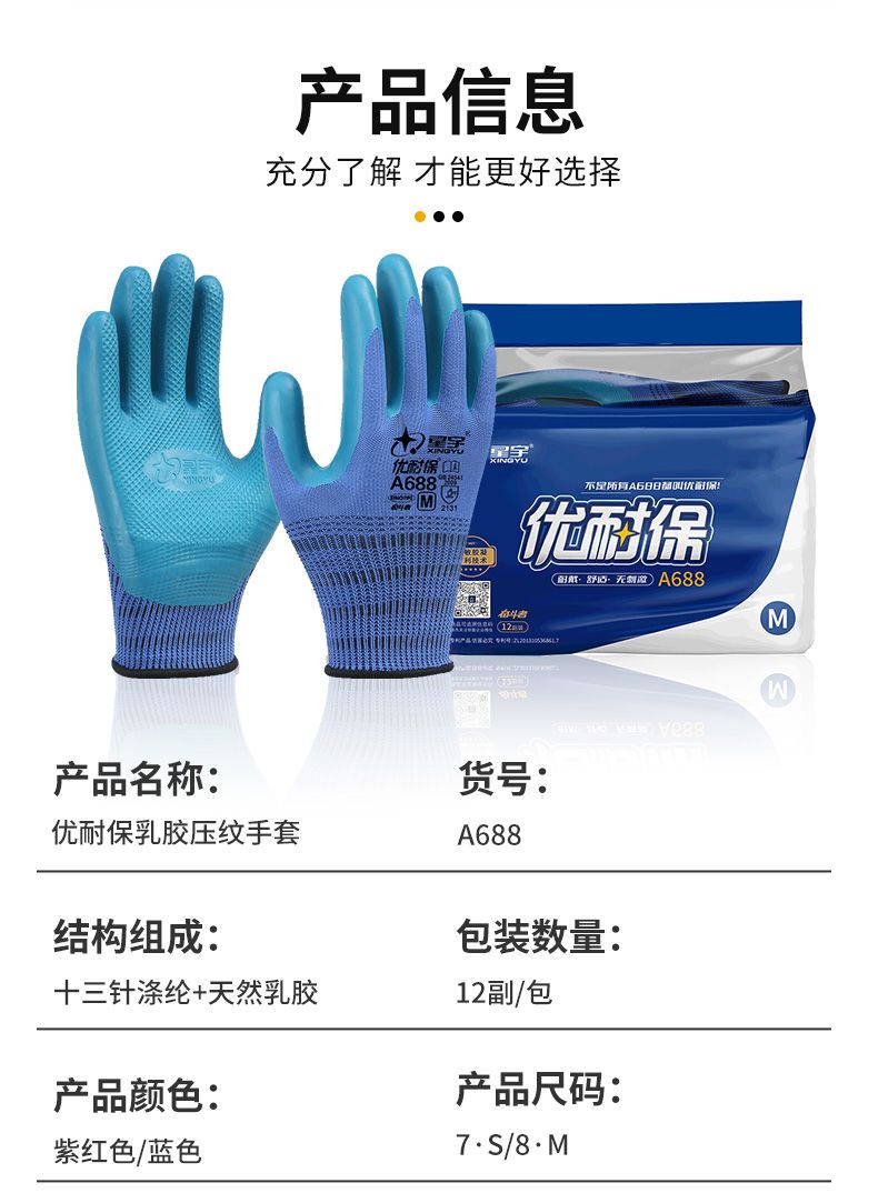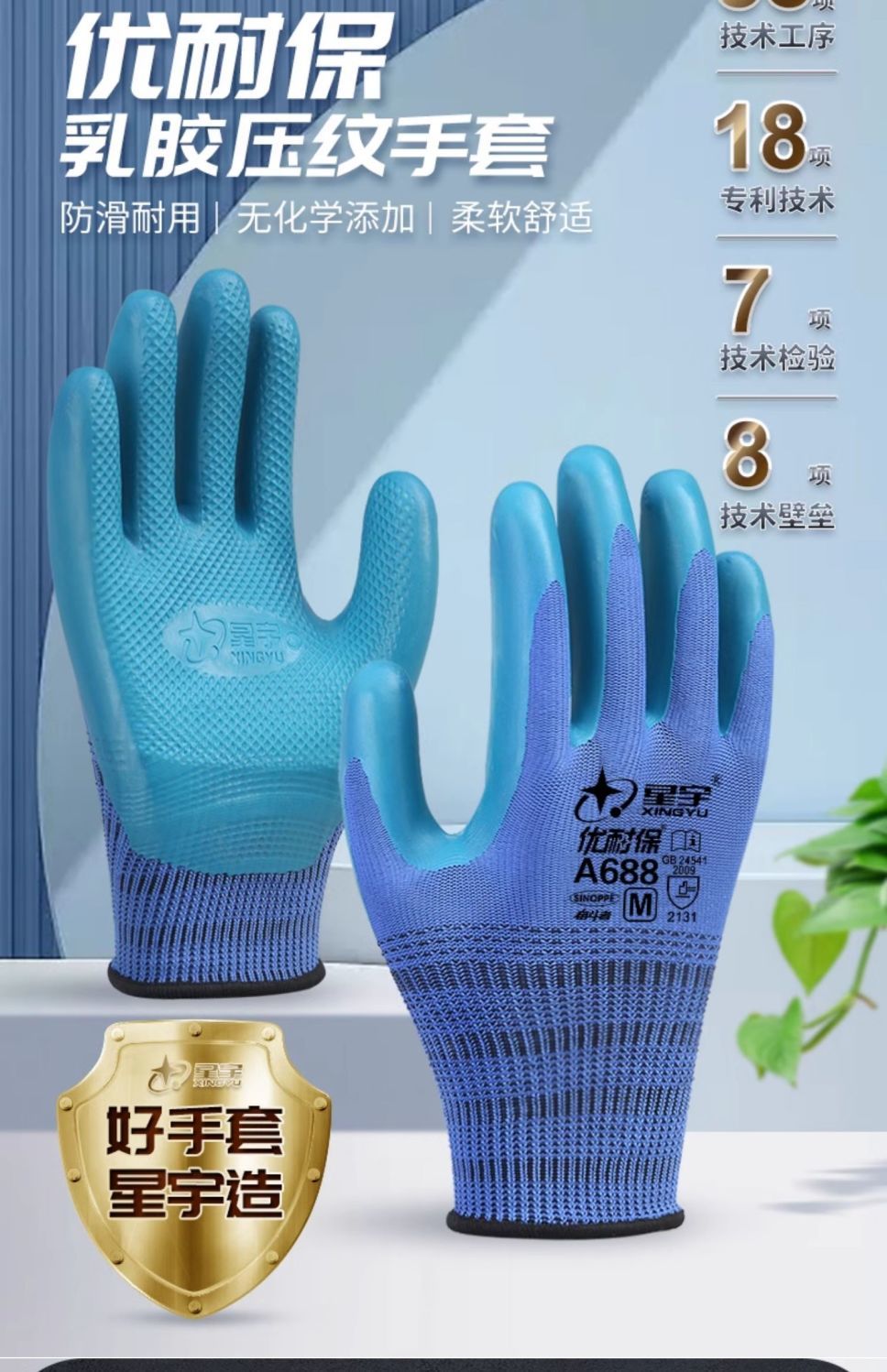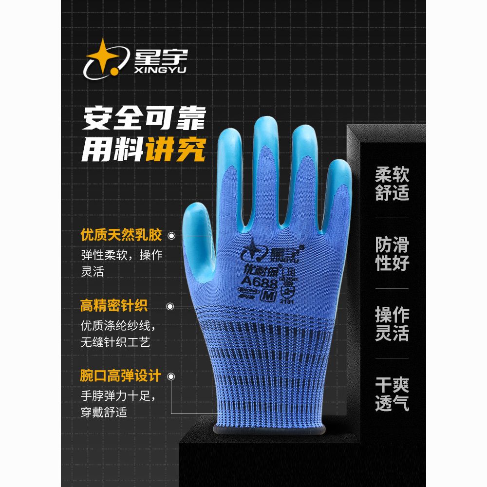 星宇正品优耐保A688工地干活胶皮劳保钢筋手套耐磨防滑透气钢筋工