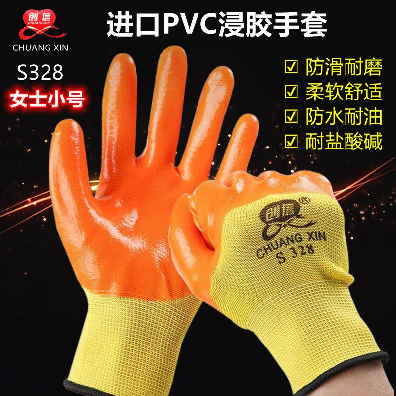 创信P318手套劳保耐磨加厚PVC耐磨耐油防油防水胶皮带胶工地手套