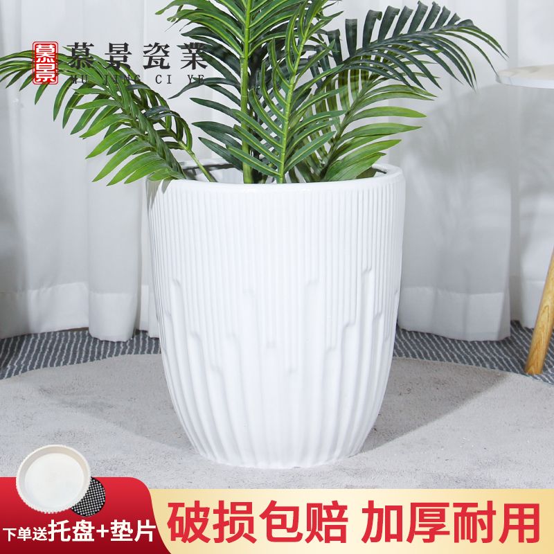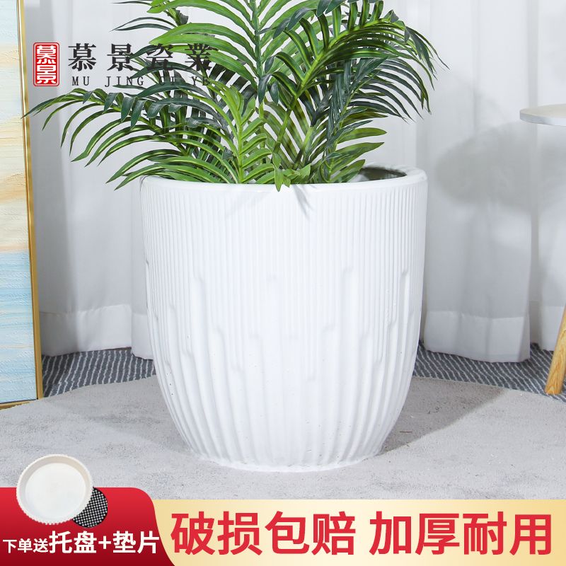 北欧现代陶瓷大花盆简约百搭盆栽特大口径龟背竹龙血树绿植通用