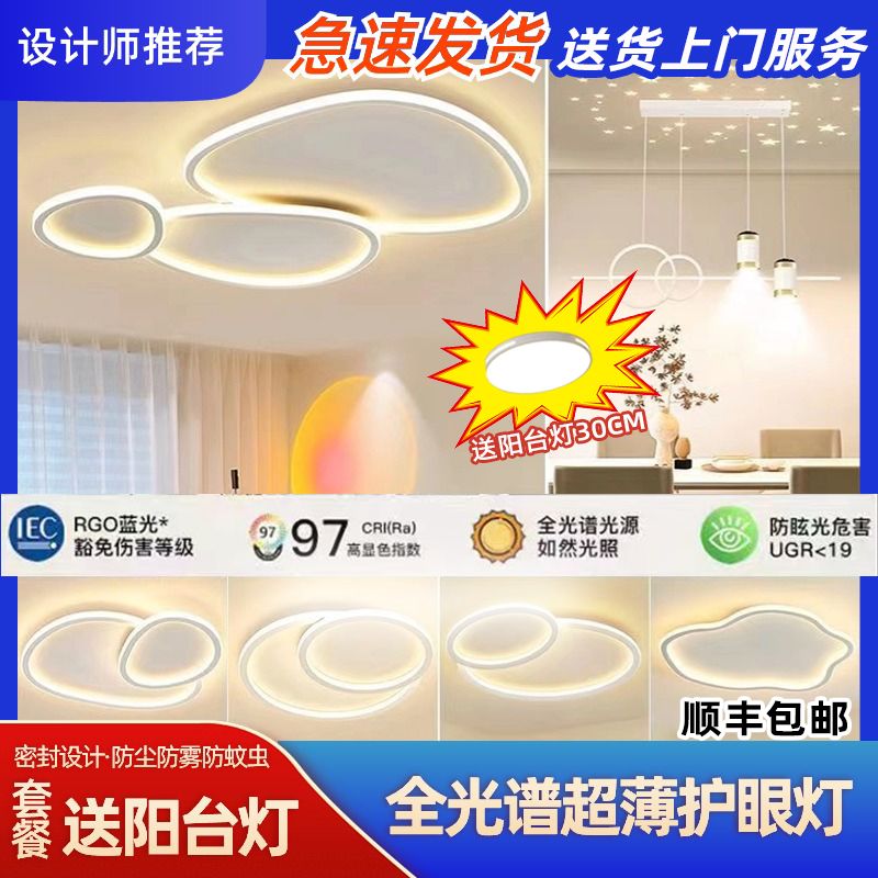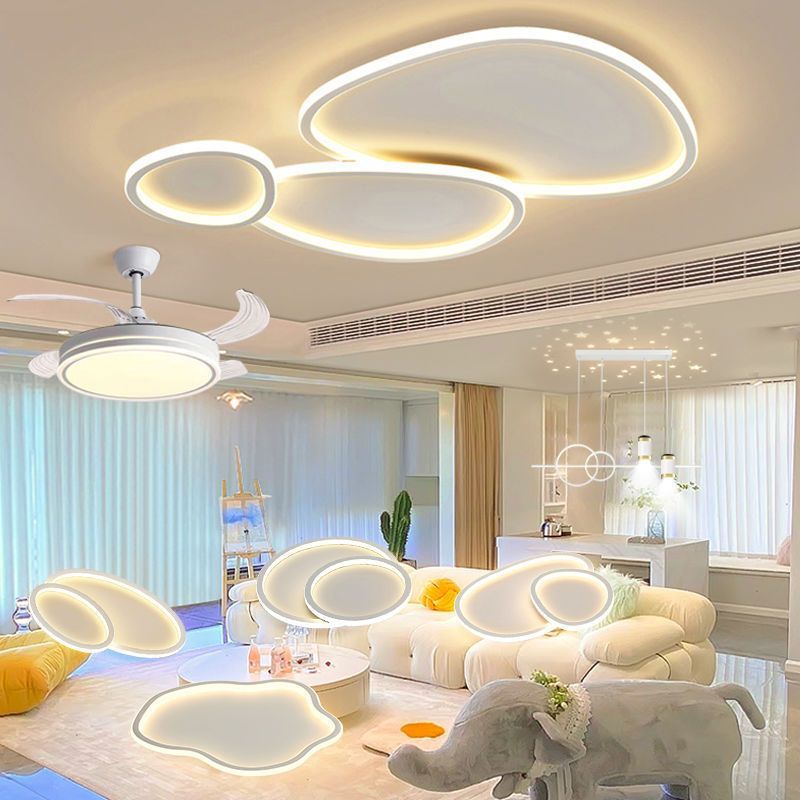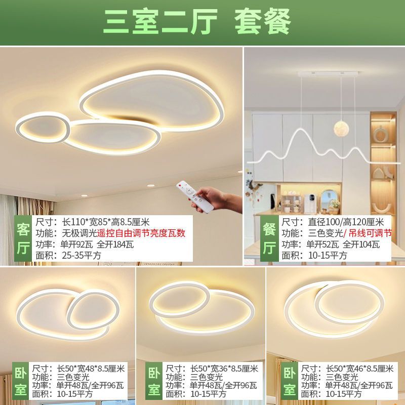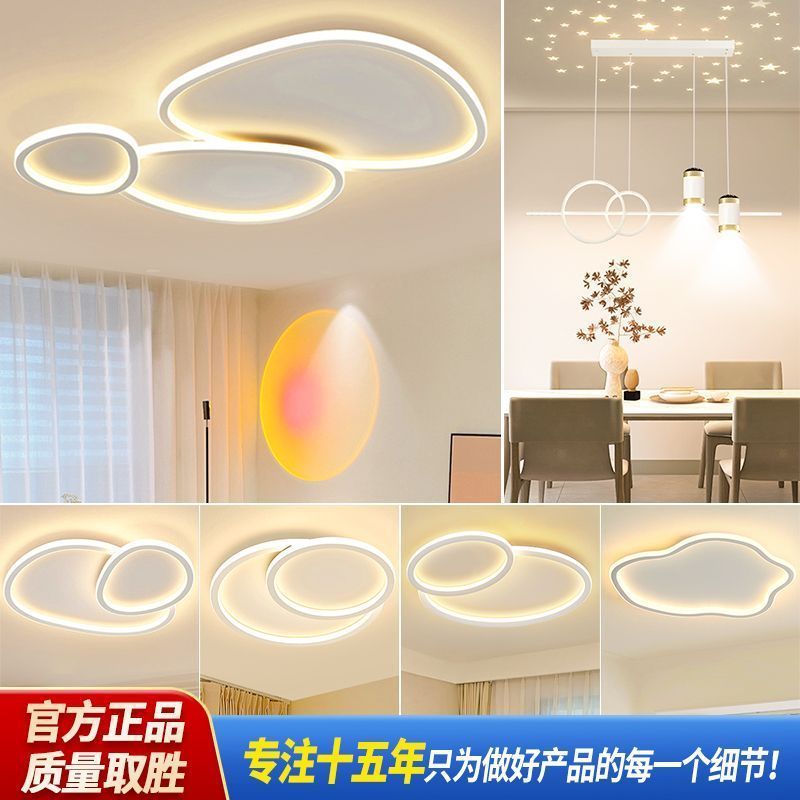 2024广东中山灯具客厅主灯云朵鹅卵石吸顶灯简约现代大气全屋套餐