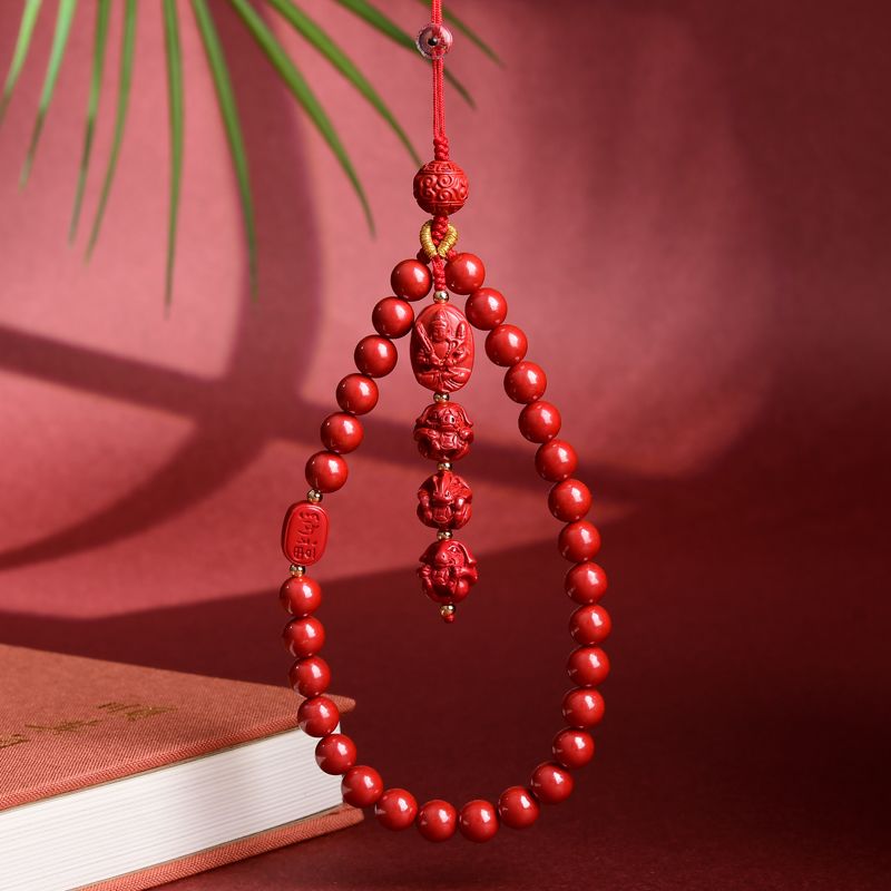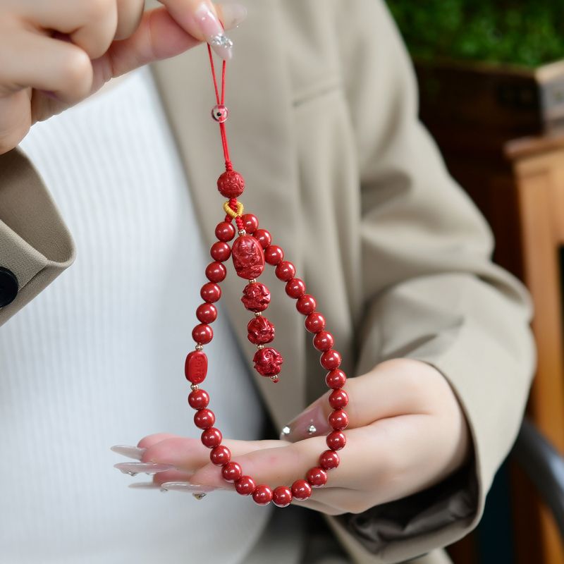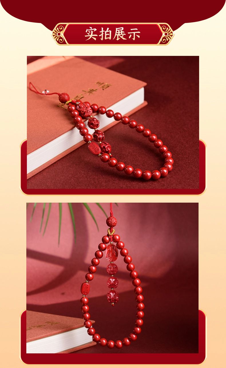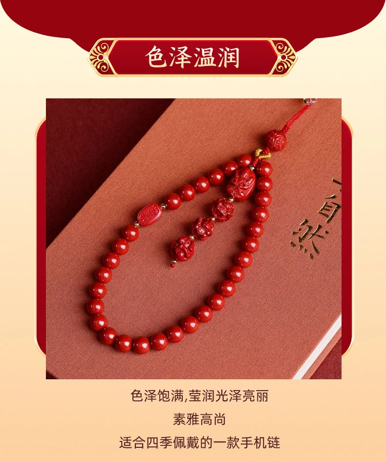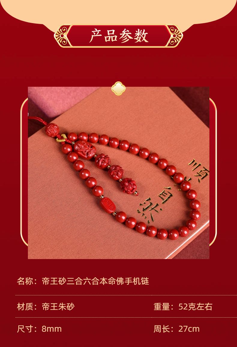 帝王朱砂手机链手机壳防丢链短款紫金砂三合六合手腕链本命佛手链