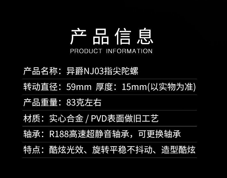 异爵发光指尖陀螺全金属夜光手指指间解压减压神器合金男生玩具