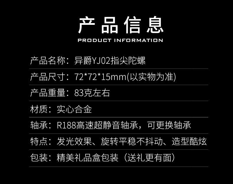 异爵指尖陀螺发光金属合金夜光手指指间减压解压成人玩具抖音同款