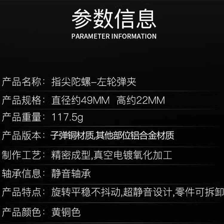 左轮子弹旋转指尖玩具全金属陀螺儿童玩具成人减压纯铜可拆