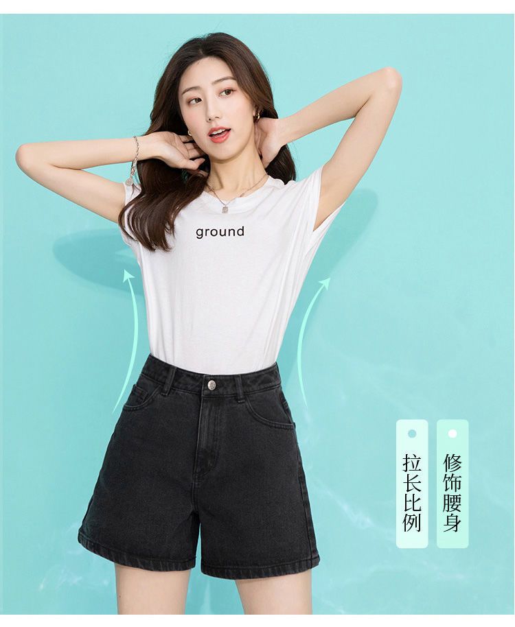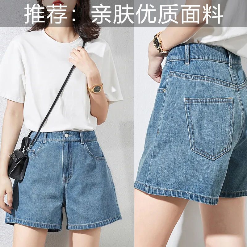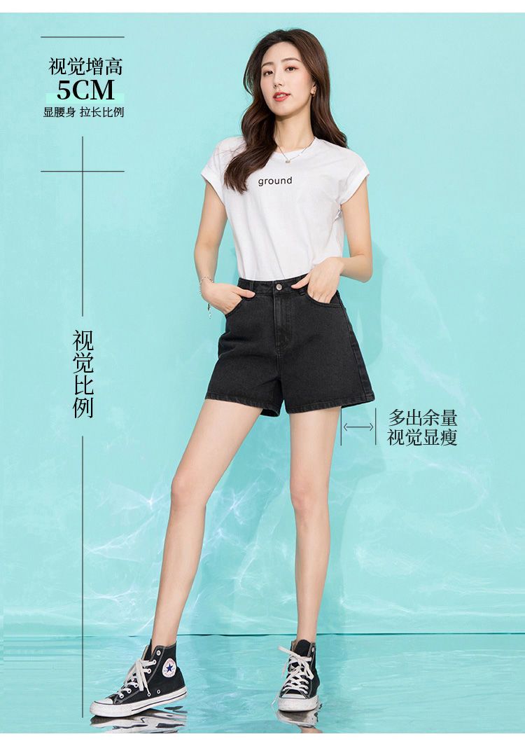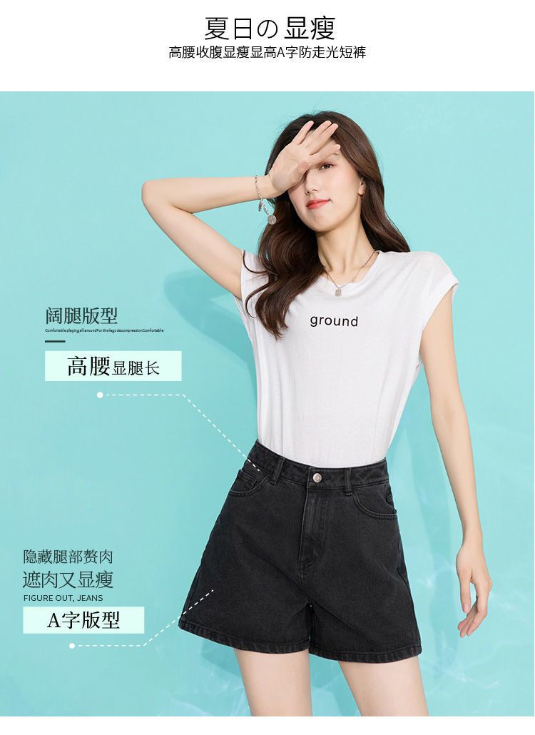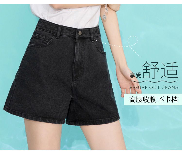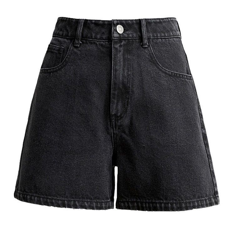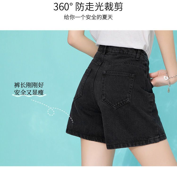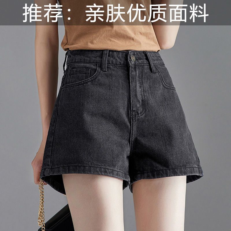 黑色牛仔短裤简约女款高腰显瘦薄款夏季阔腿宽松a字版三分热裤