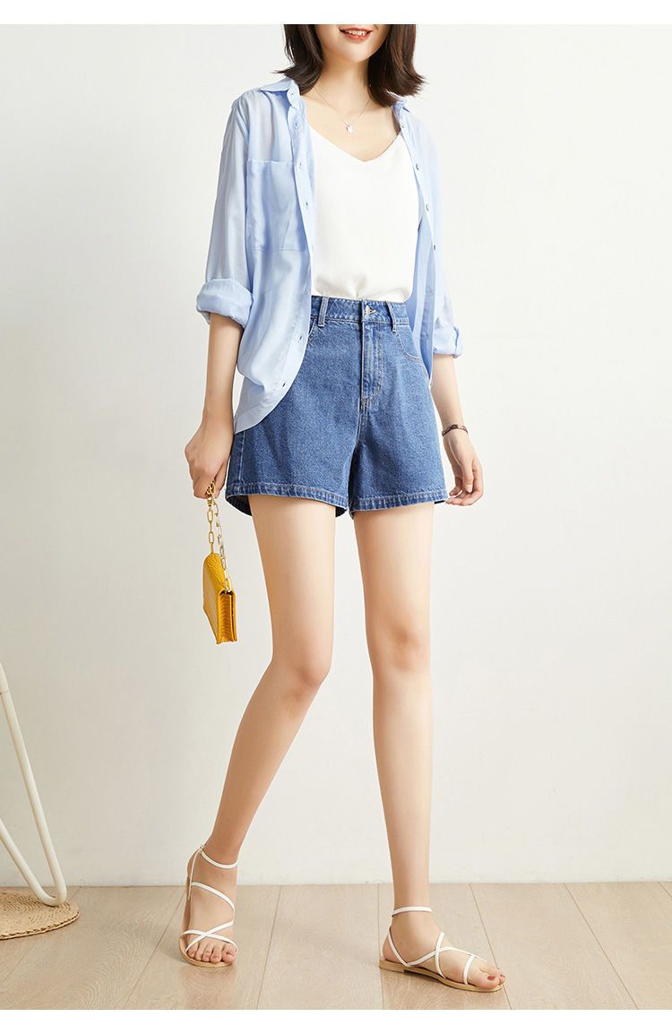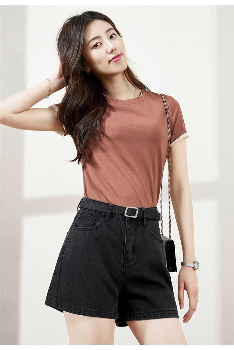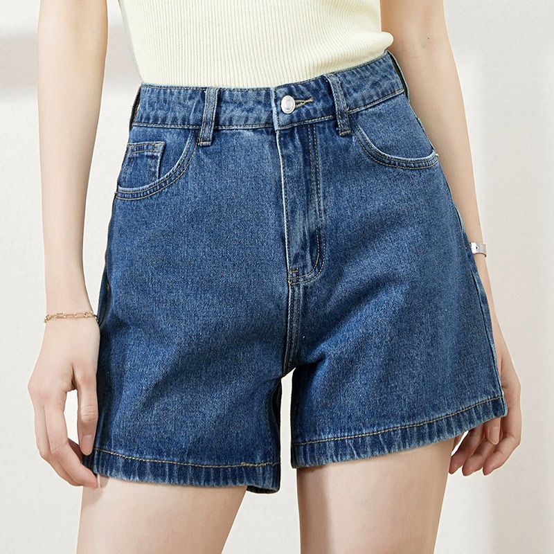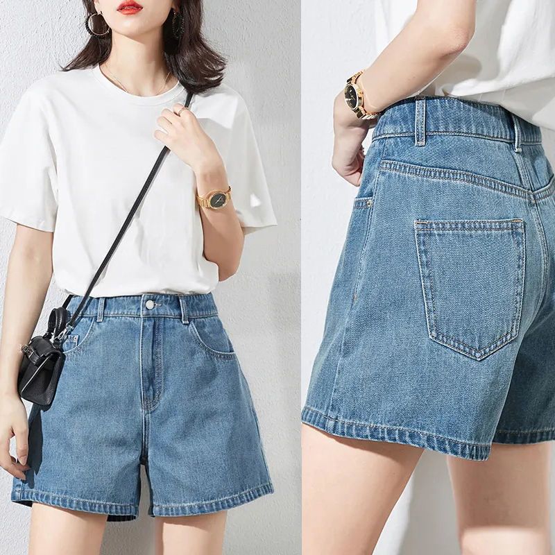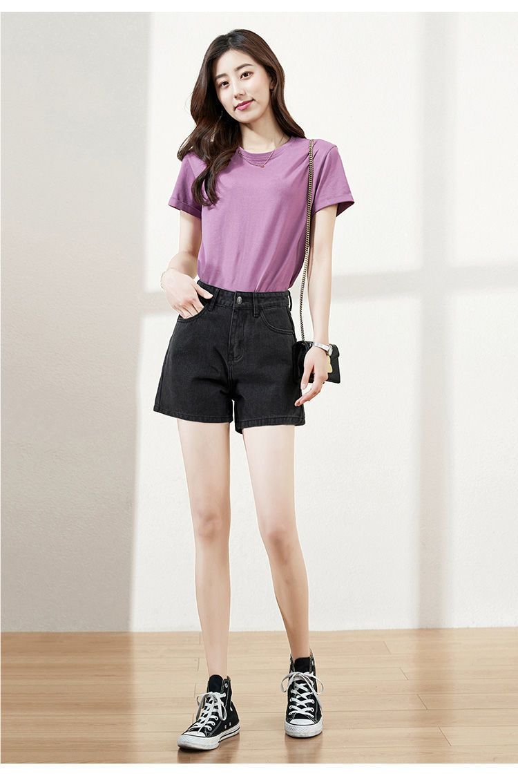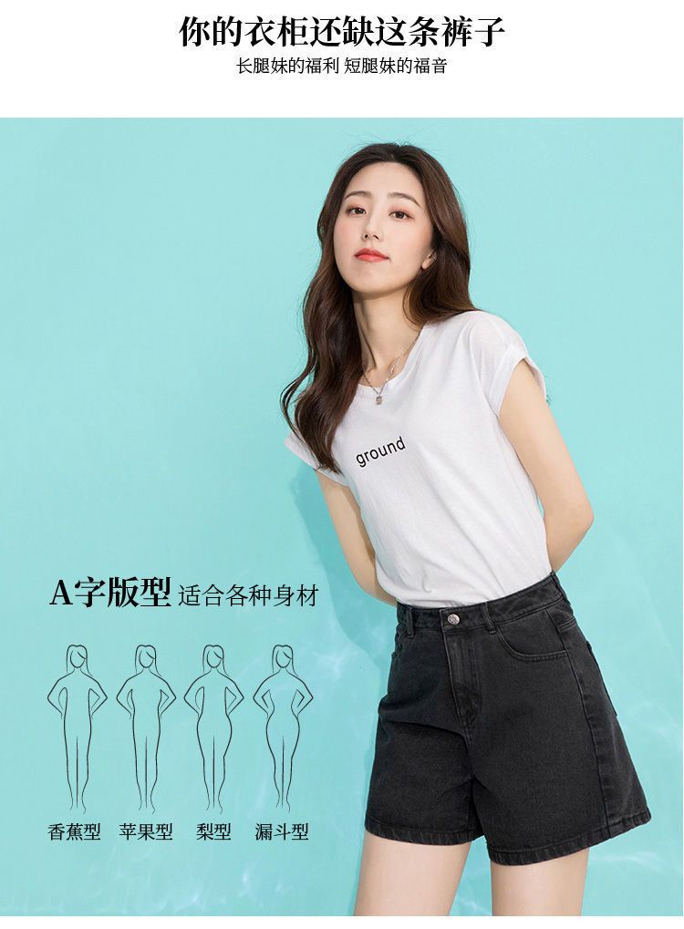 黑色牛仔短裤简约女款高腰显瘦薄款夏季阔腿宽松a字版三分热裤