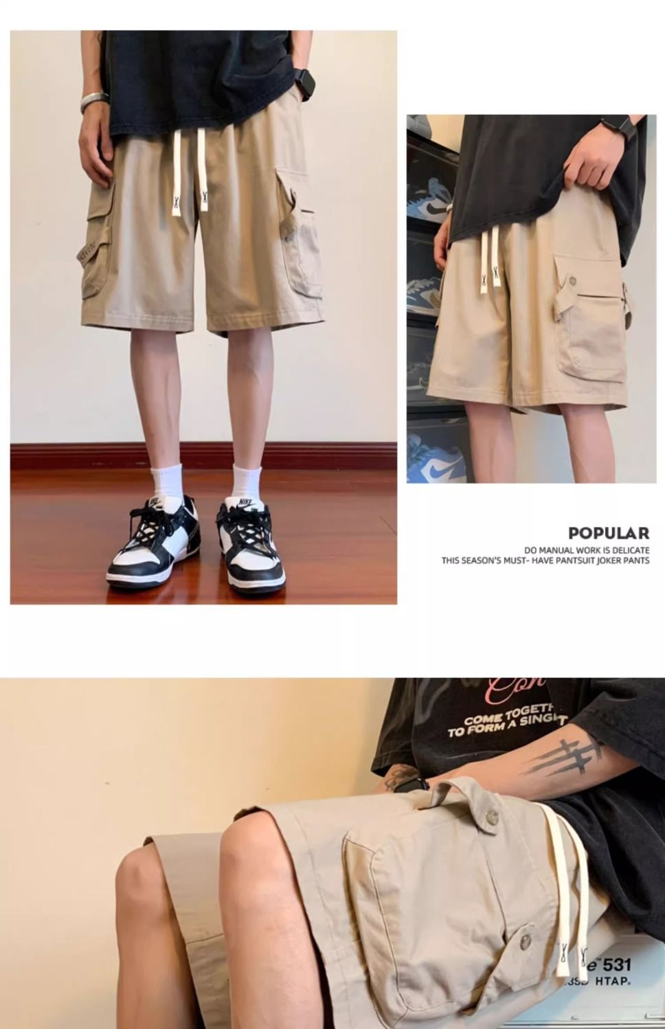奢步士美式工装短裤男士夏季五分裤潮牌宽松裤子日系休闲五分中裤