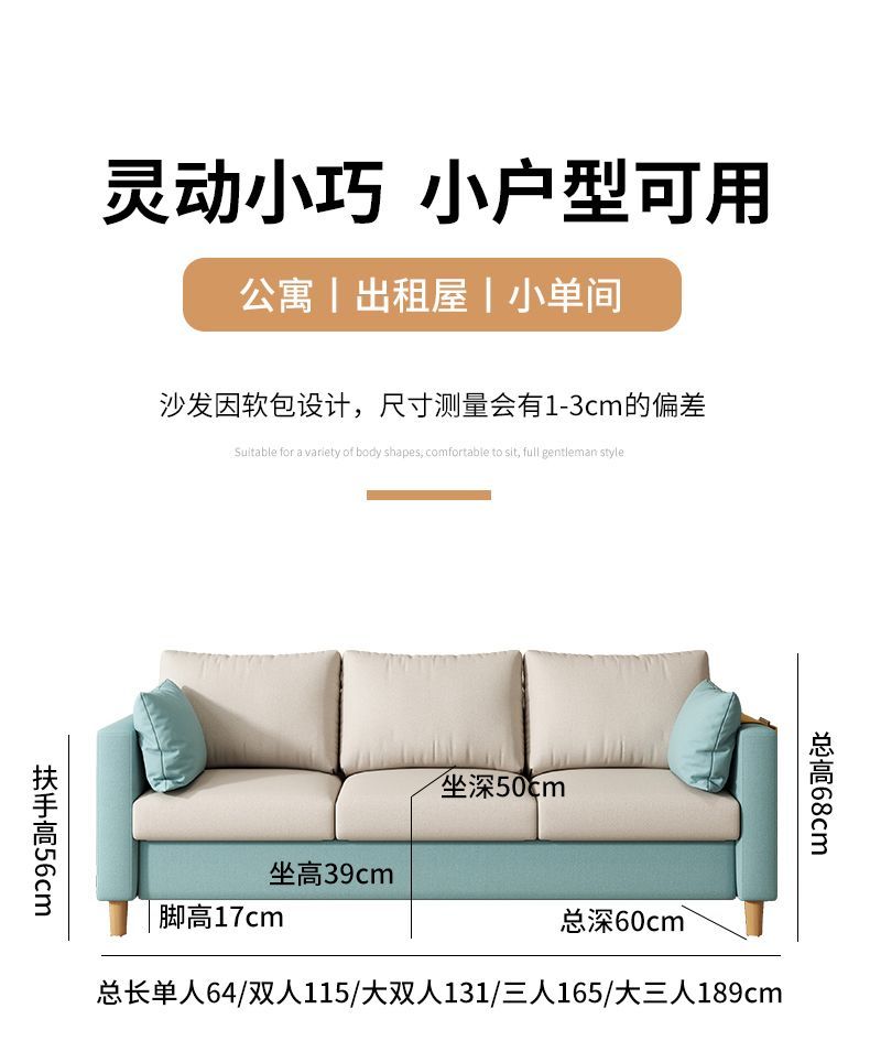 储物功能沙发小户型出租屋卧室公寓客厅服装店休息区会客双人沙发