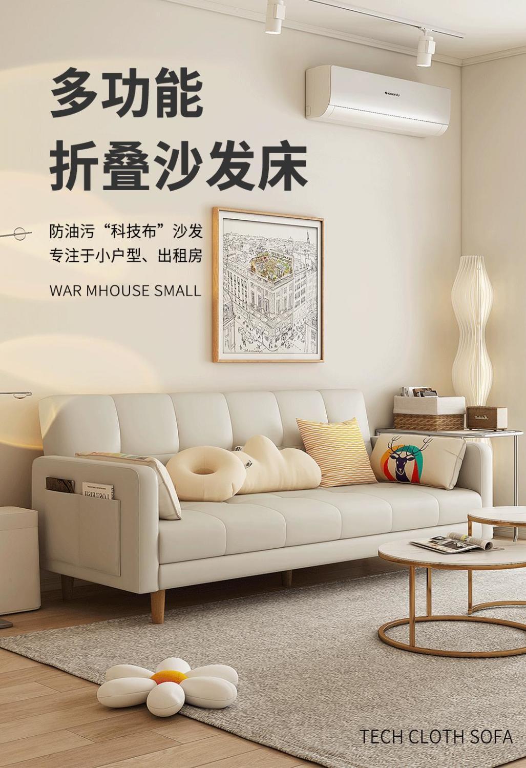 可折叠科技布沙发床一体两用客厅卧室简易出租屋用小户型现代简约
