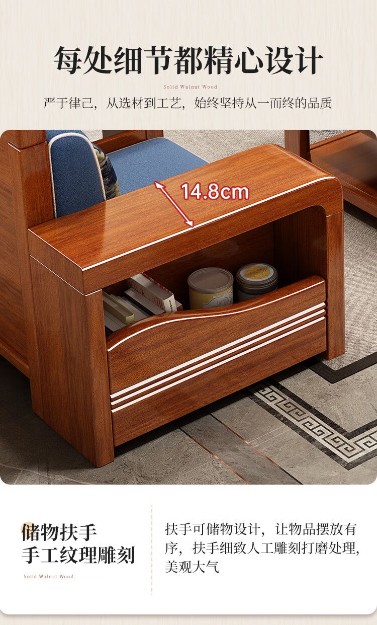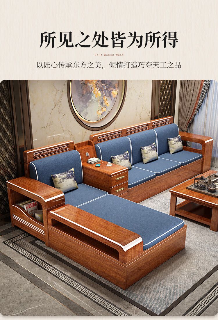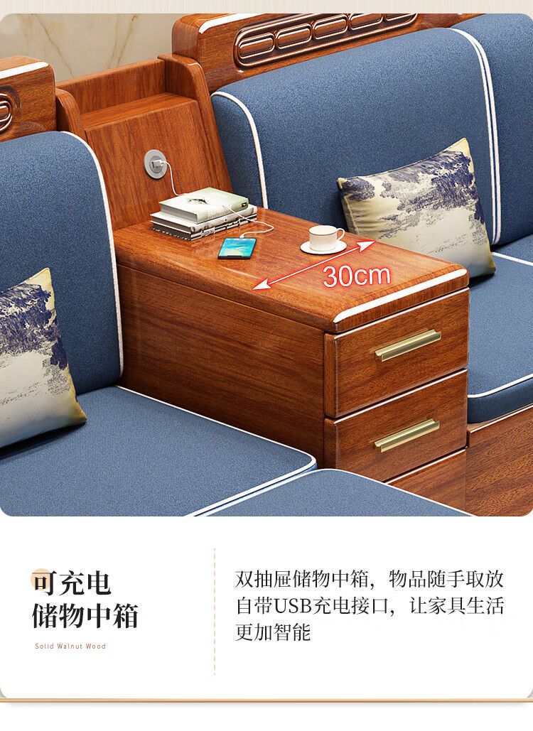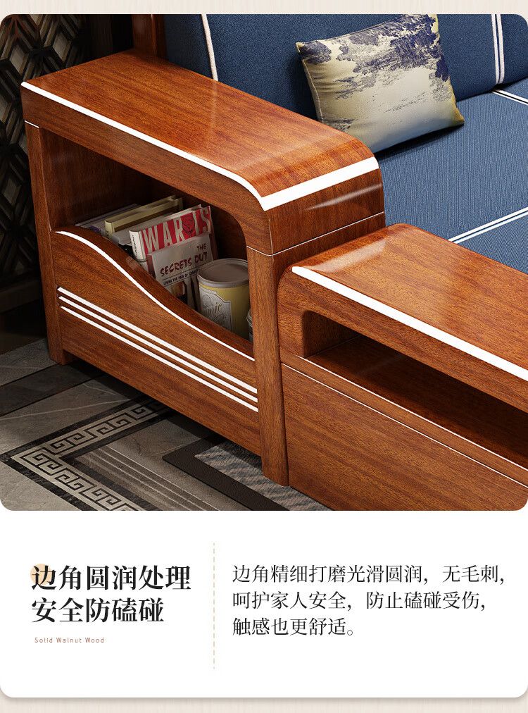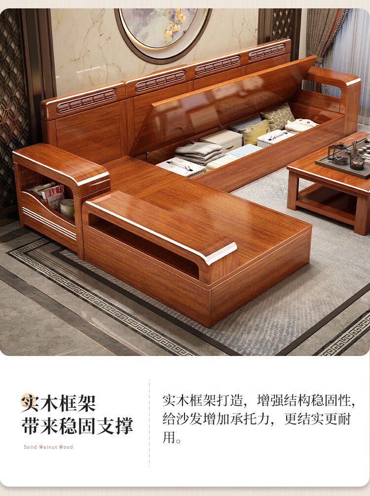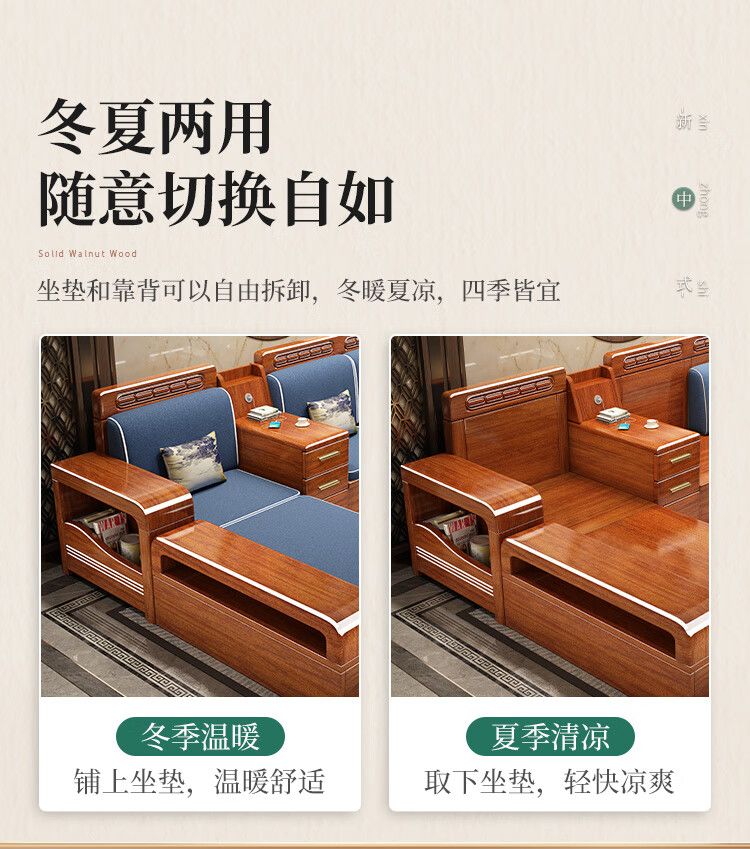 木缇森胡桃木全实木客厅沙发爆款组合现代小户型冬夏两用高箱储物