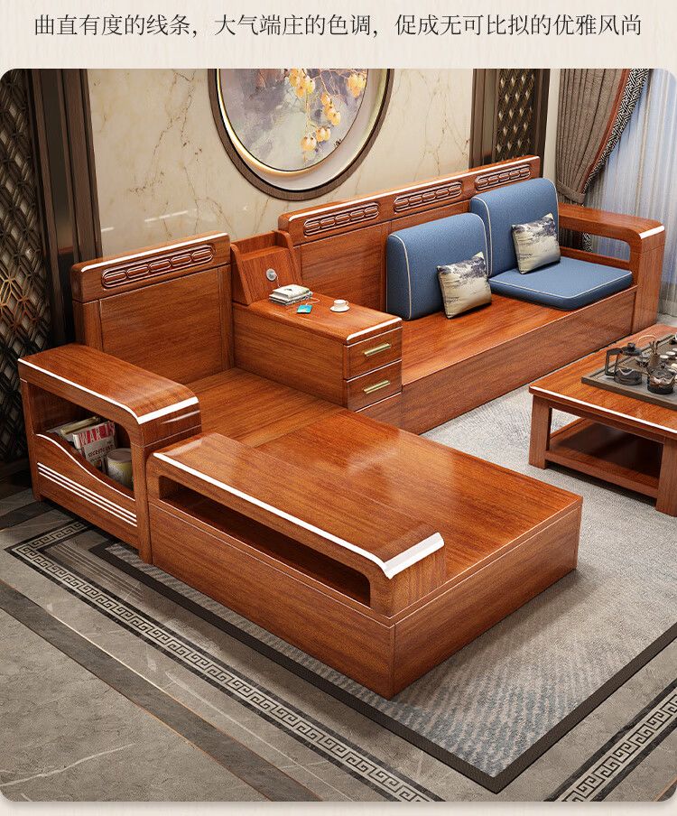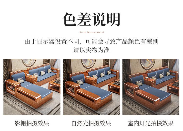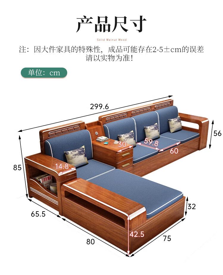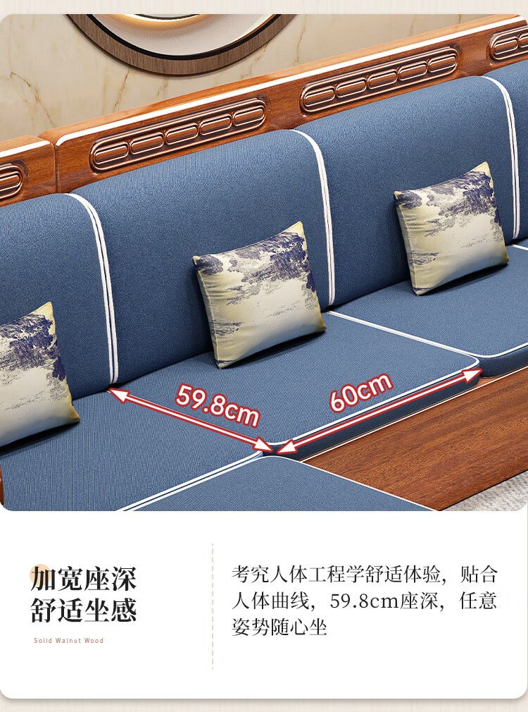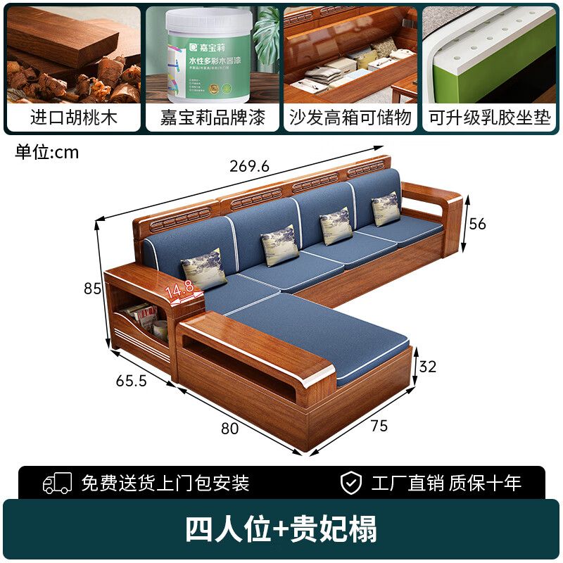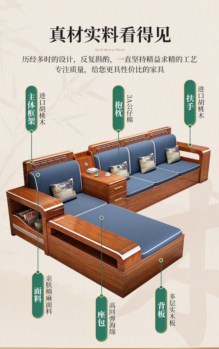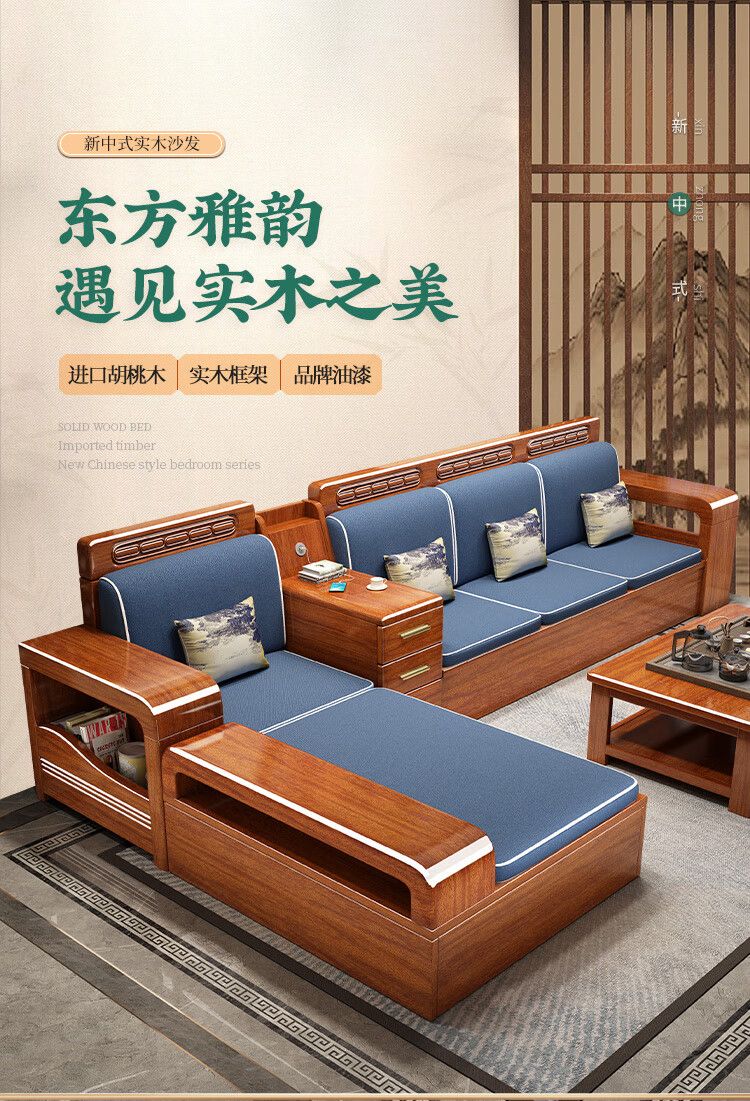木缇森胡桃木全实木客厅沙发爆款组合现代小户型冬夏两用高箱储物