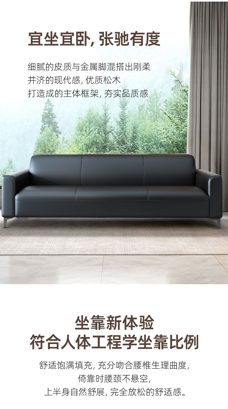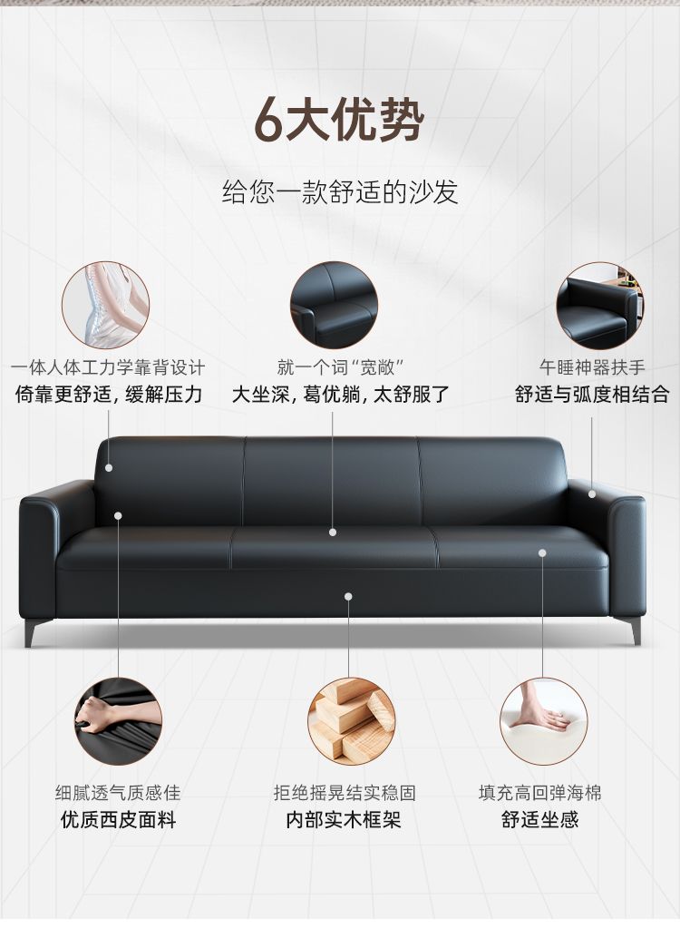 办公沙发现代简约会客接待三人位小户型办公室商务猫抓皮茶几组合