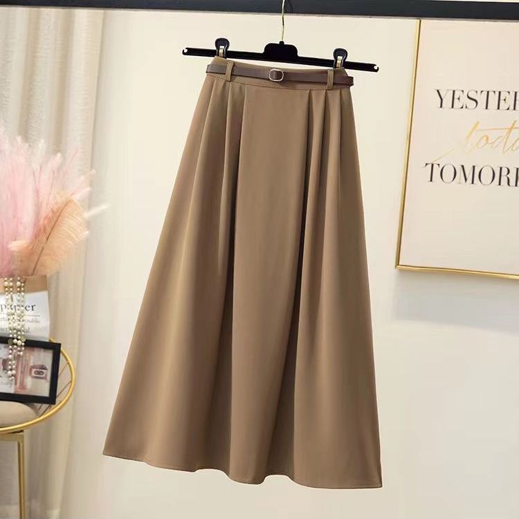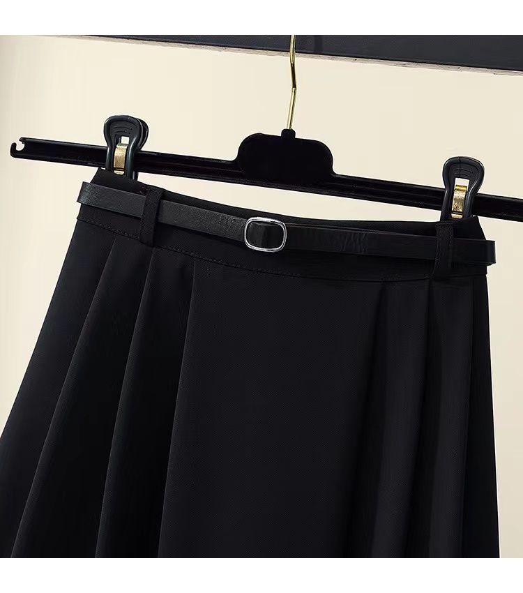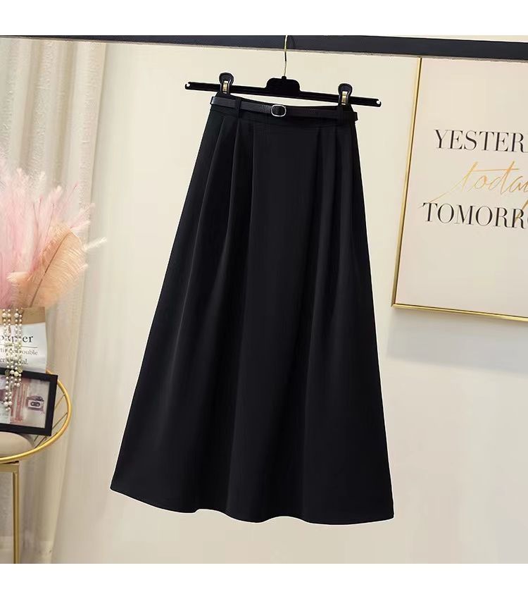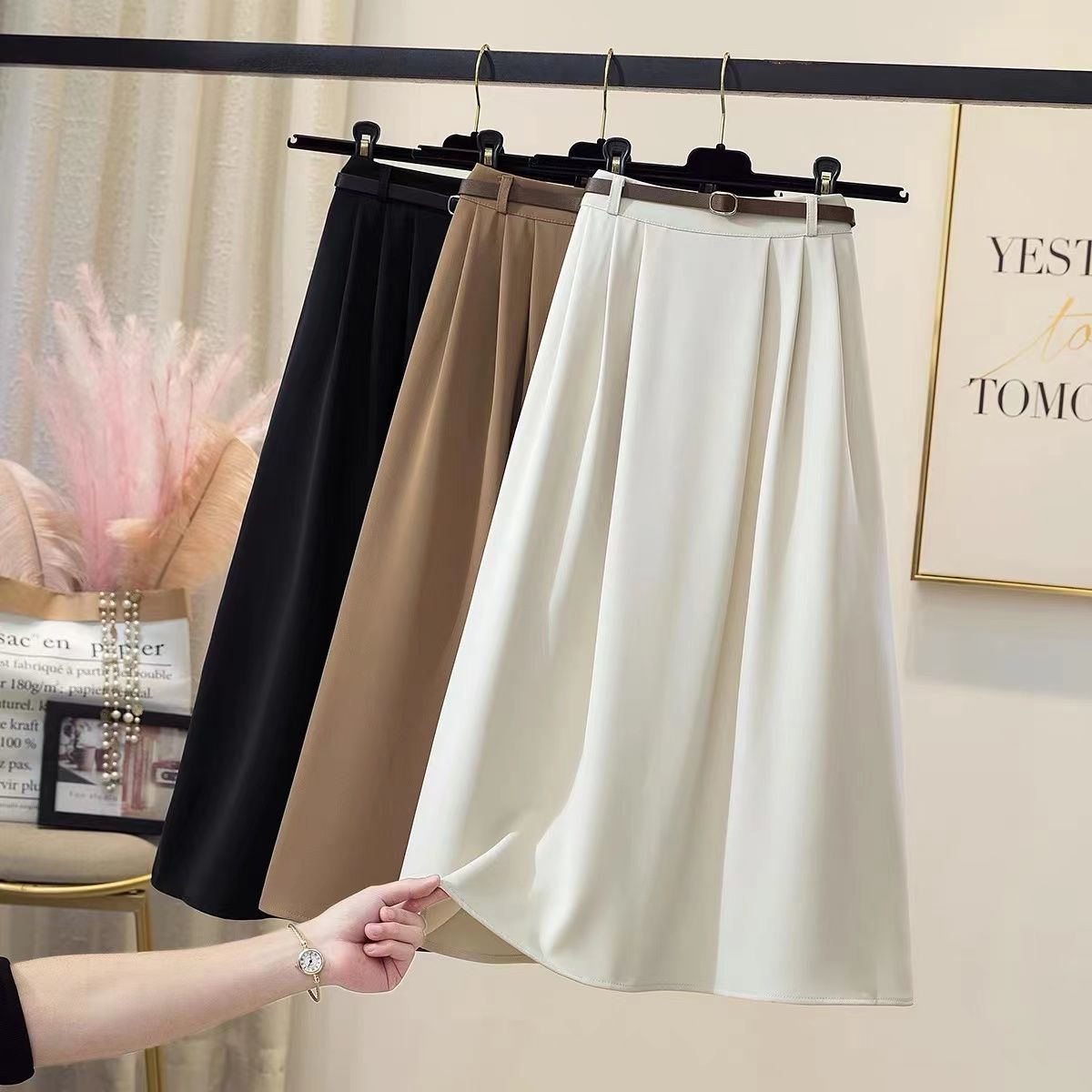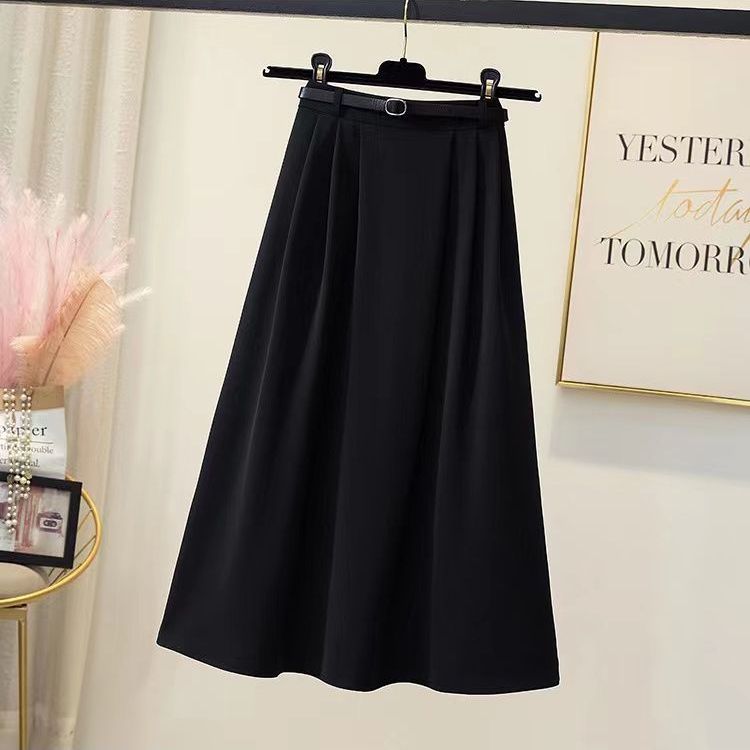 垂感高腰大裙摆过膝半身裙女2024夏季新款显瘦a字黑色中长款裙子