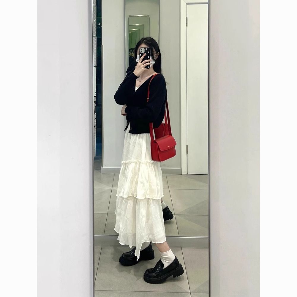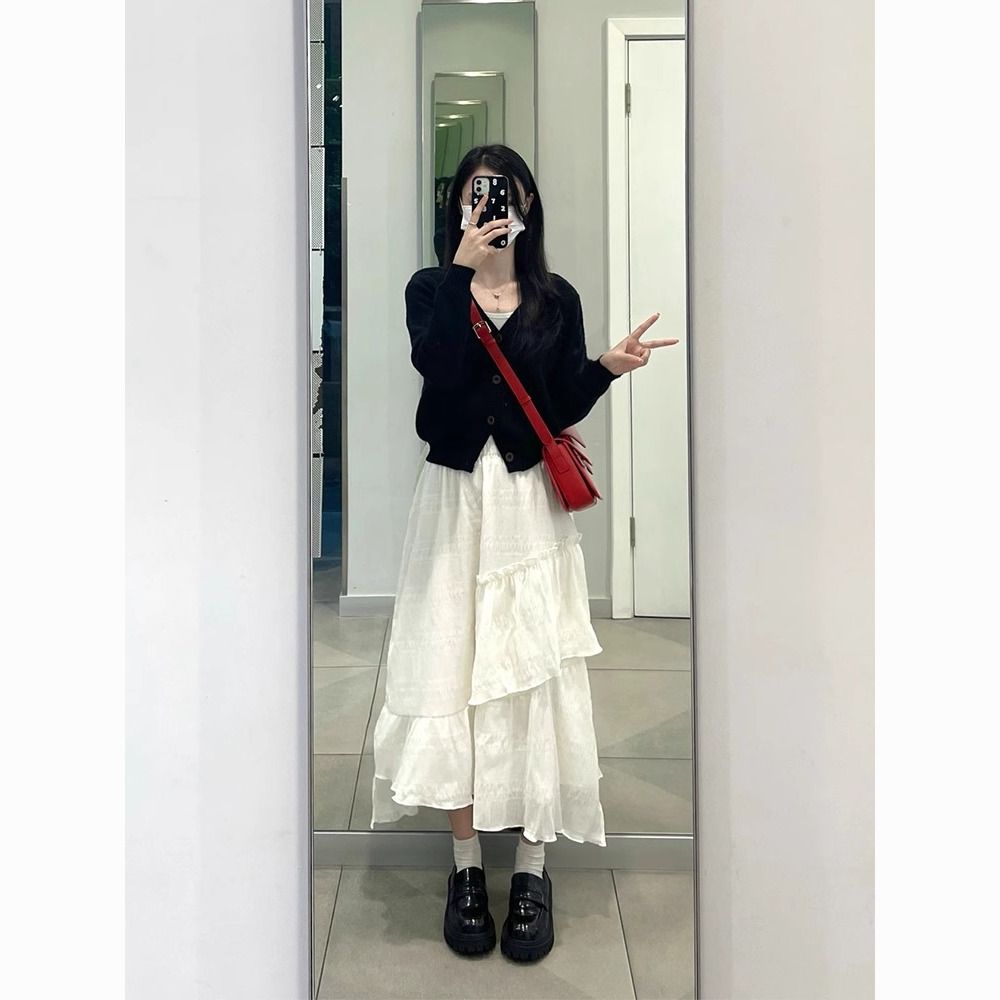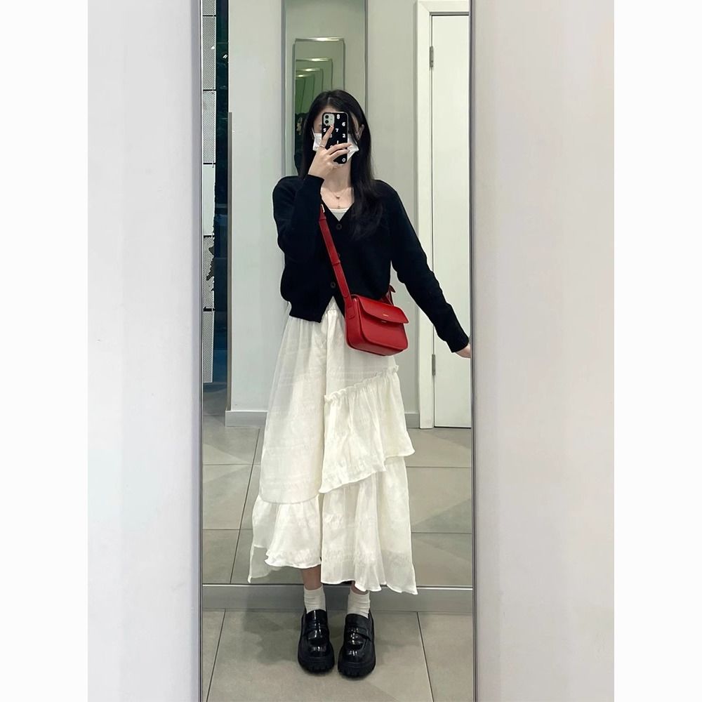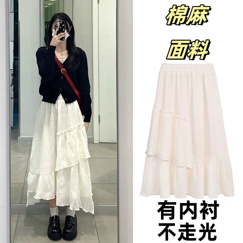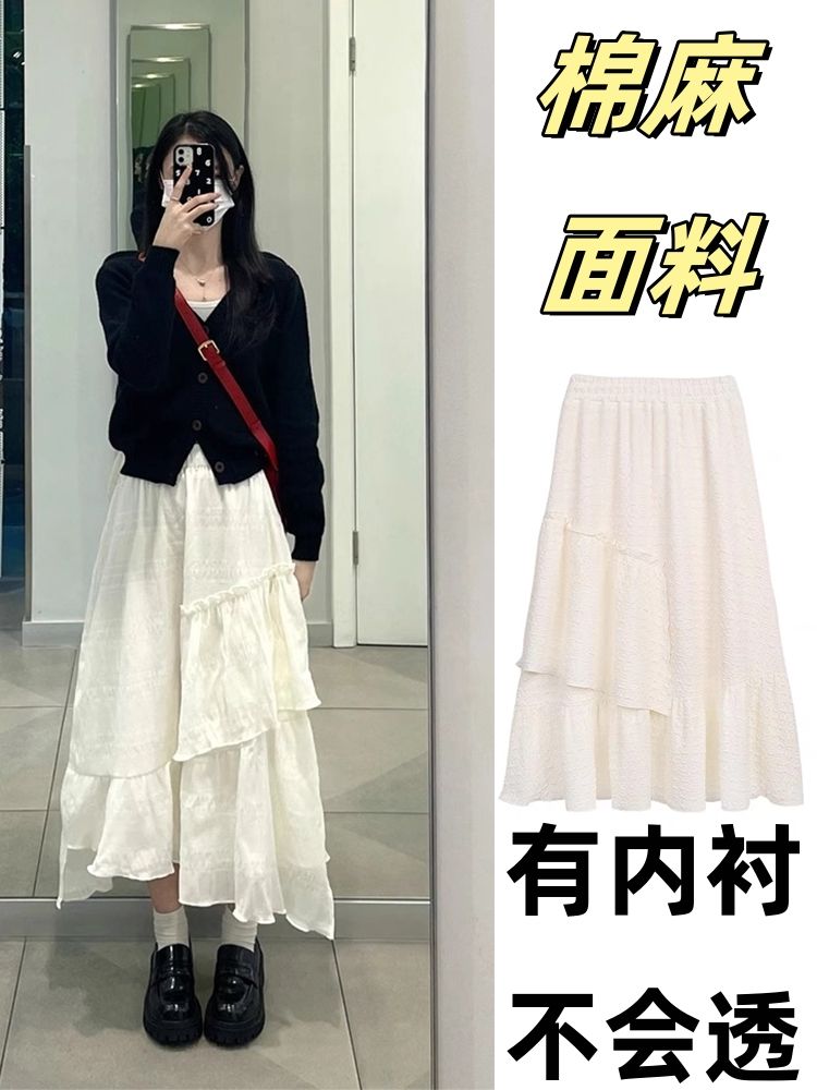 白色半身裙女设计感不规则蛋糕裙高腰气质百搭显瘦中长款a字裙子