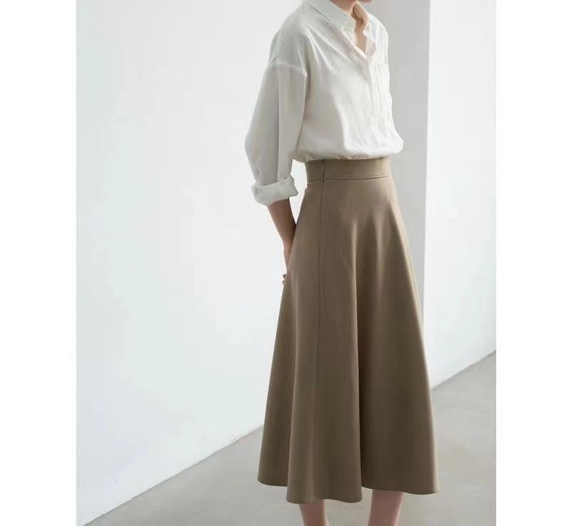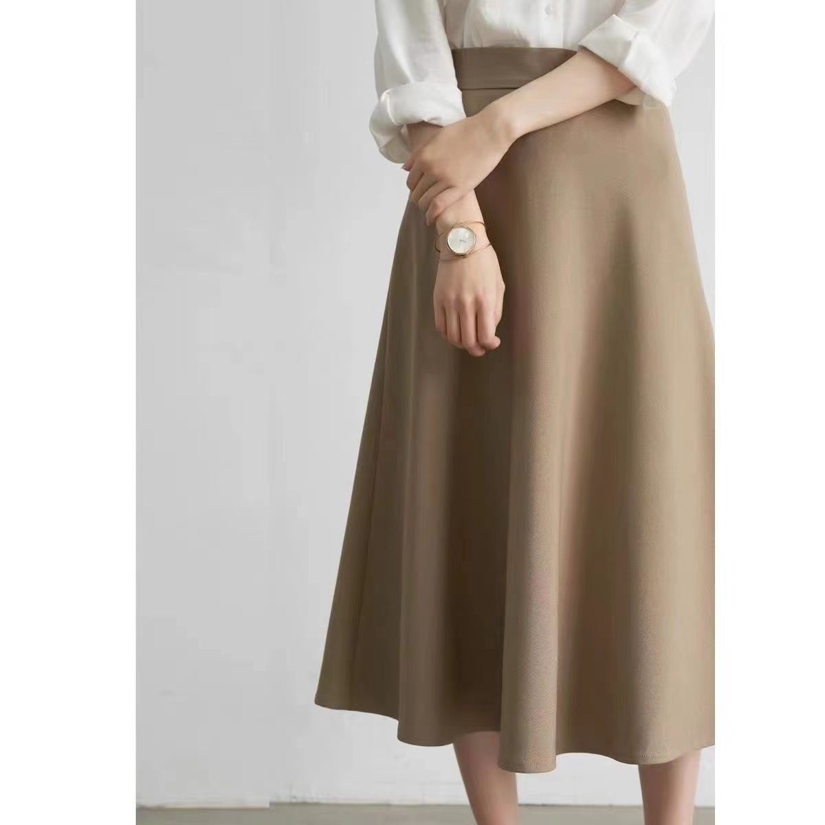 纯色简约西装半身裙女秋冬新款高腰显瘦气质大摆裙中长款a字裙潮