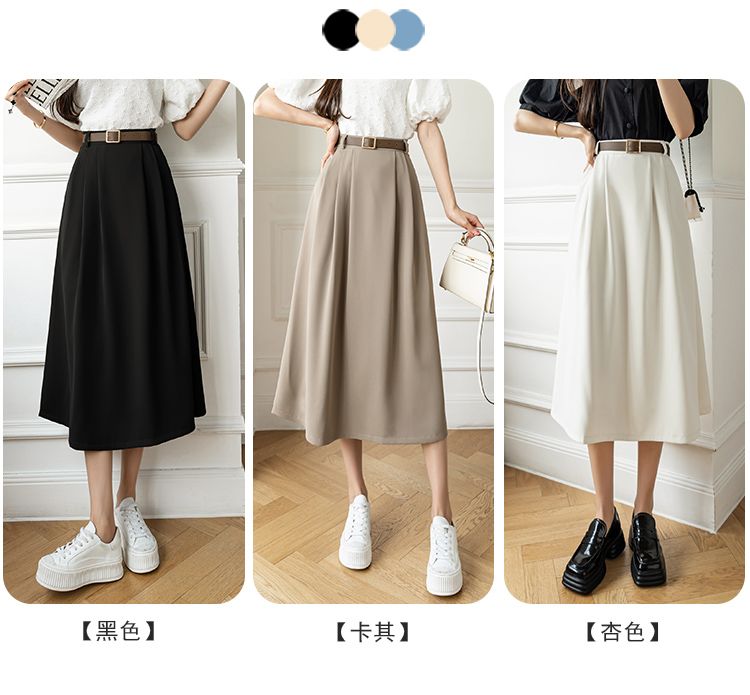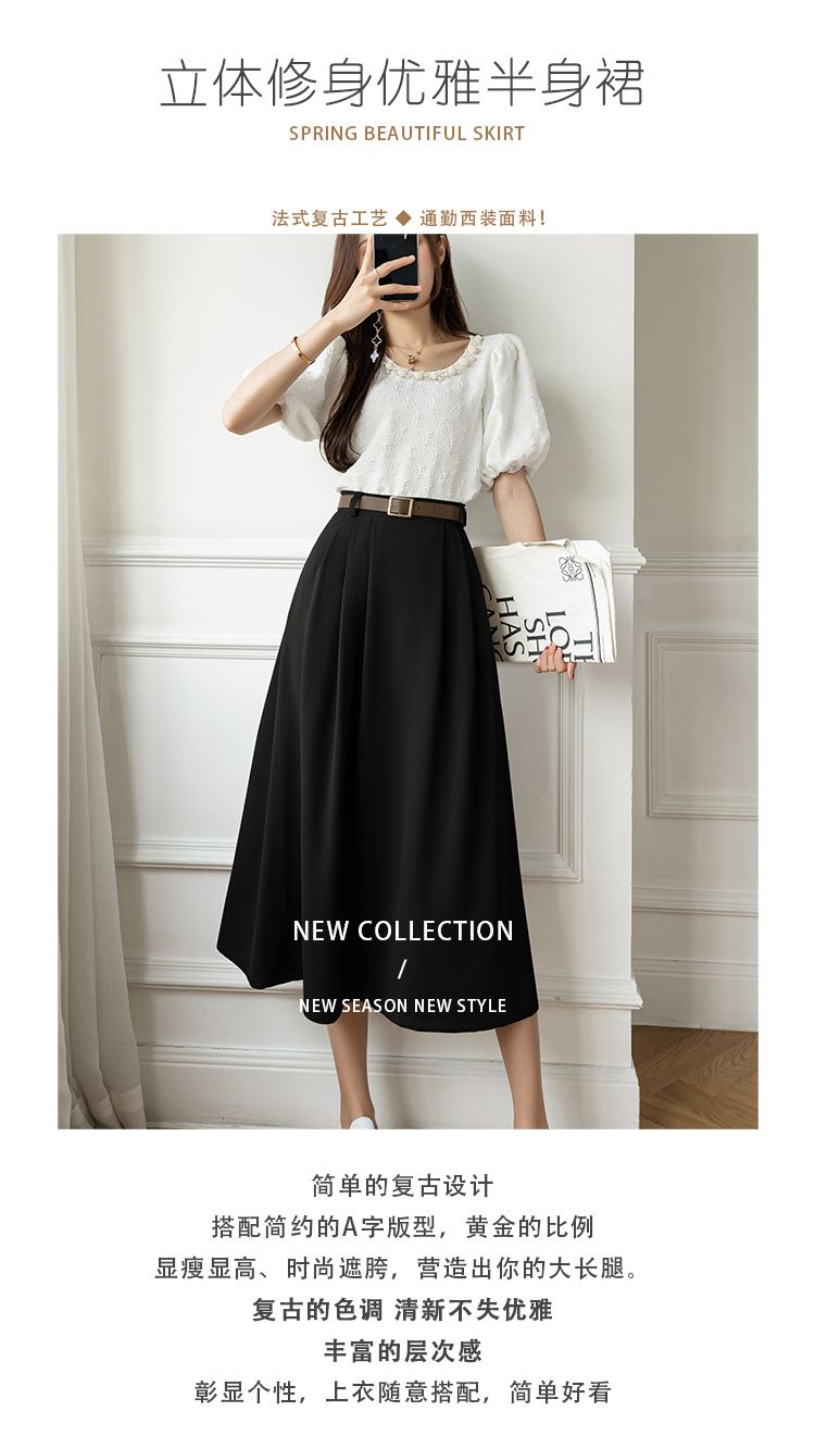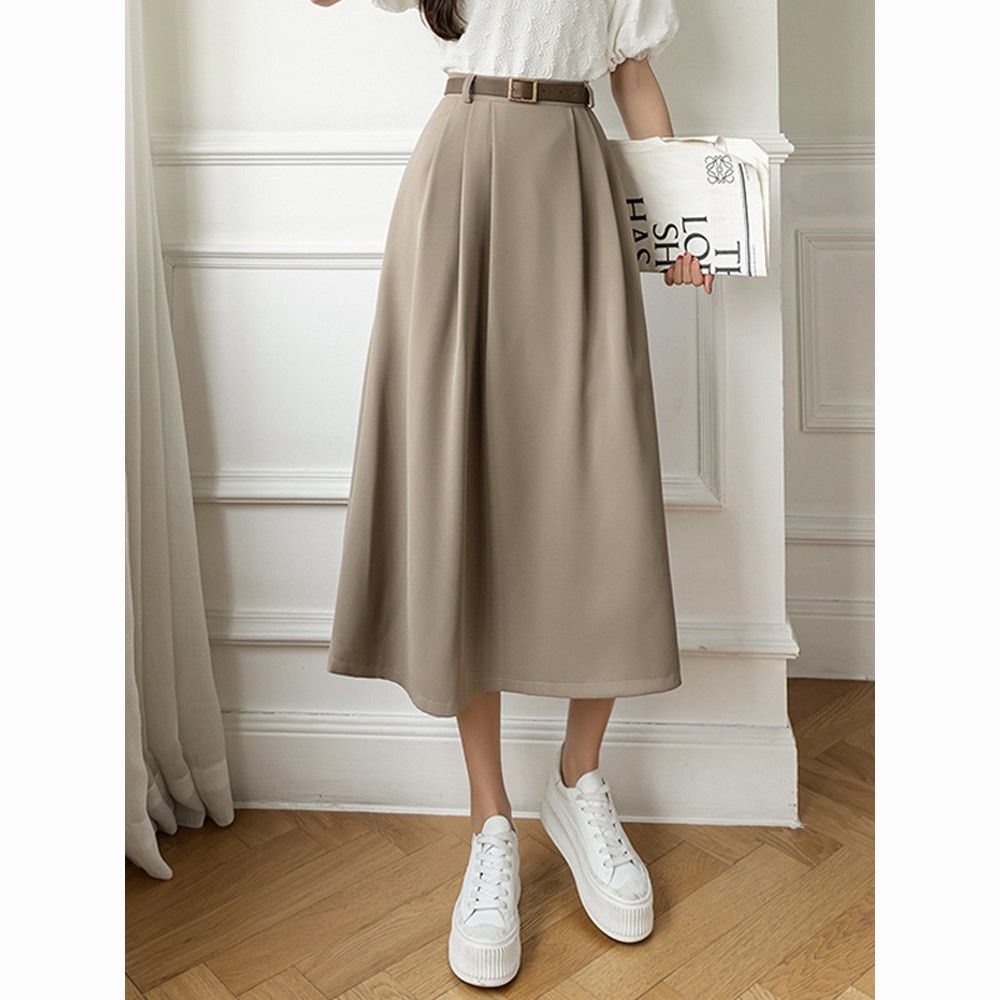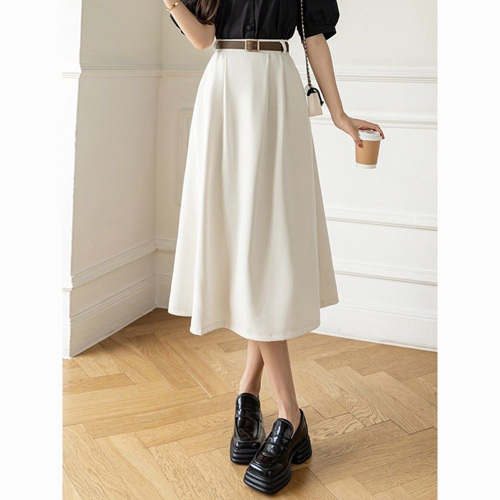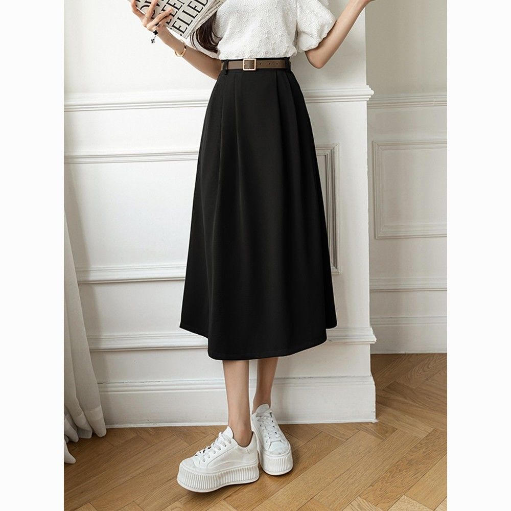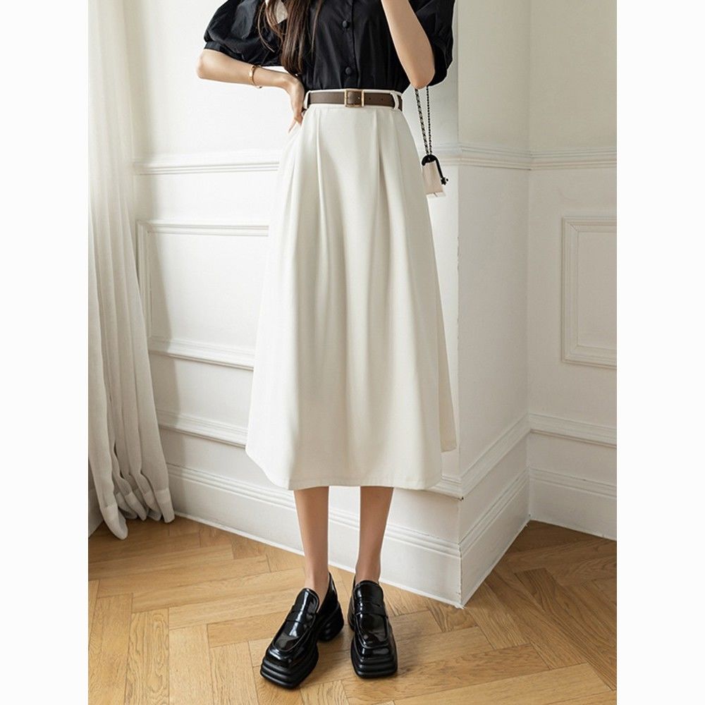 西装半身裙女夏季2023新款显瘦百褶高腰伞裙中长款垂坠感a字裙子