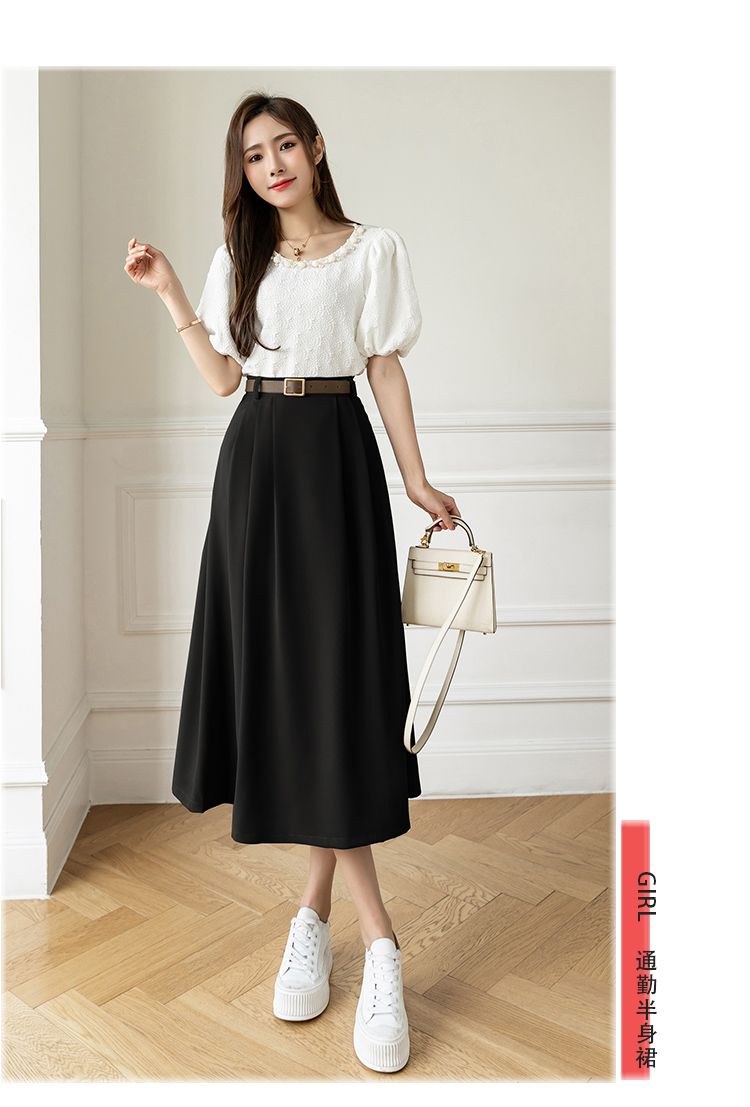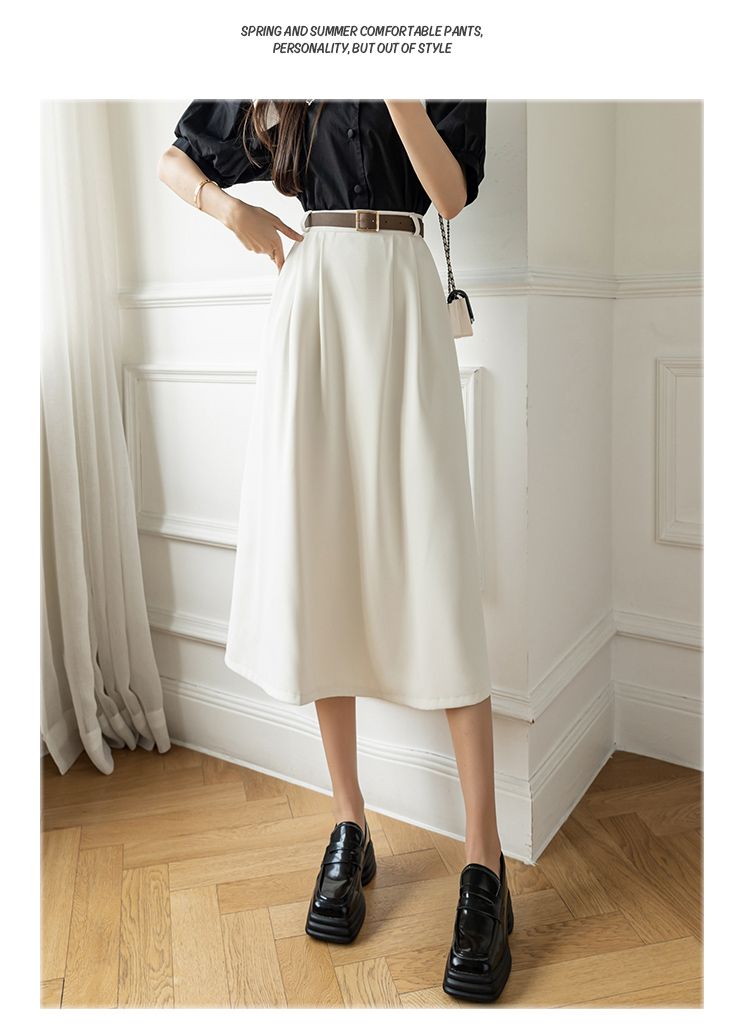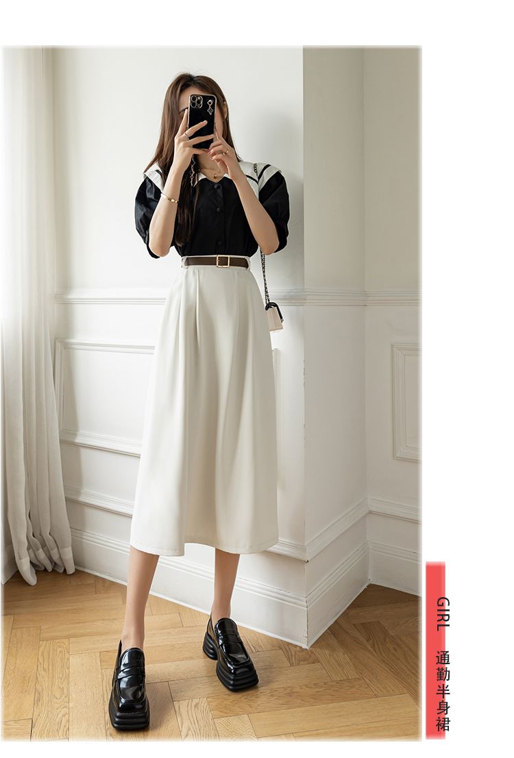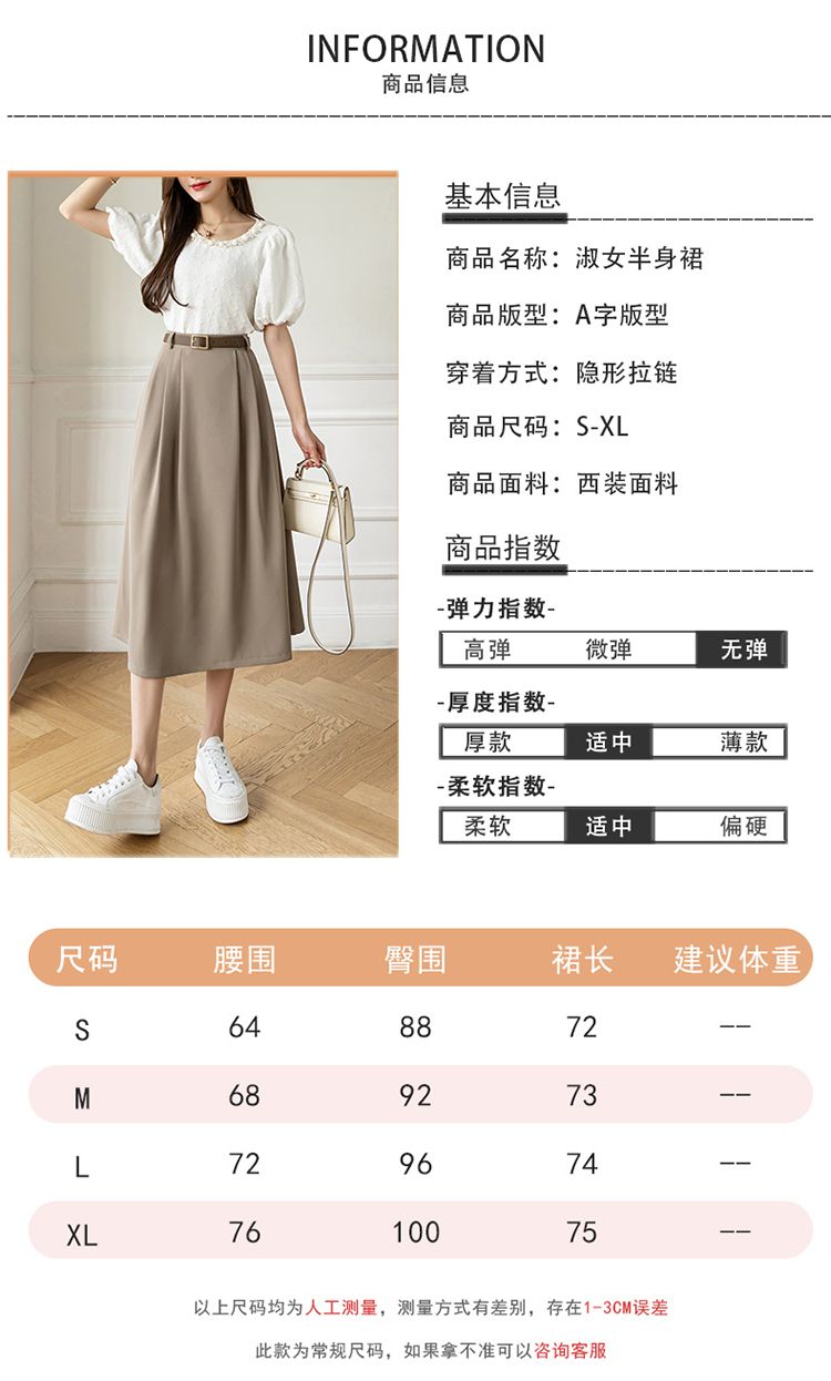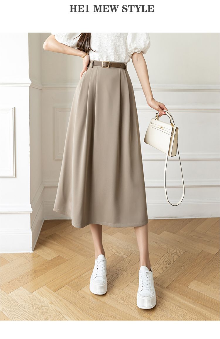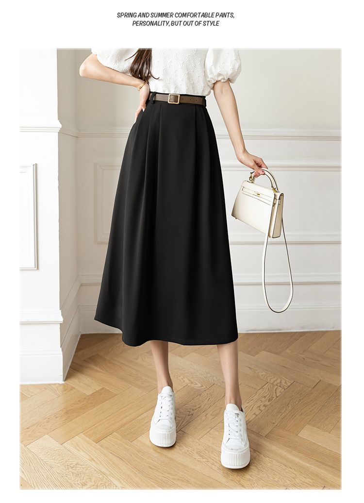 西装半身裙女夏季2023新款显瘦百褶高腰伞裙中长款垂坠感a字裙子