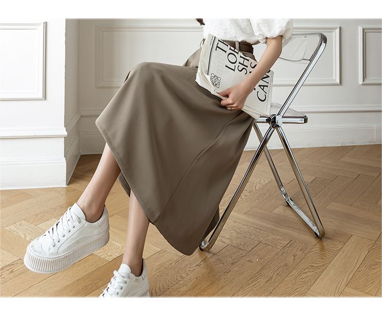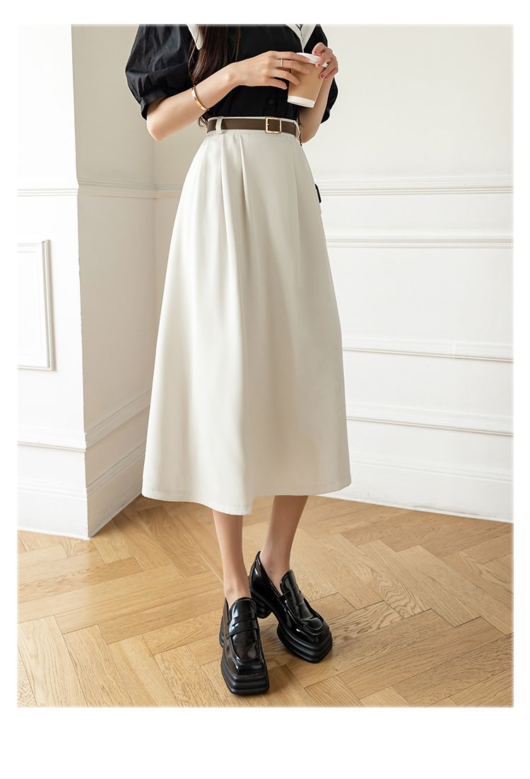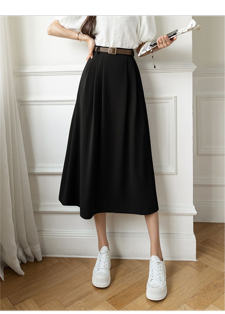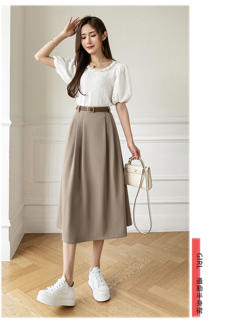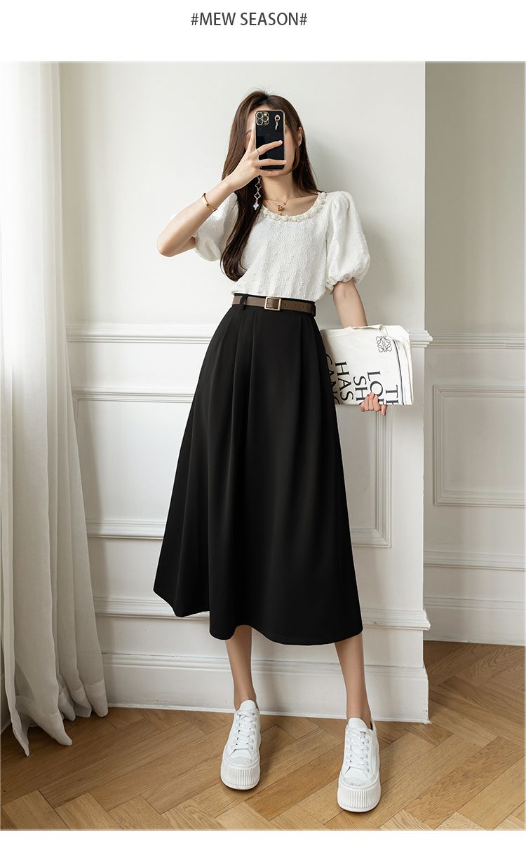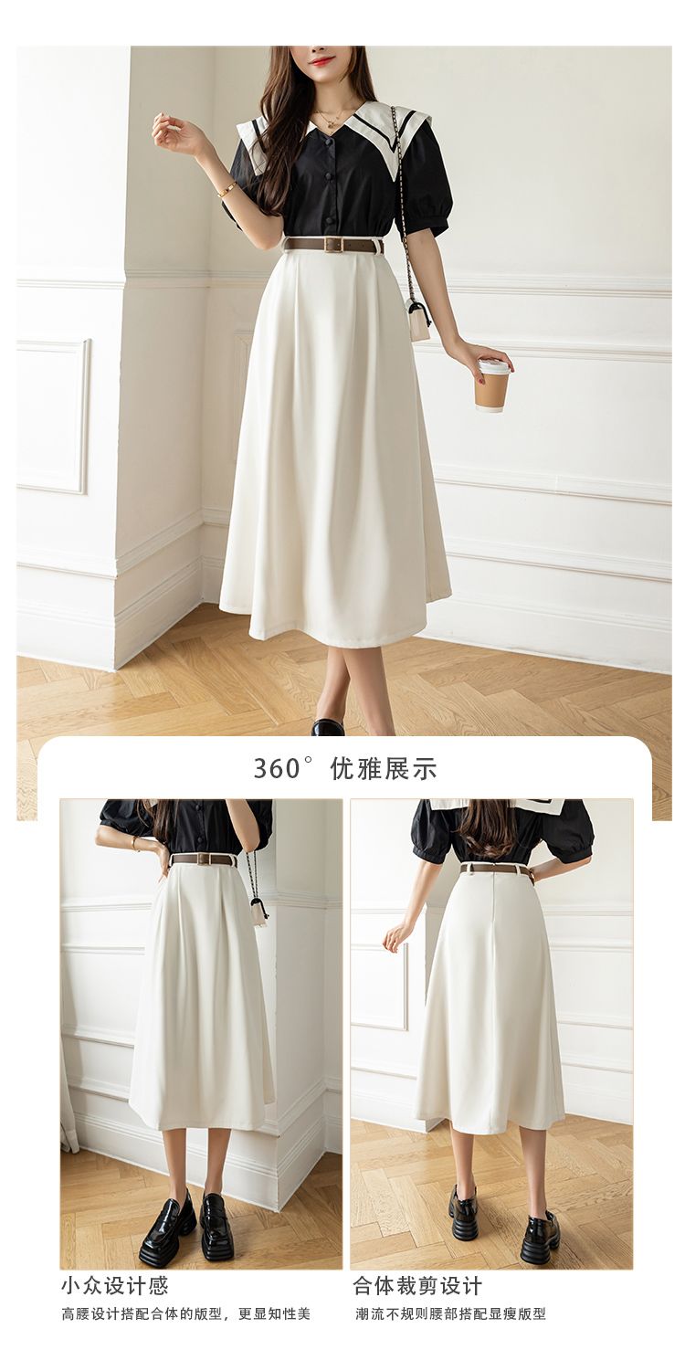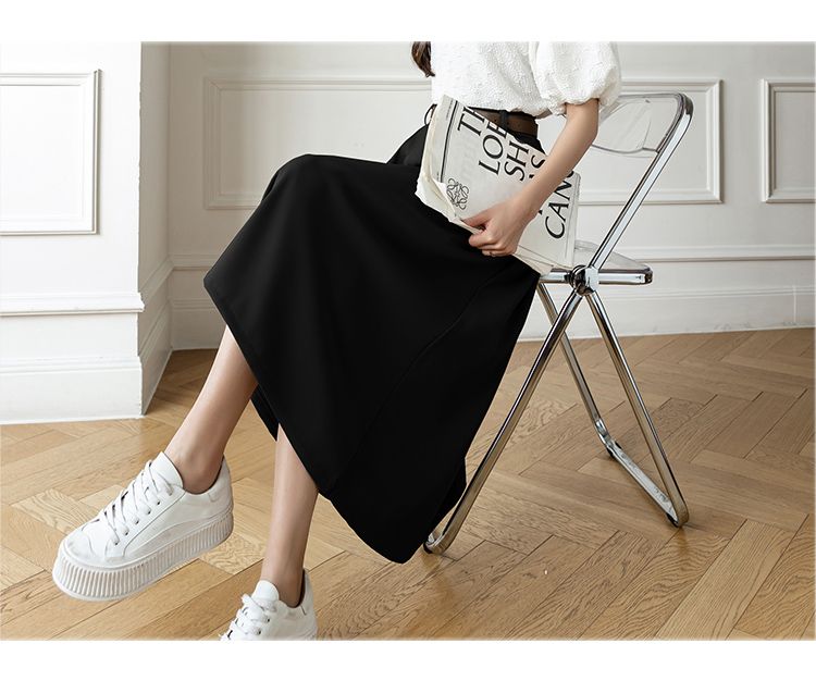 西装半身裙女夏季2023新款显瘦百褶高腰伞裙中长款垂坠感a字裙子