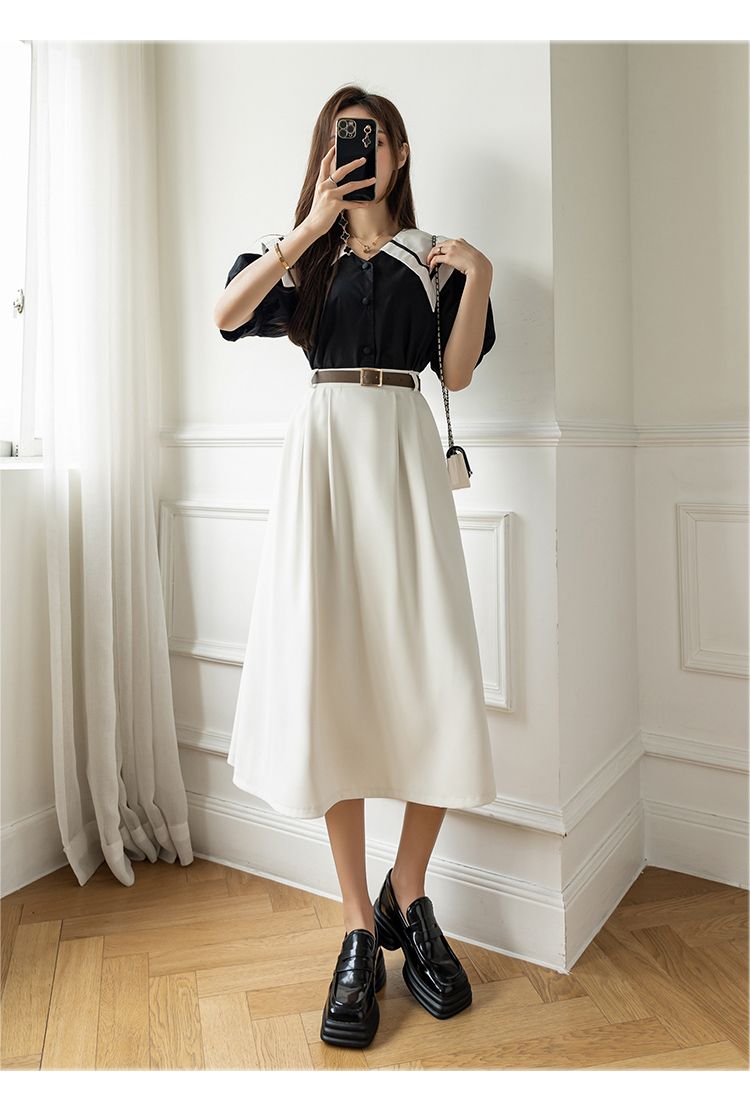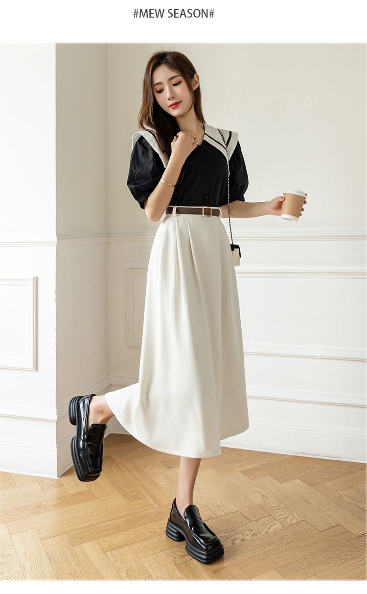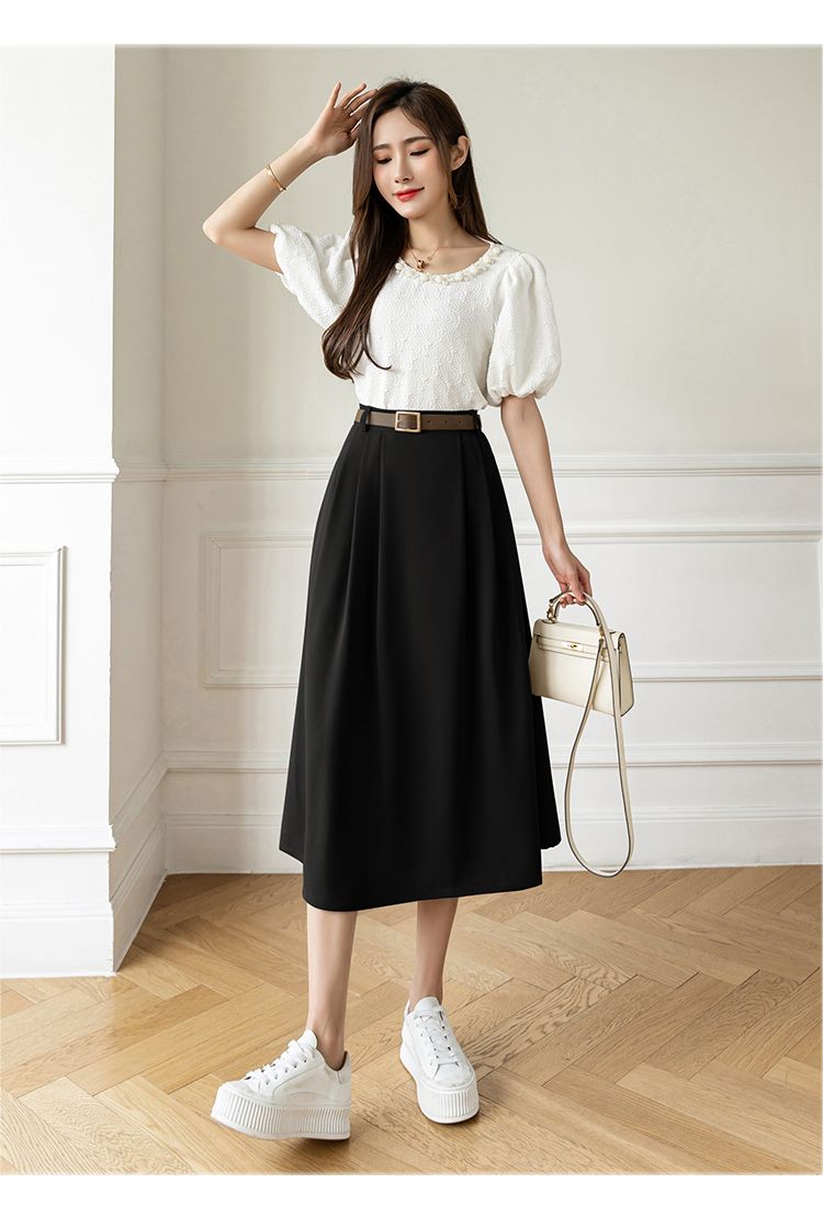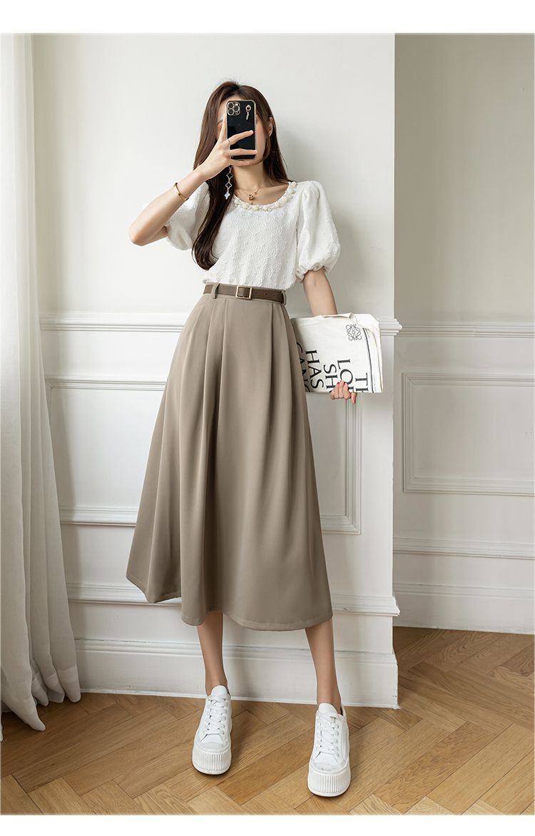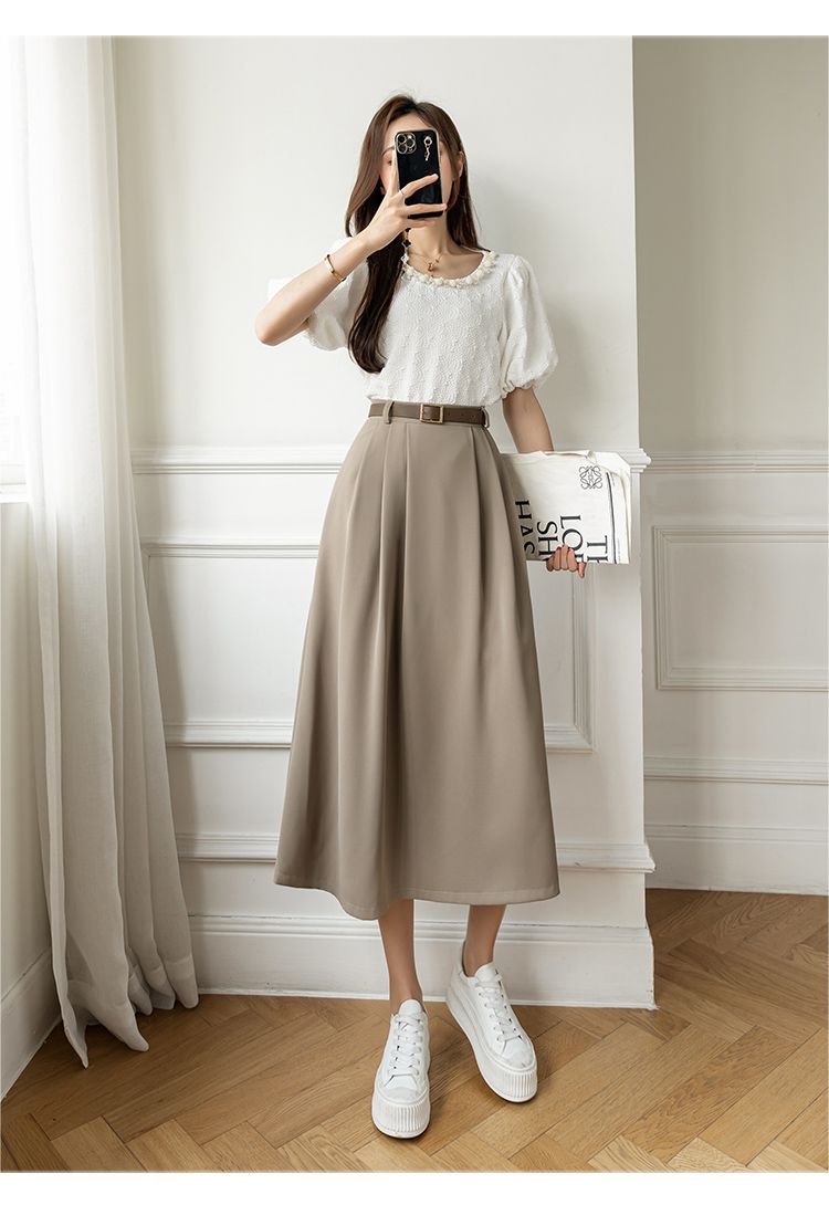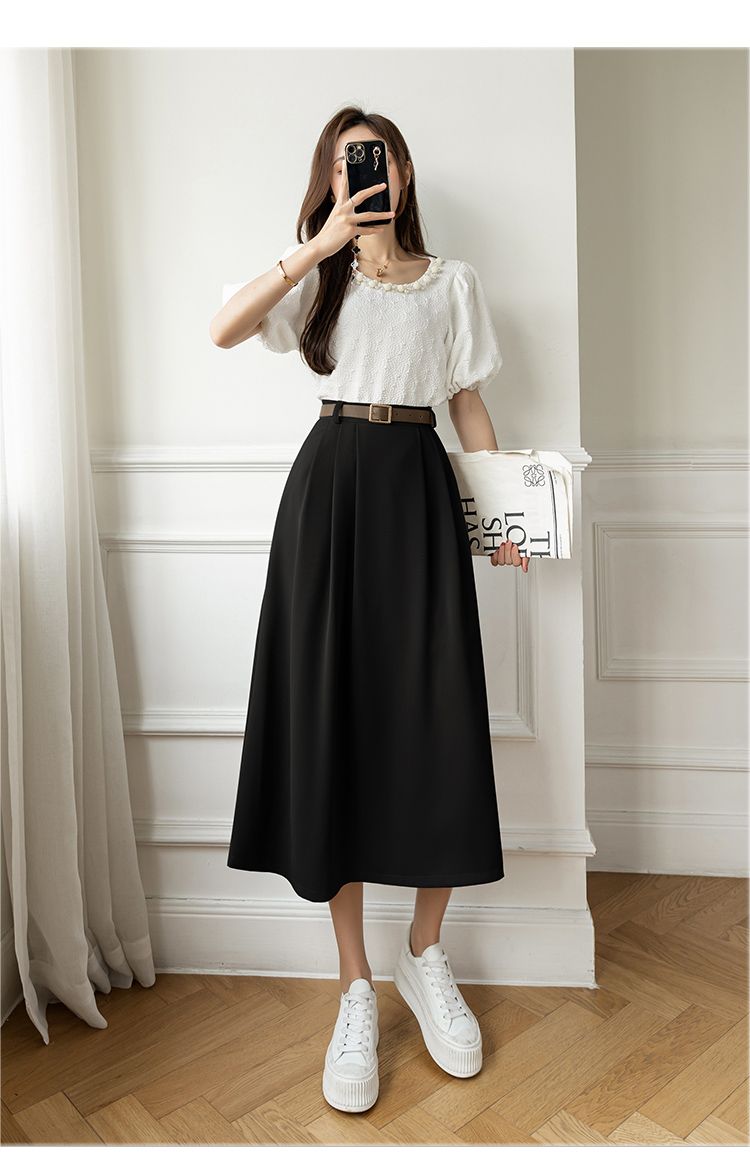 西装半身裙女夏季2023新款显瘦百褶高腰伞裙中长款垂坠感a字裙子