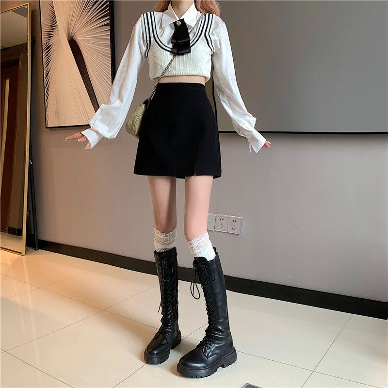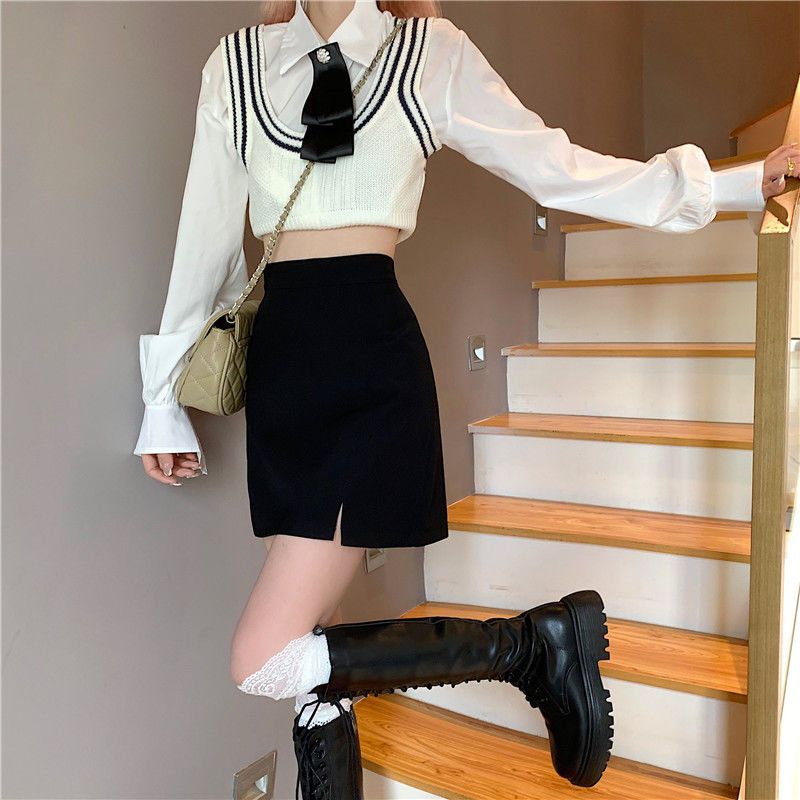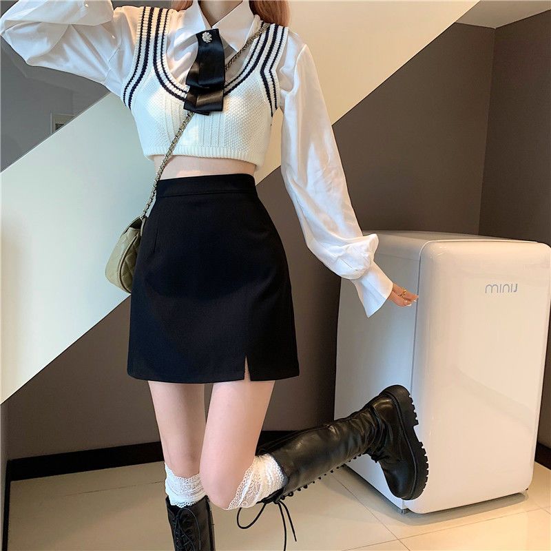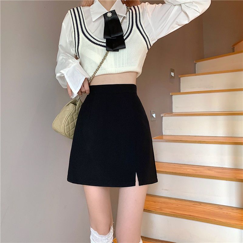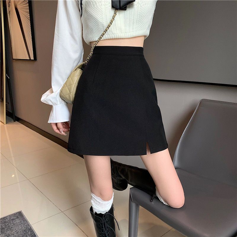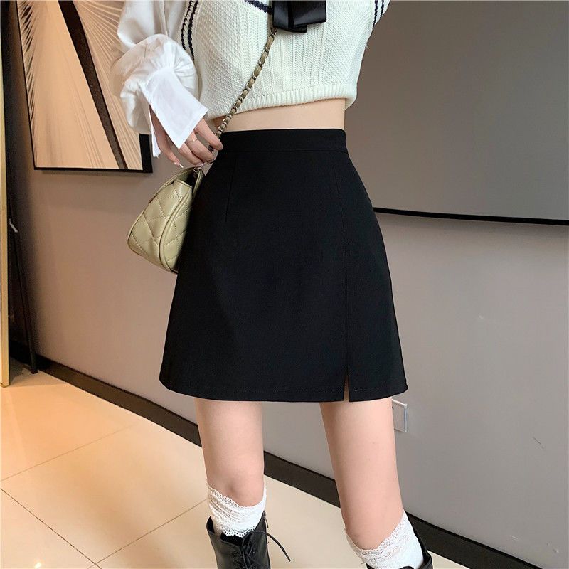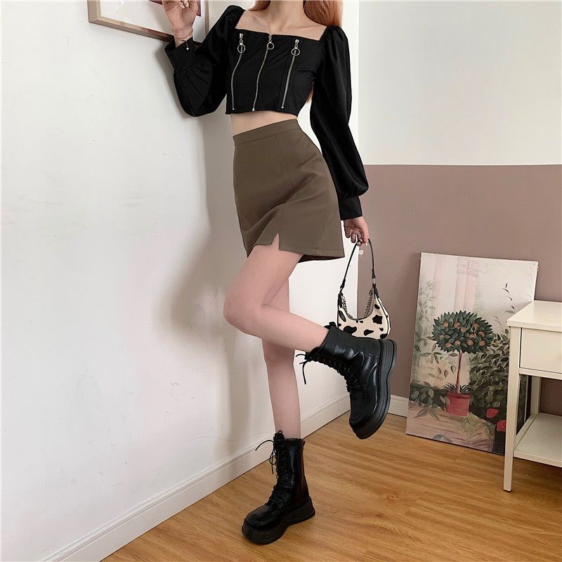 大码胖mm咖色开叉西装半身裙女夏季高腰包臀a字裙一步裙遮胯短裙