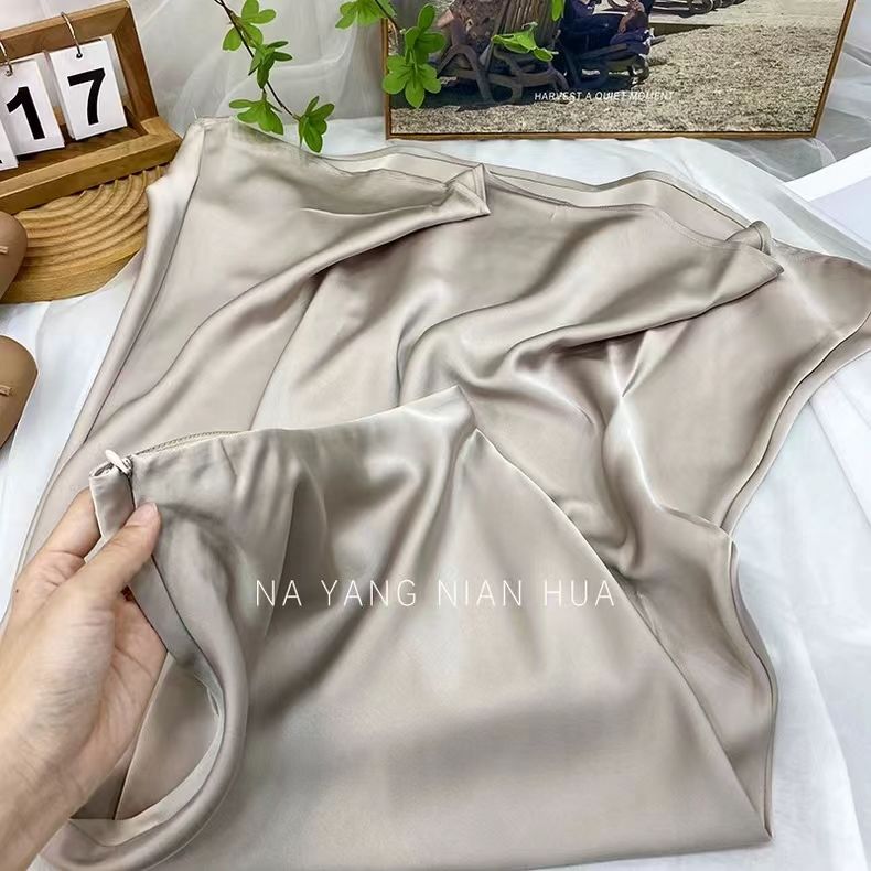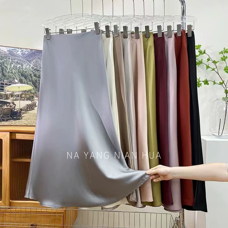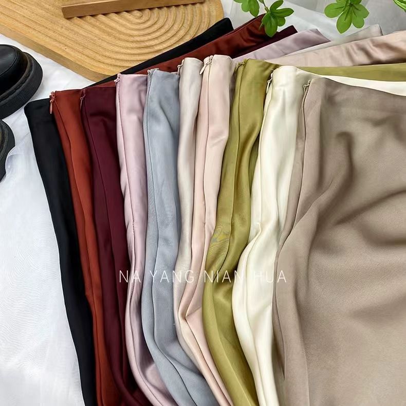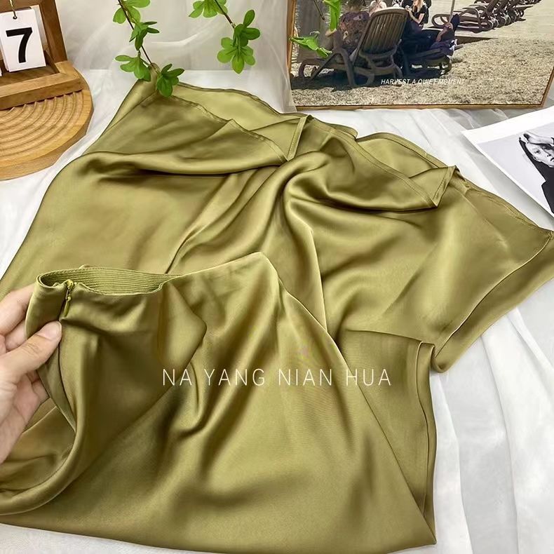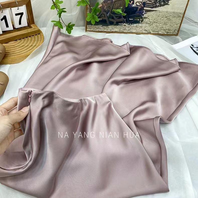 高腰显瘦中长款半身裙女醋酸缎面包臀鱼尾长裙2024春夏季垂感裙子
