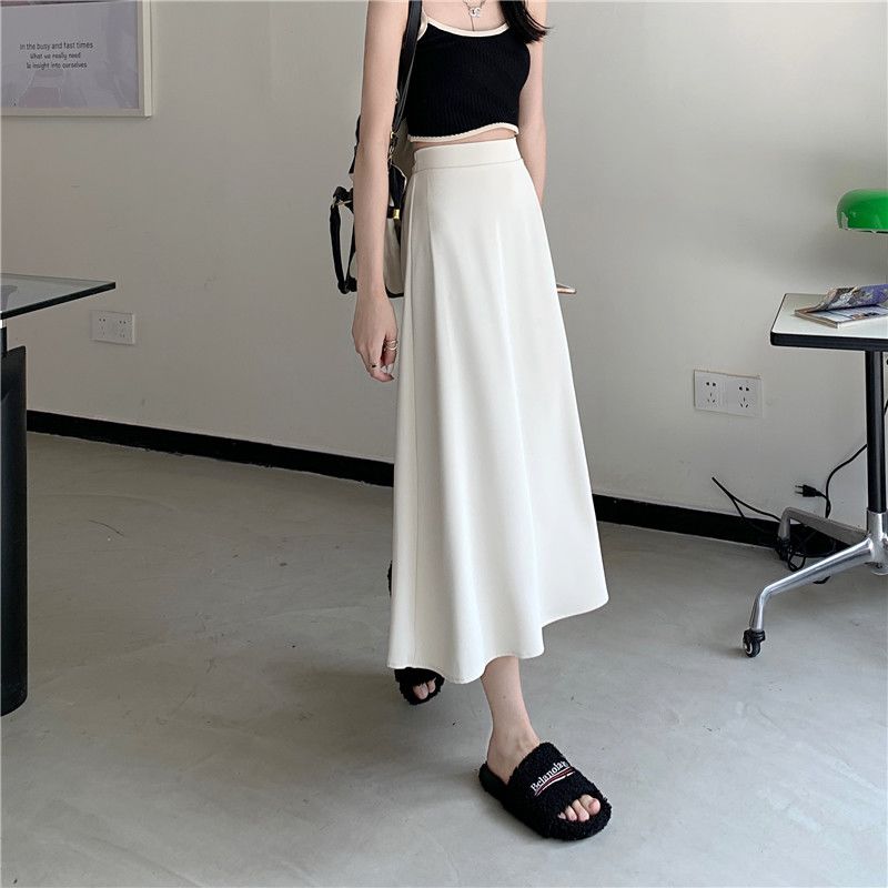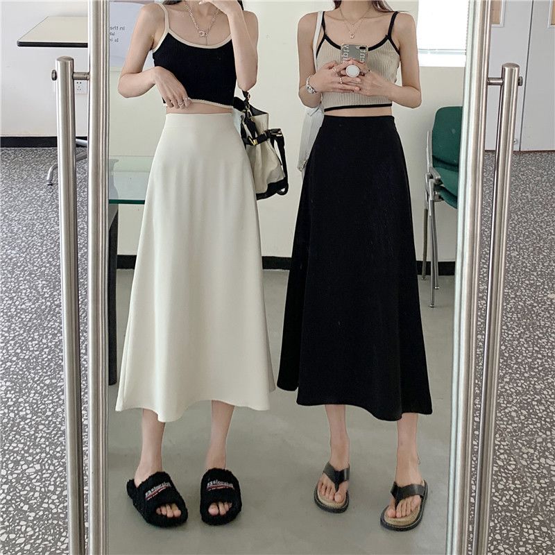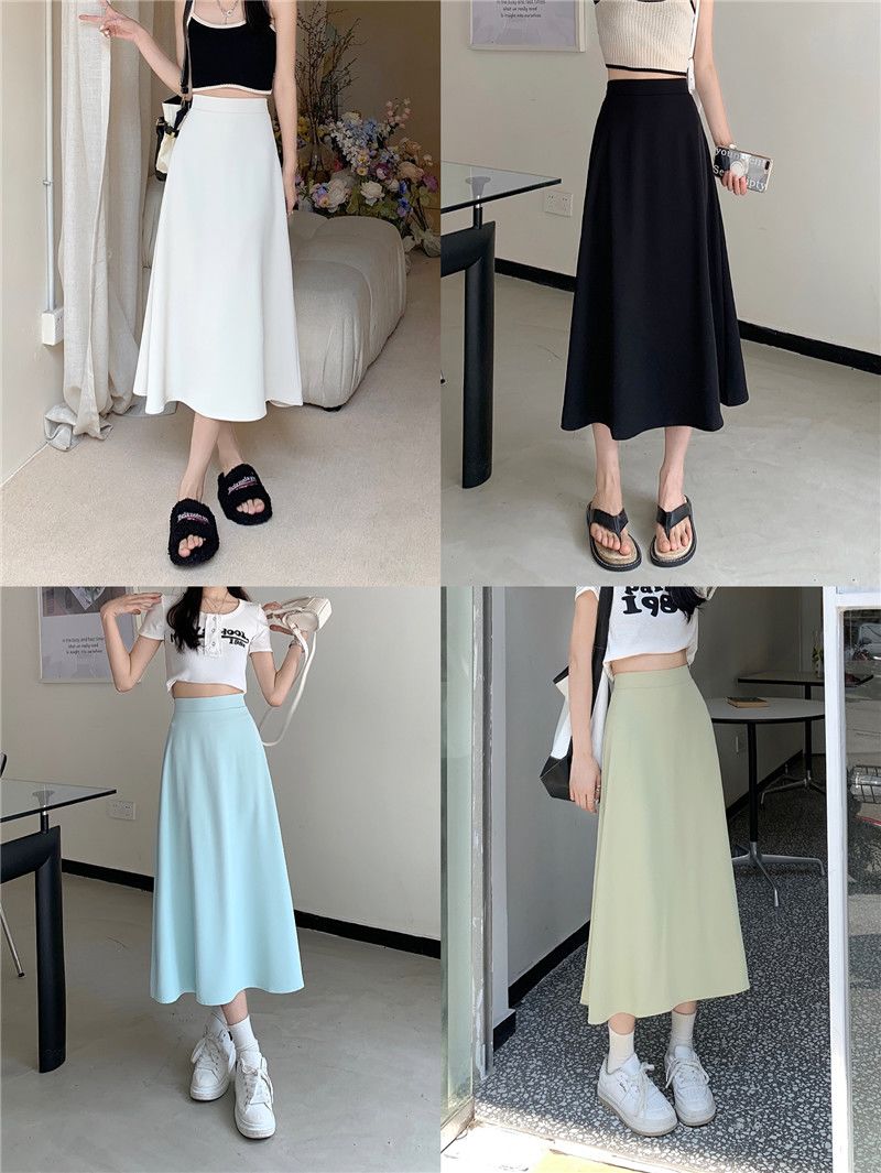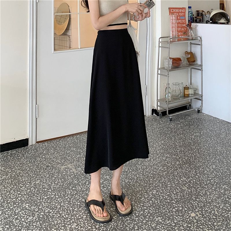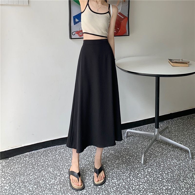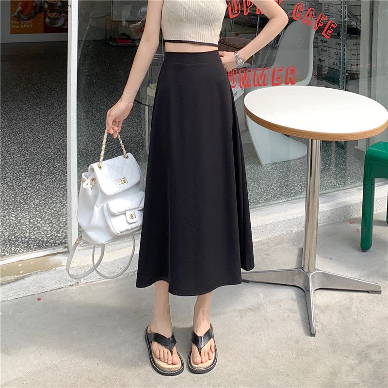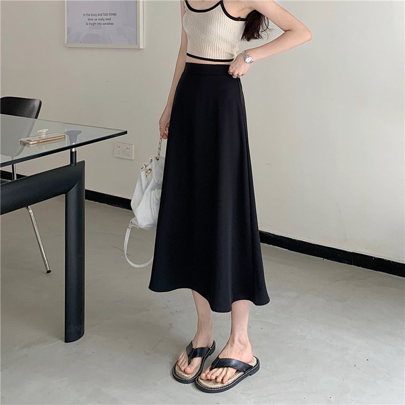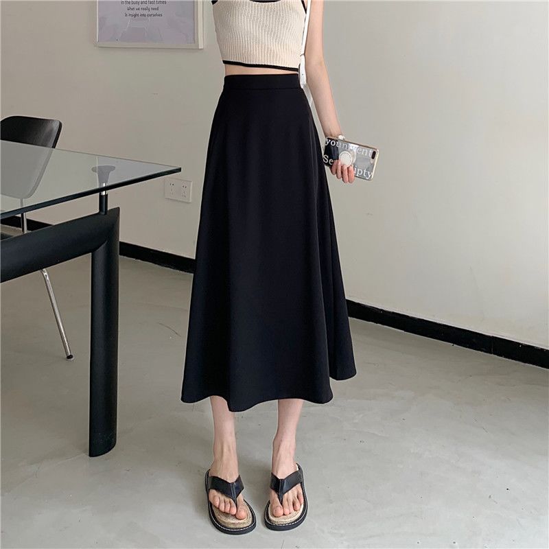 中长款A字裙女2024年新款夏季宽松高腰显瘦垂感过膝黑色半身裙子
