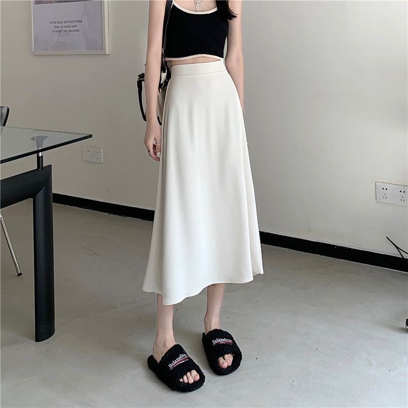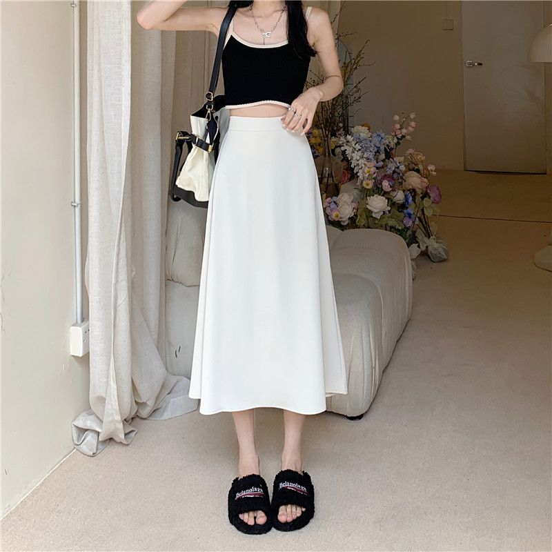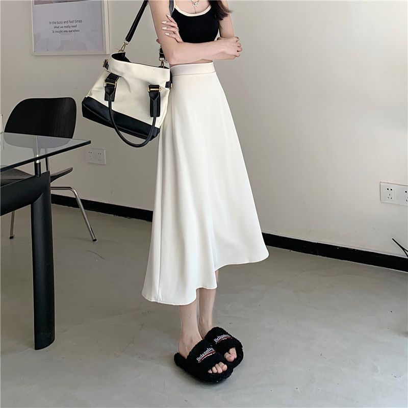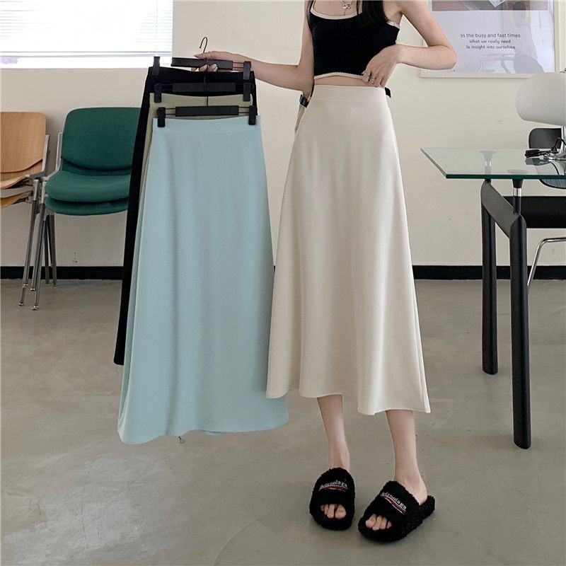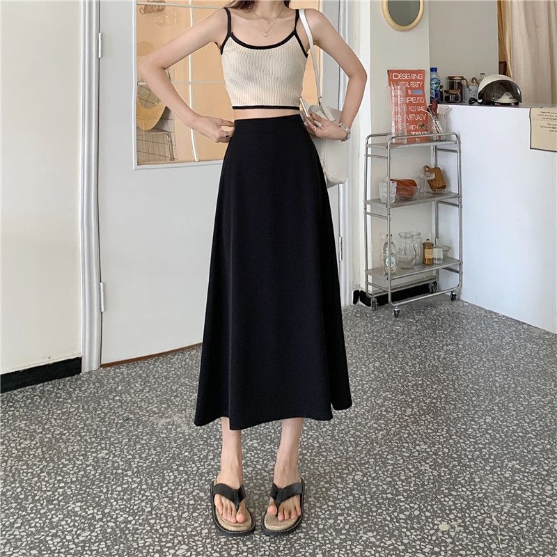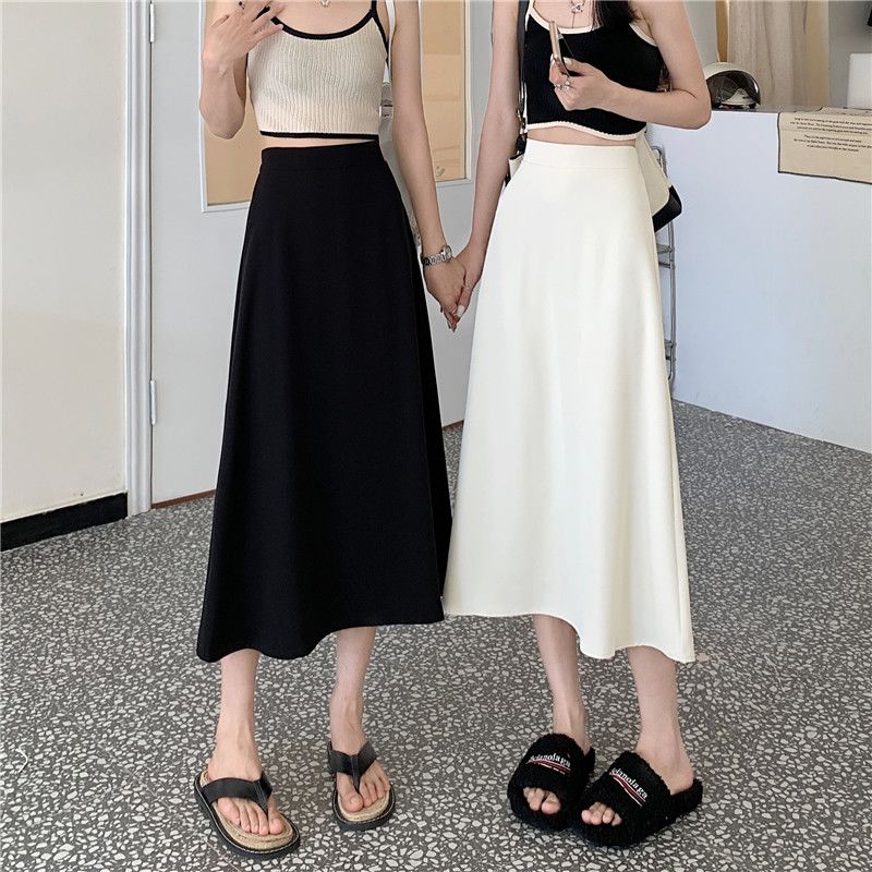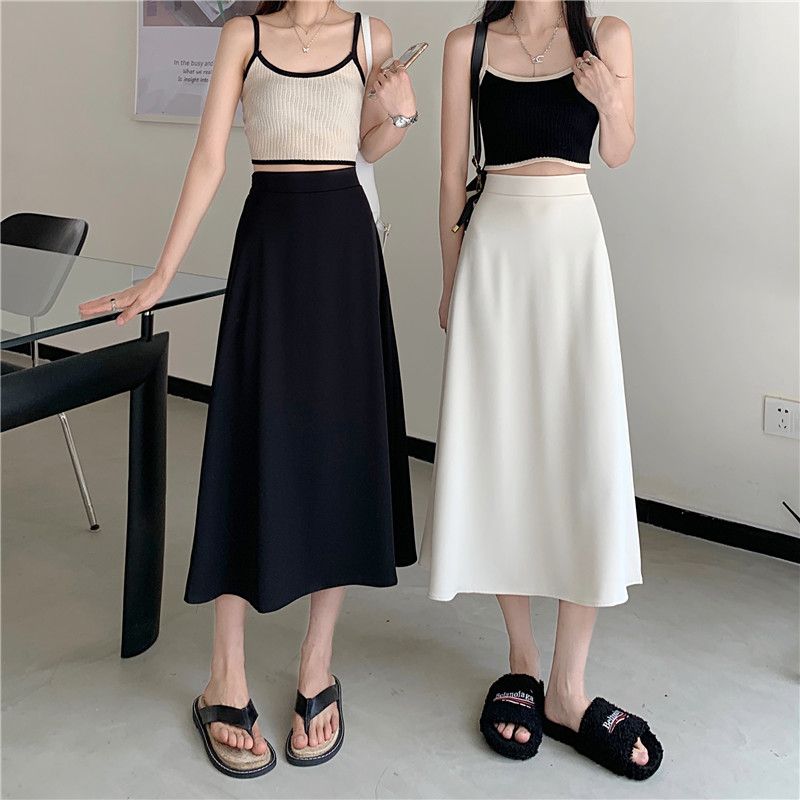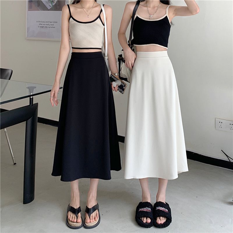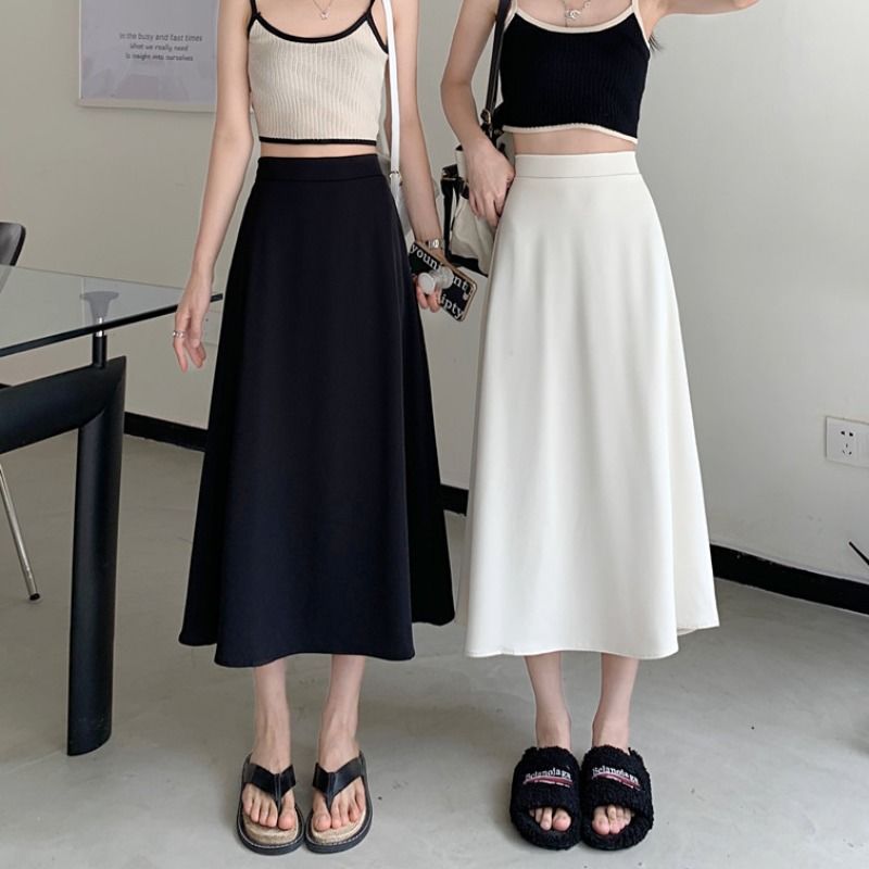 中长款A字裙女2024年新款夏季宽松高腰显瘦垂感过膝黑色半身裙子