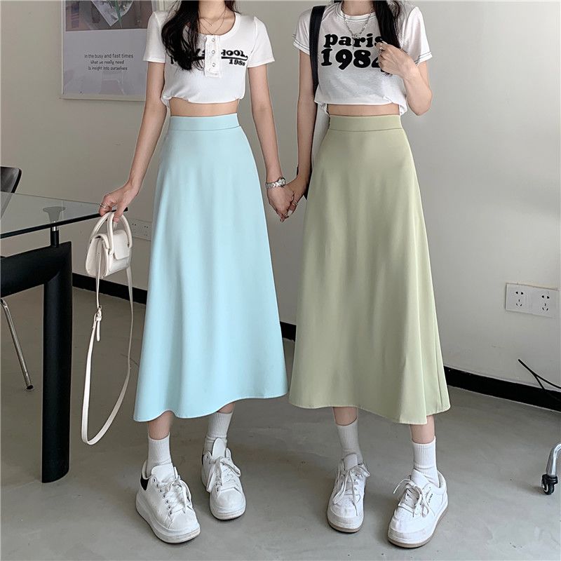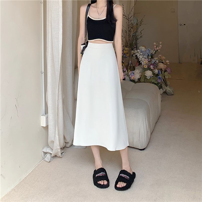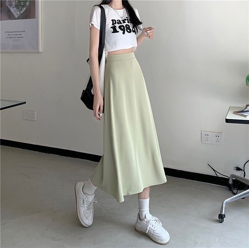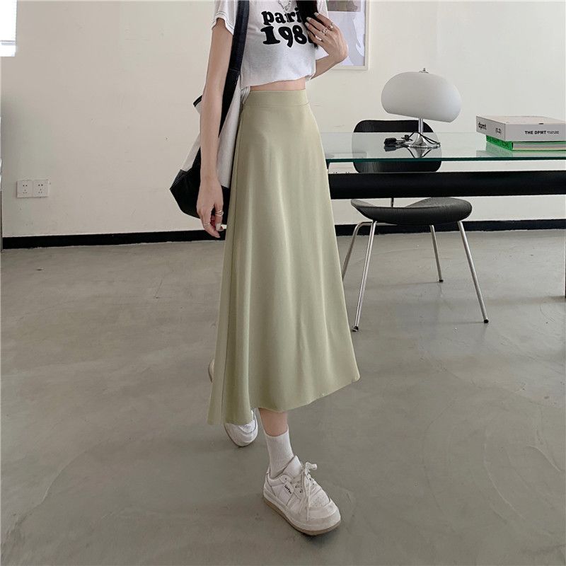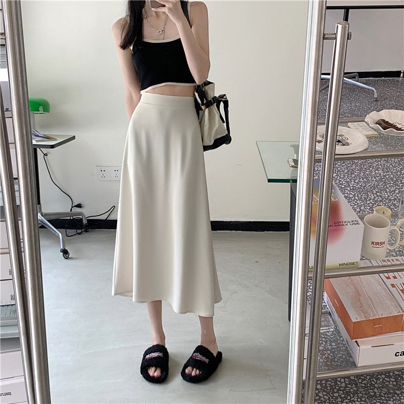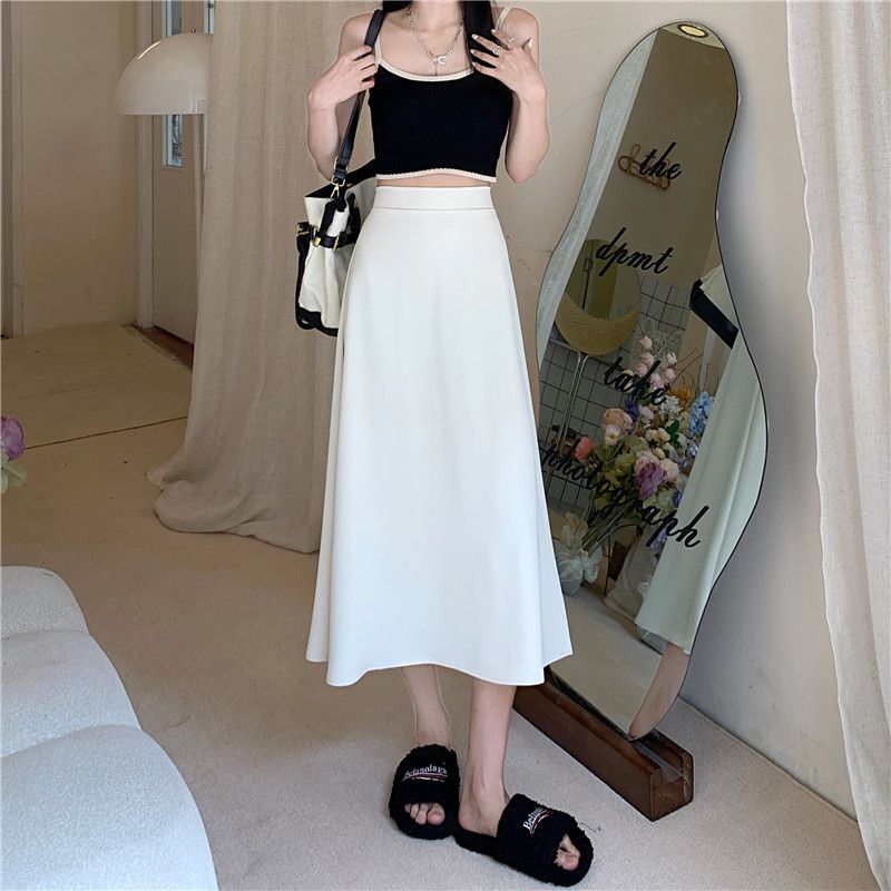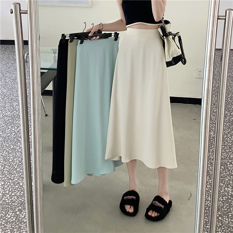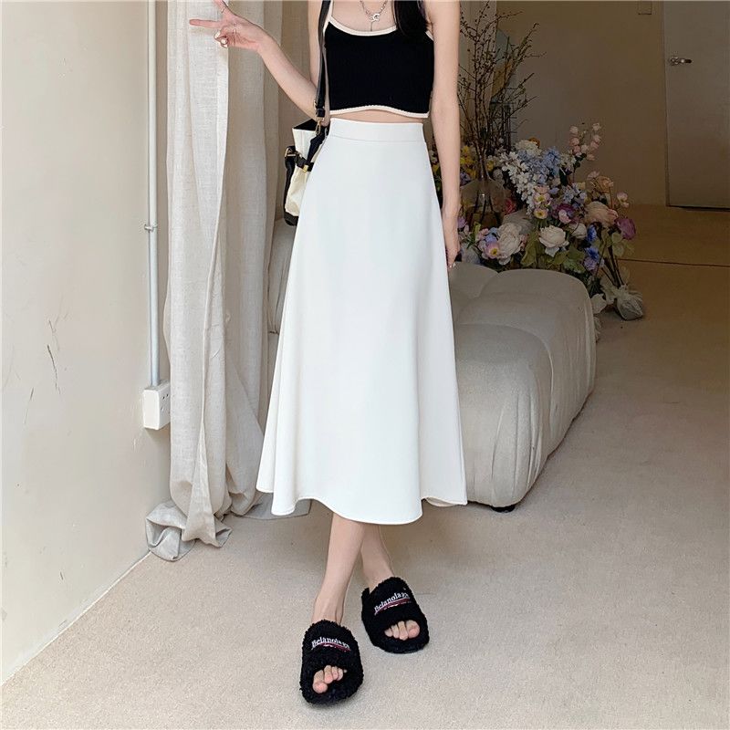 中长款A字裙女2024年新款夏季宽松高腰显瘦垂感过膝黑色半身裙子