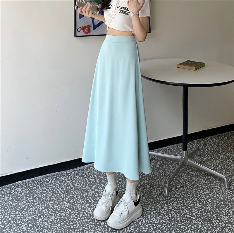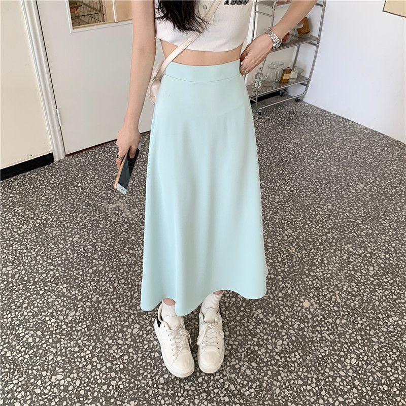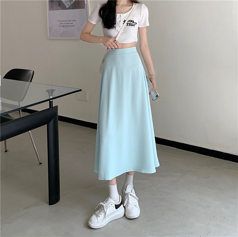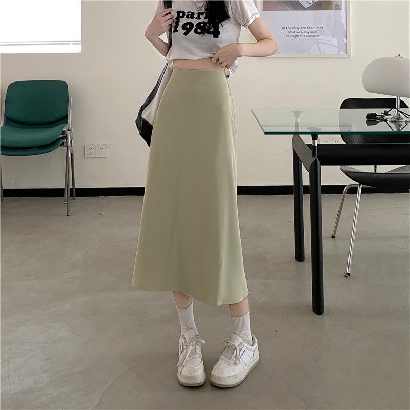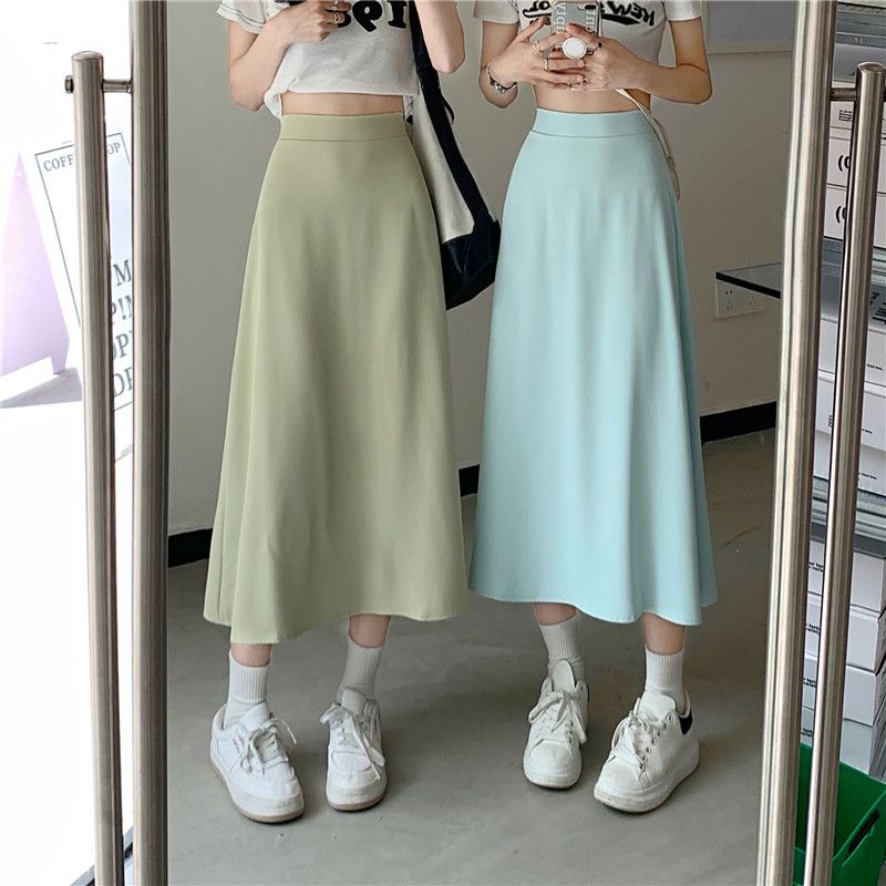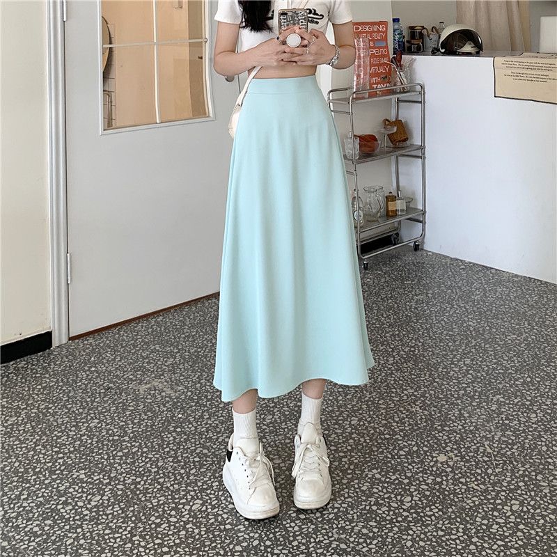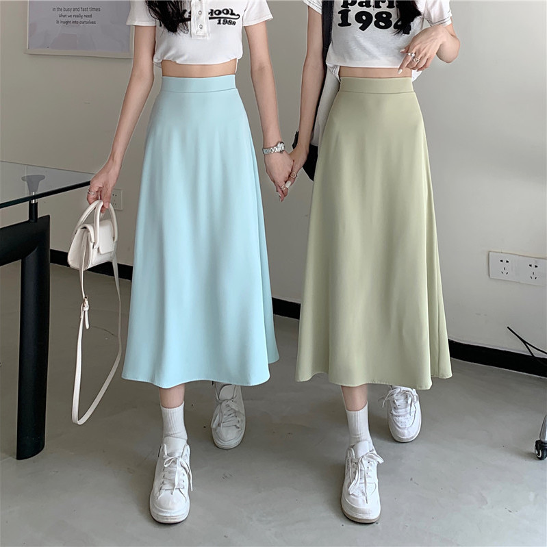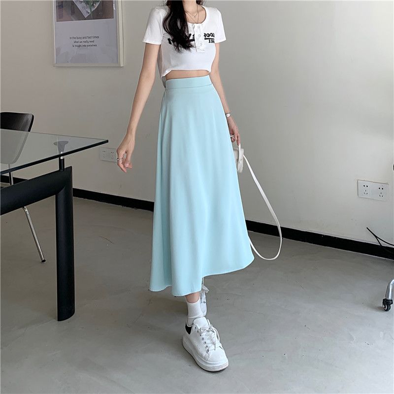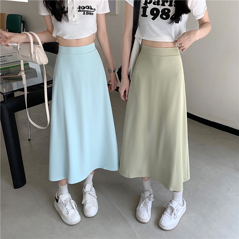 中长款A字裙女2024年新款夏季宽松高腰显瘦垂感过膝黑色半身裙子
