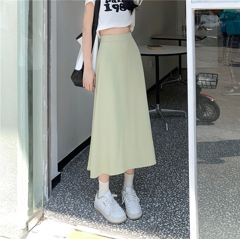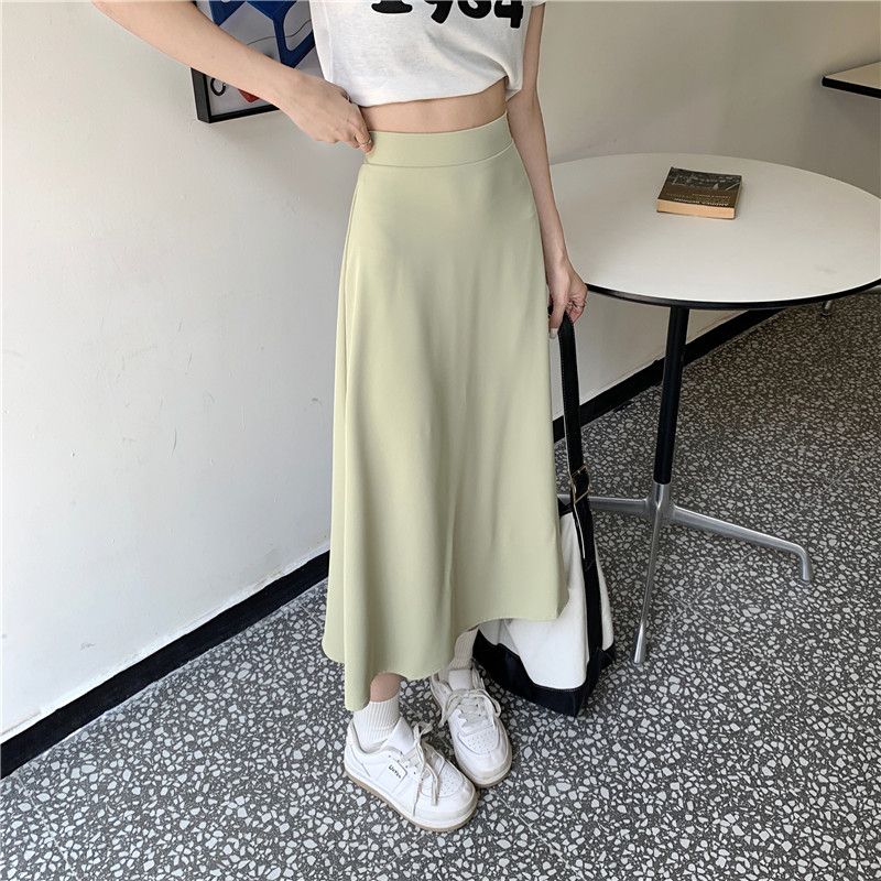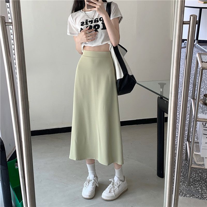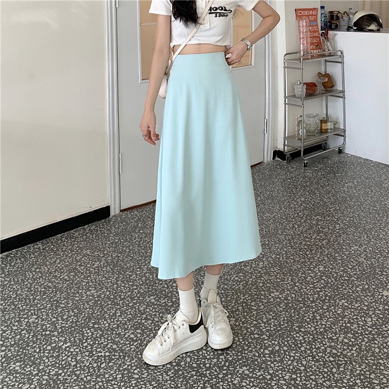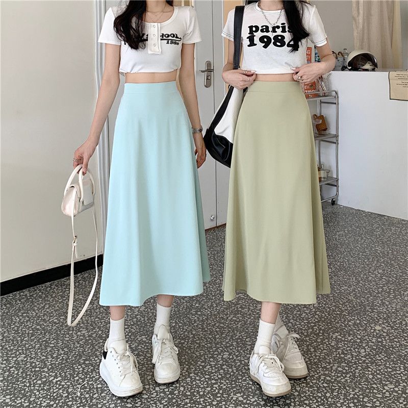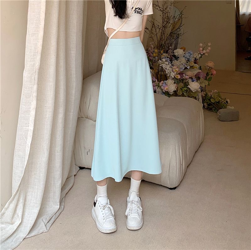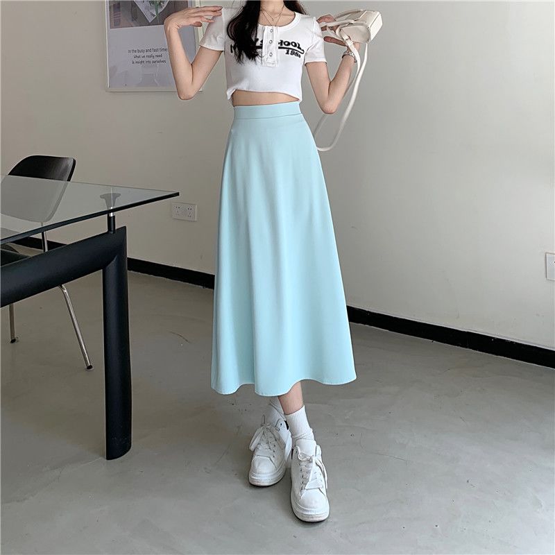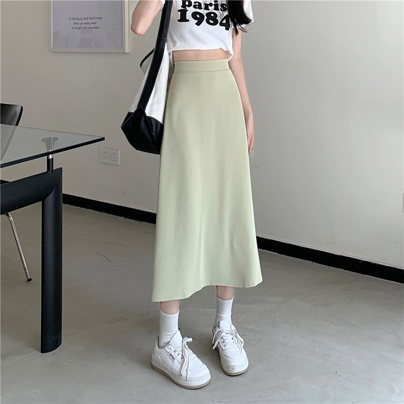 中长款A字裙女2024年新款夏季宽松高腰显瘦垂感过膝黑色半身裙子