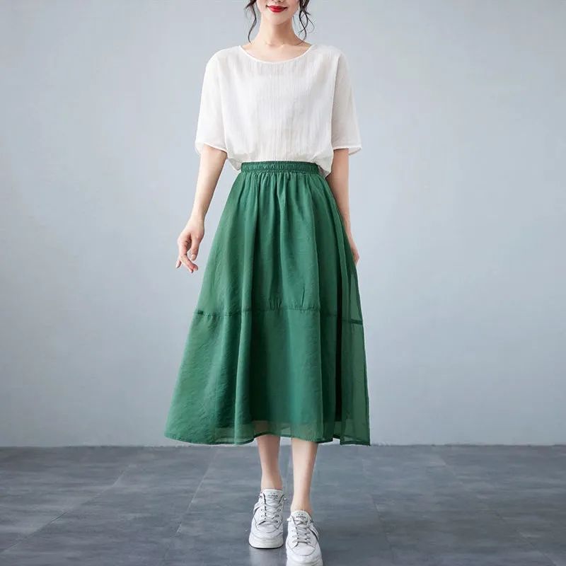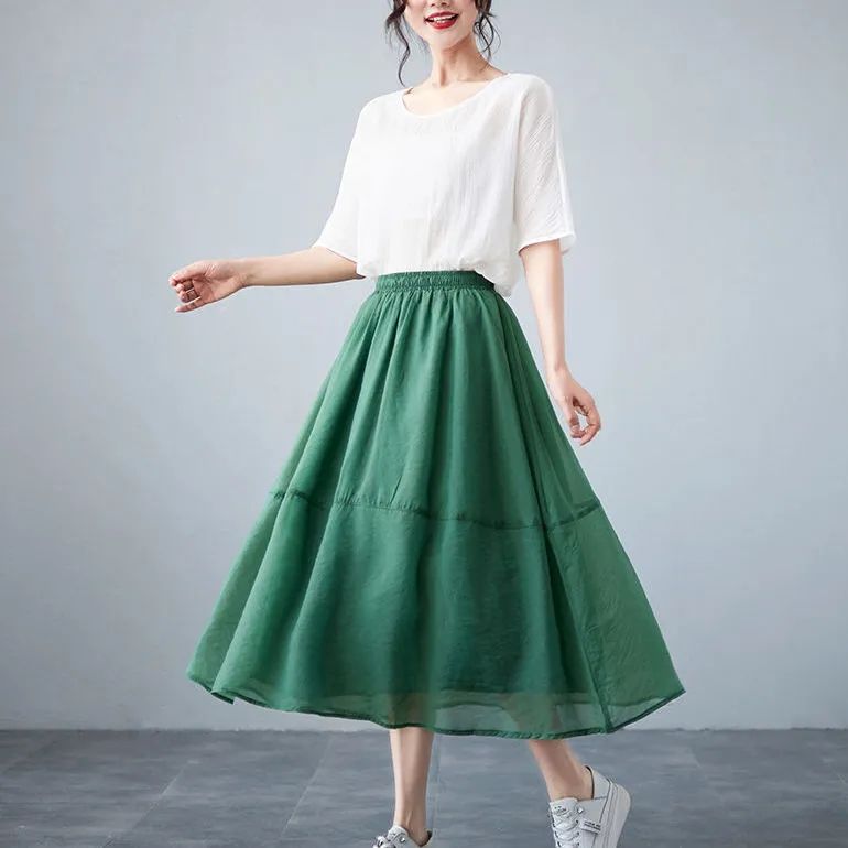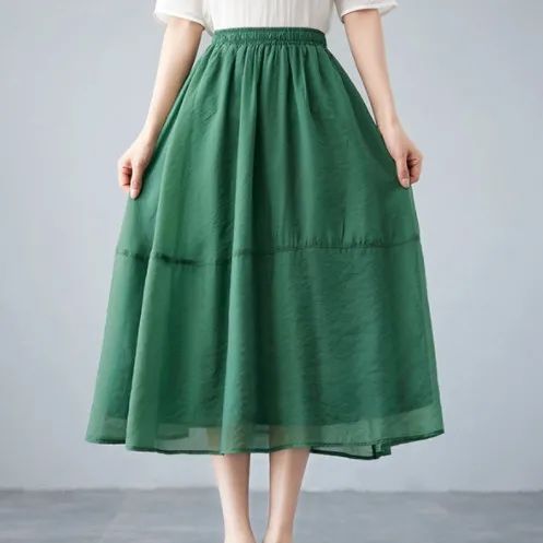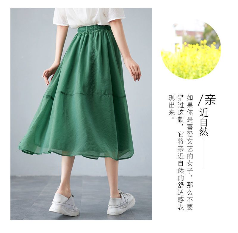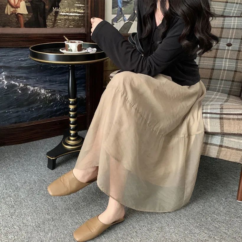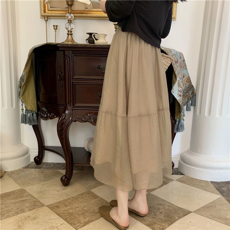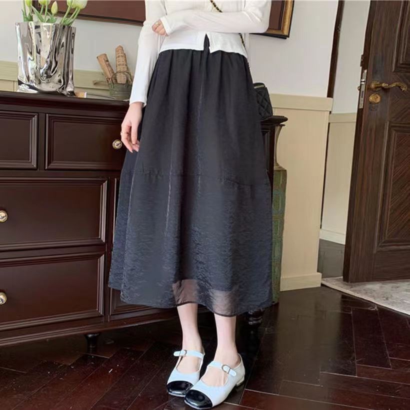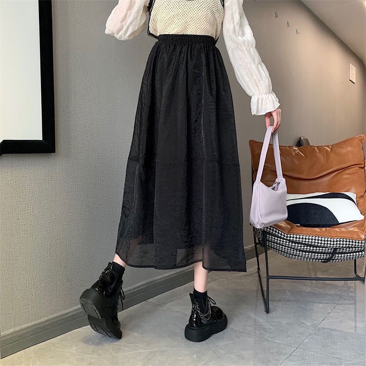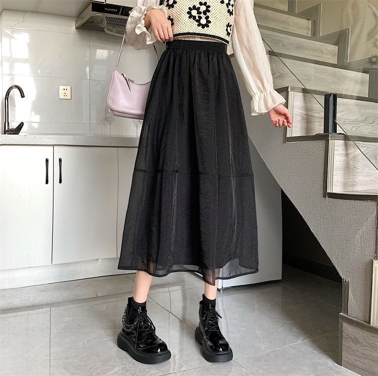 半身裙女2024新款显瘦春夏中长款网纱a字裙雪纺高腰学生仙女裙ins