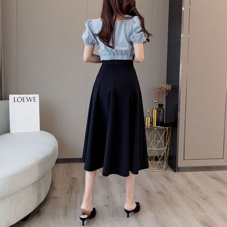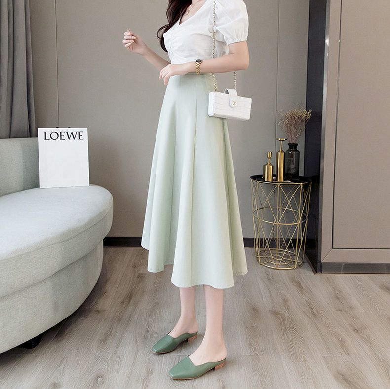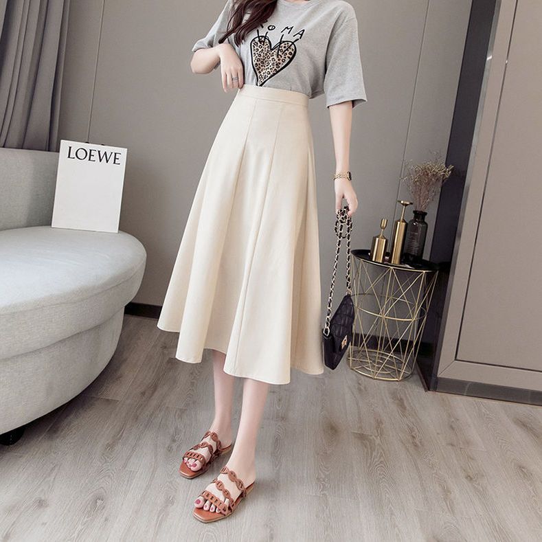 遮胯显瘦a字半身裙女2024秋季新款小个子韩版高腰百搭中长款伞裙