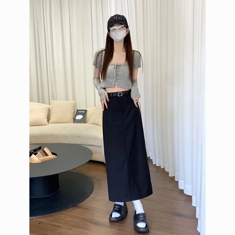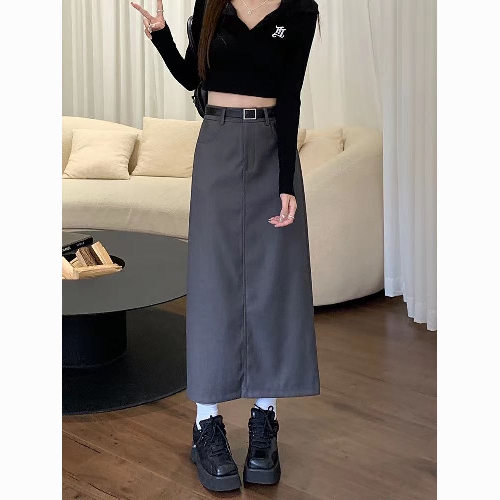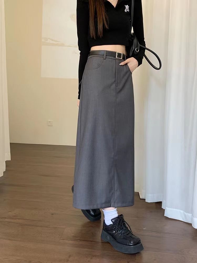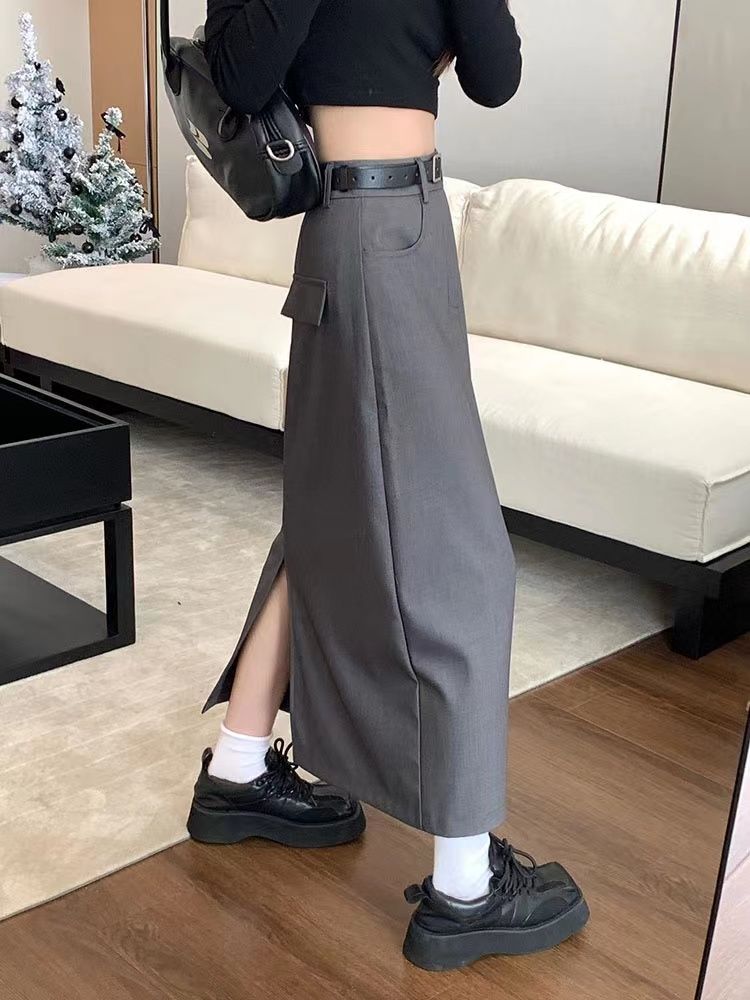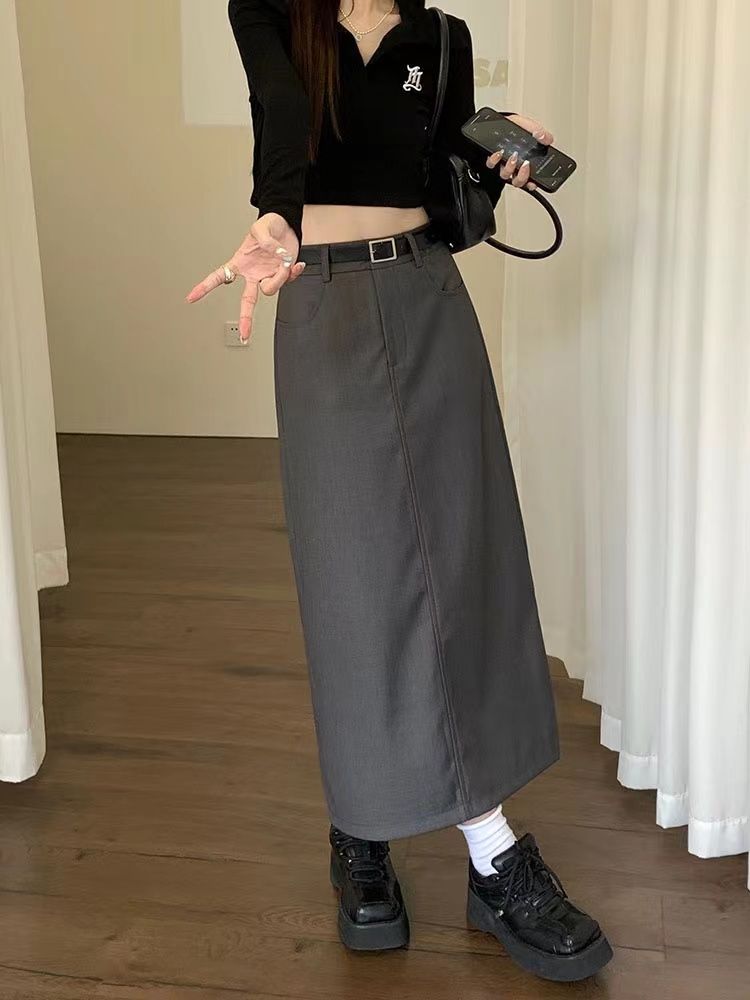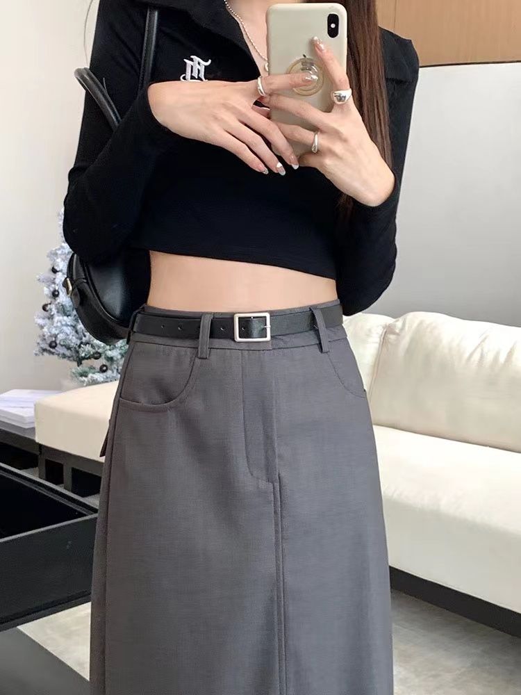灰色a字半身裙女2024年春夏新款高腰显瘦包臀西装裙中长款一步裙