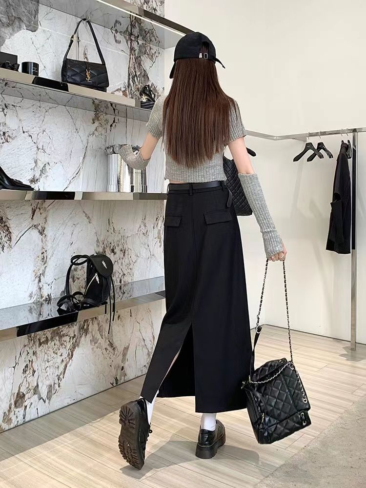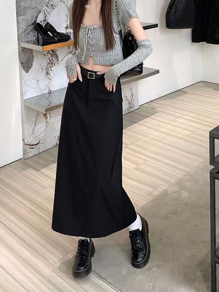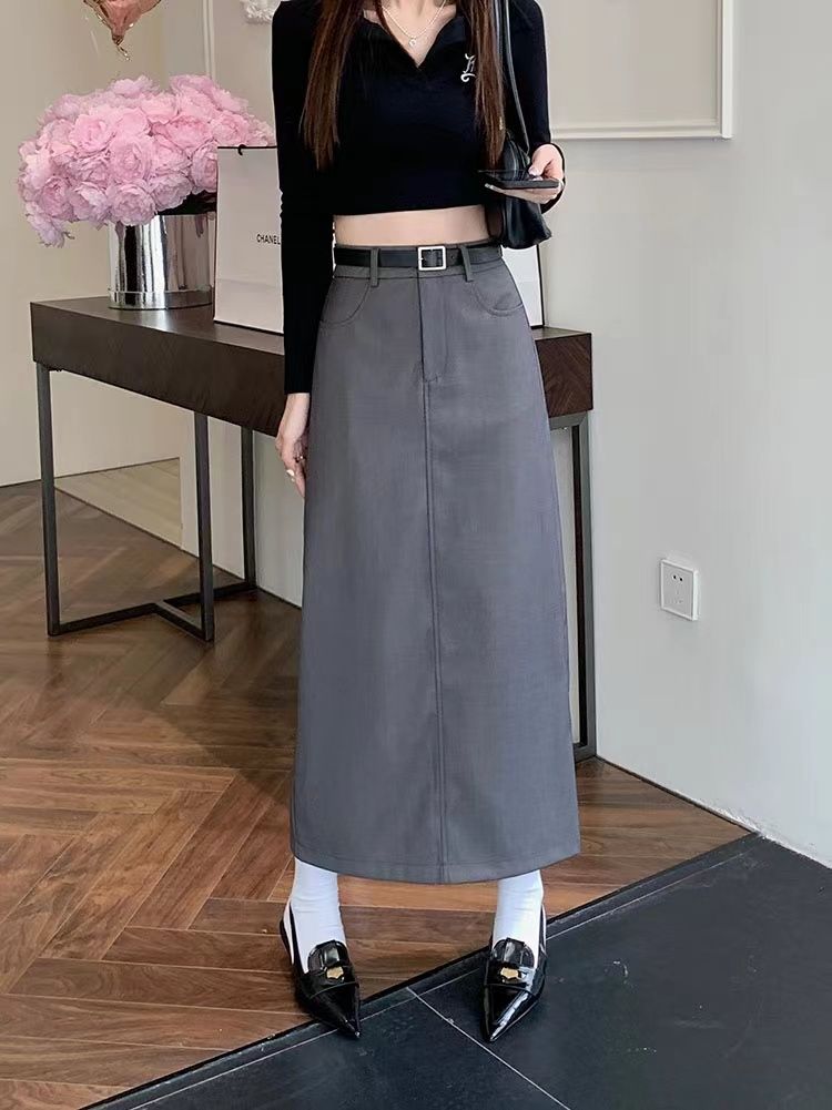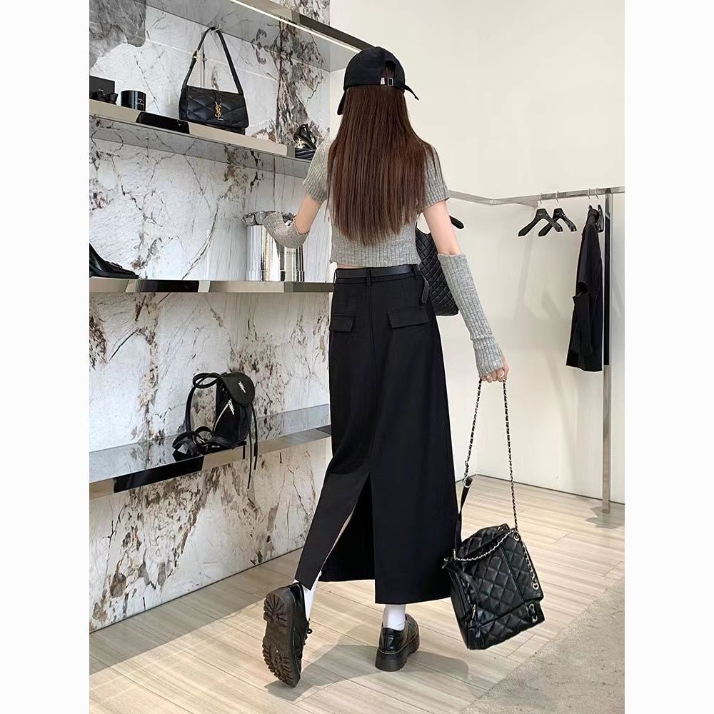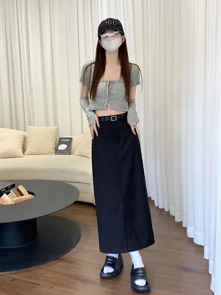 灰色a字半身裙女2024年春夏新款高腰显瘦包臀西装裙中长款一步裙