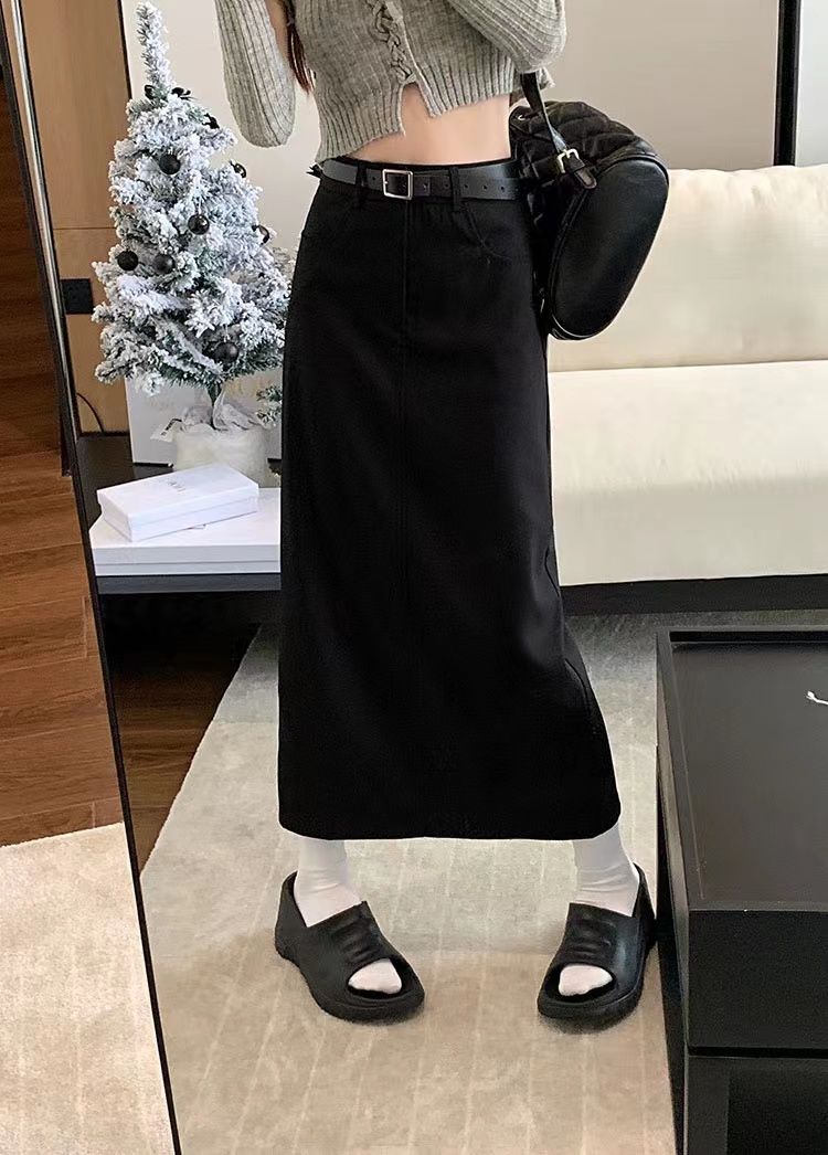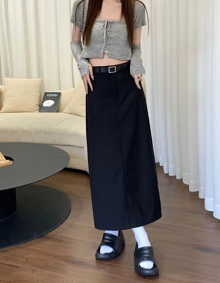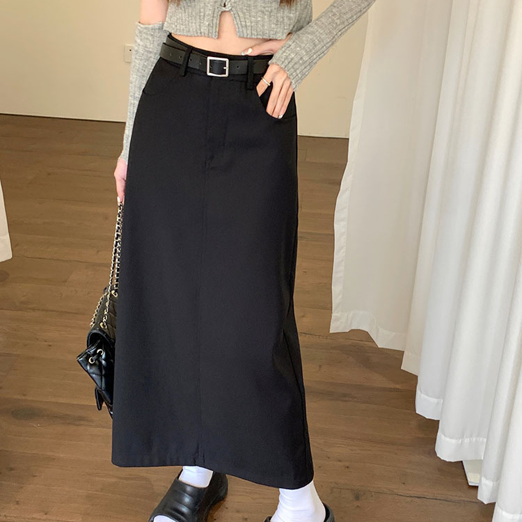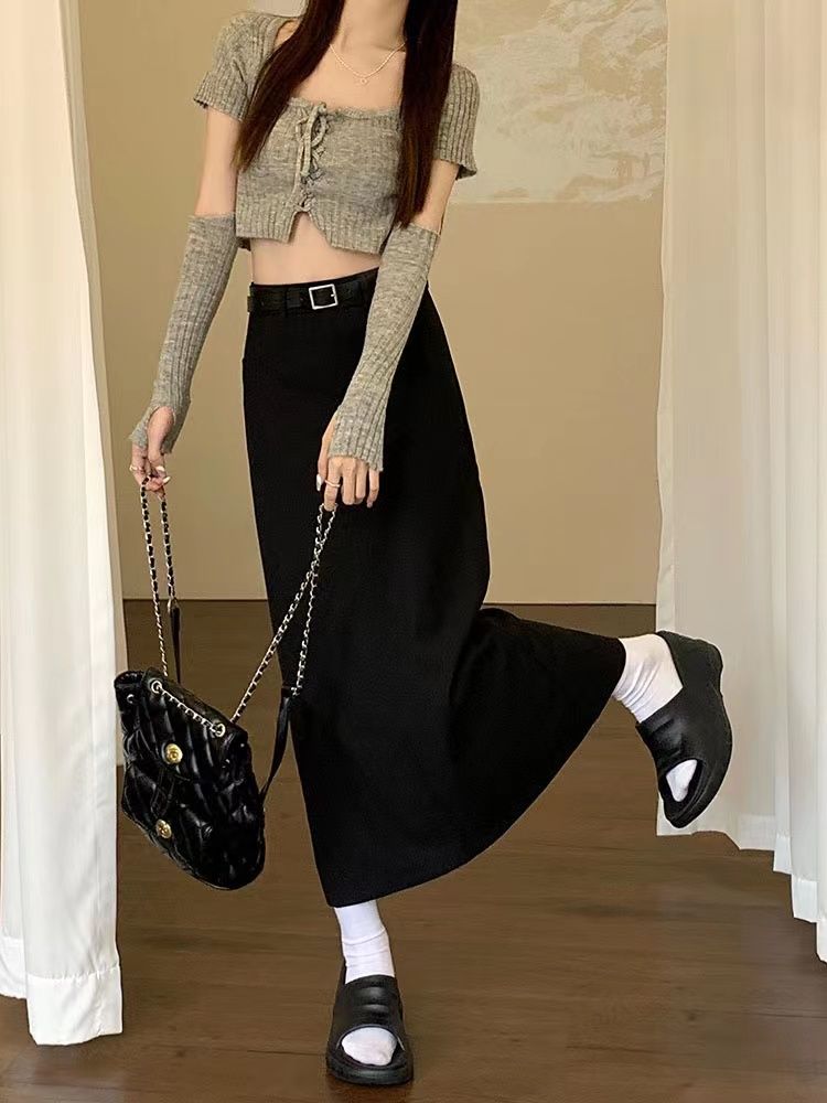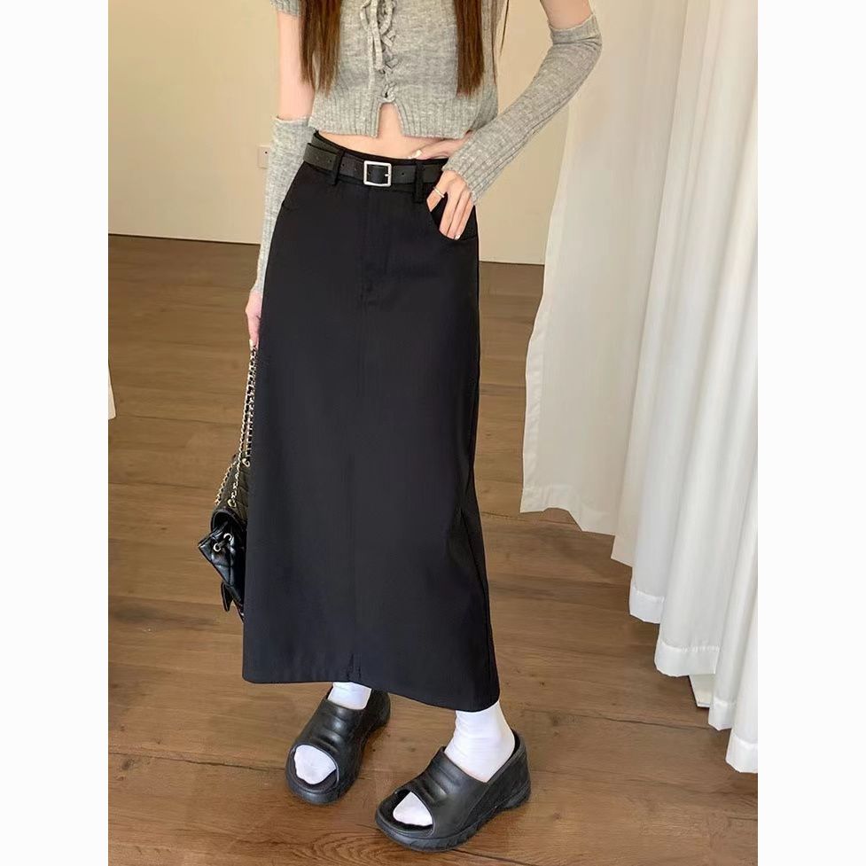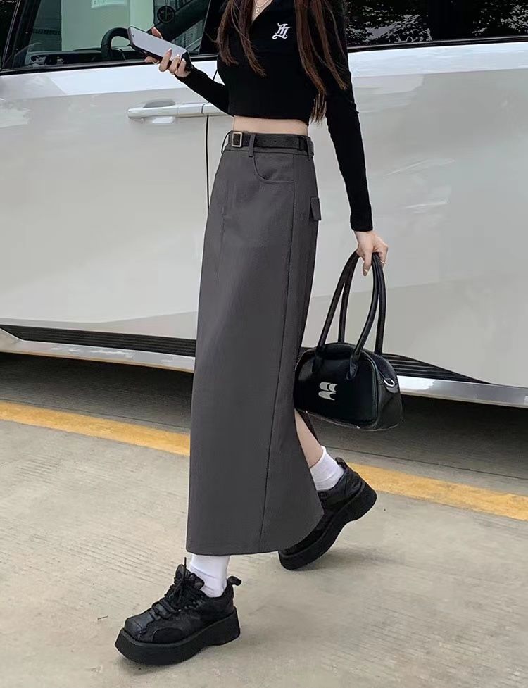 灰色a字半身裙女2024年春夏新款高腰显瘦包臀西装裙中长款一步裙
