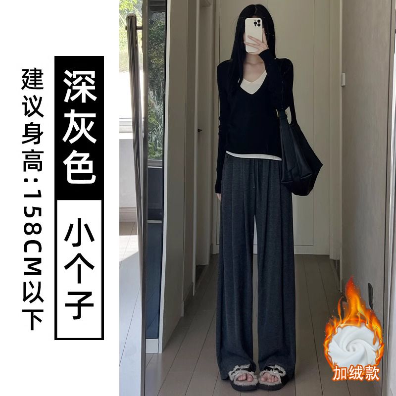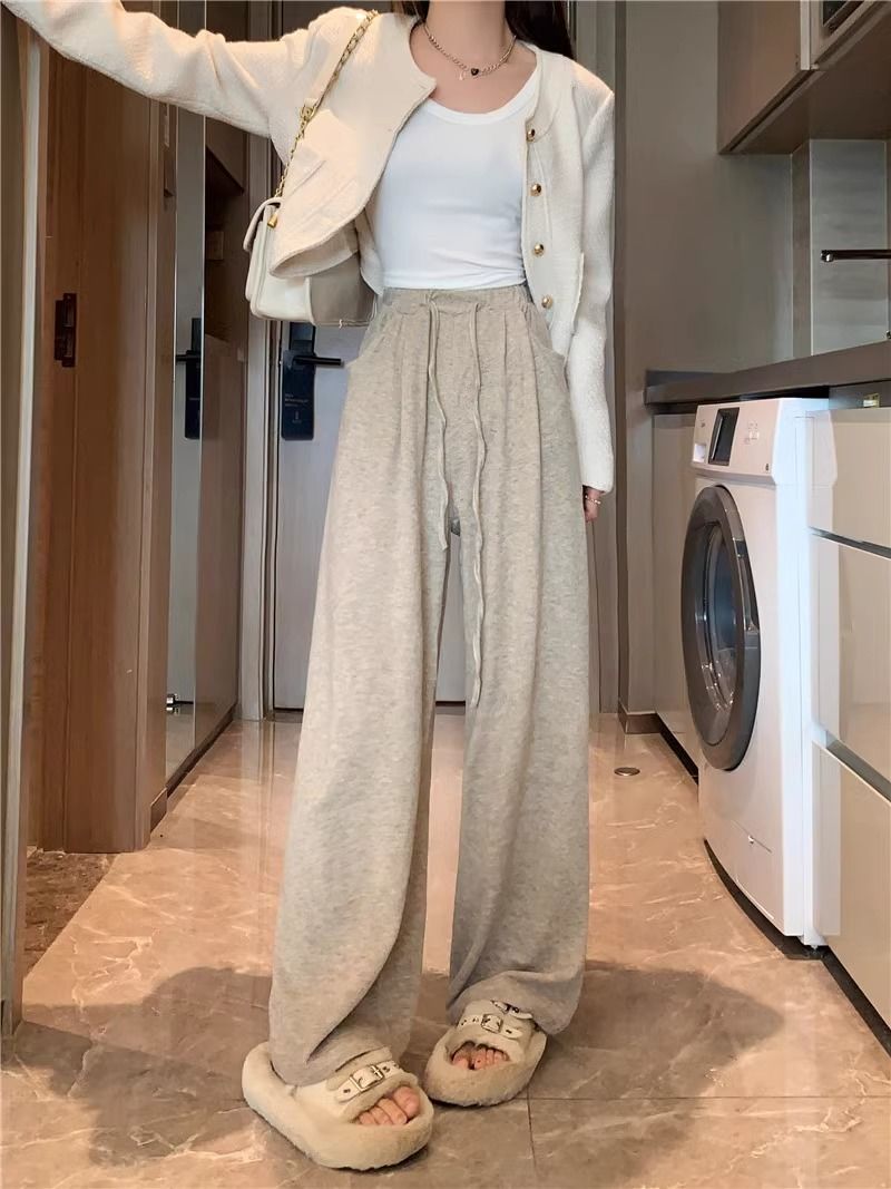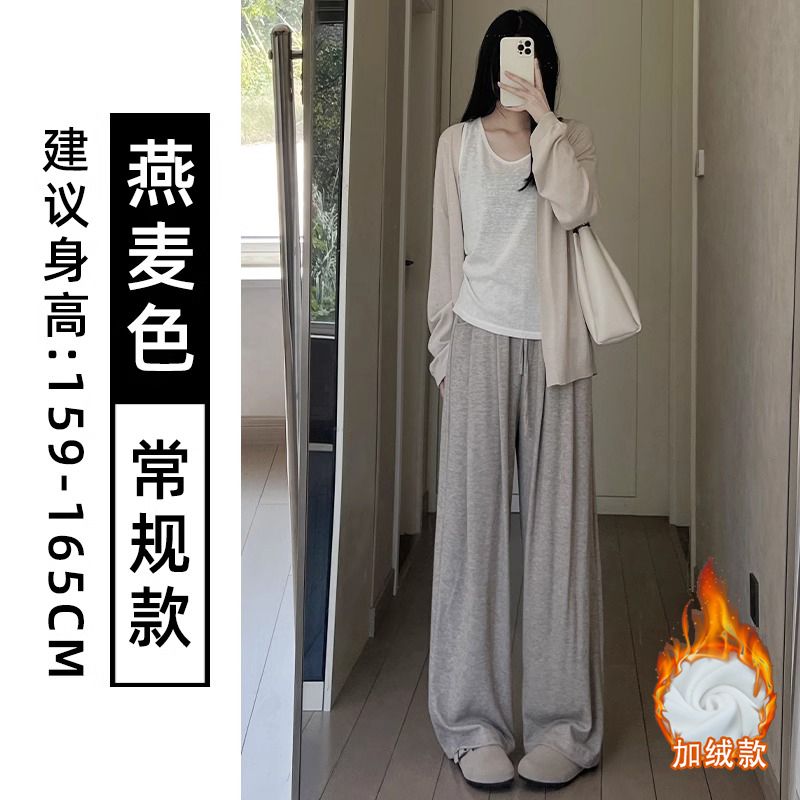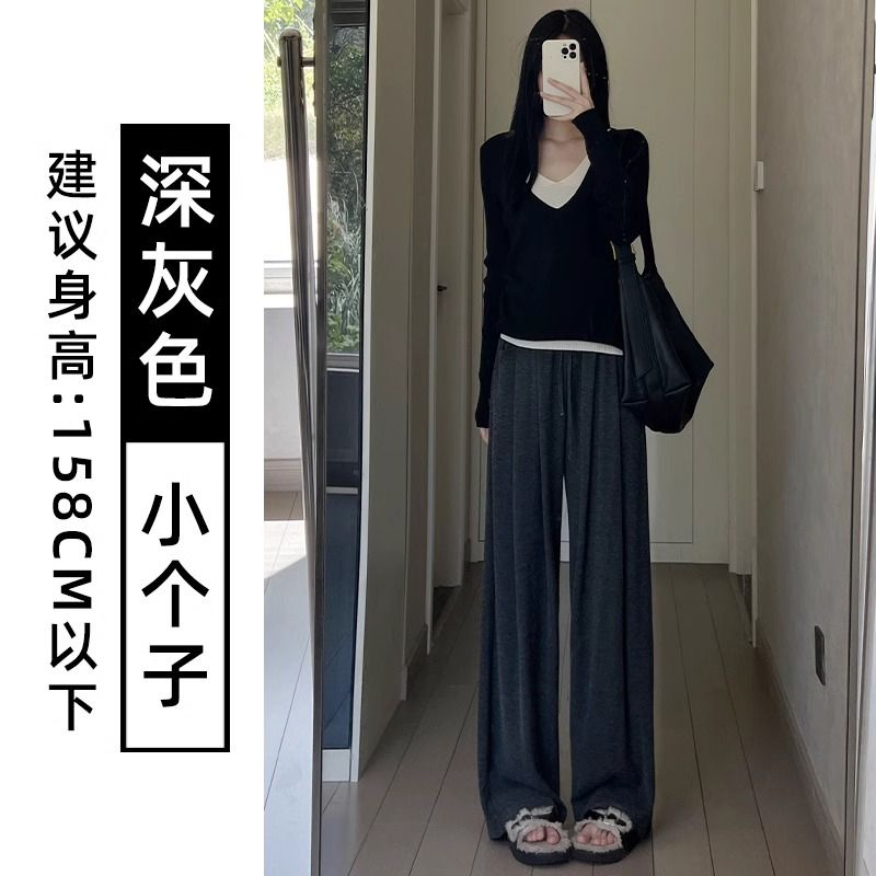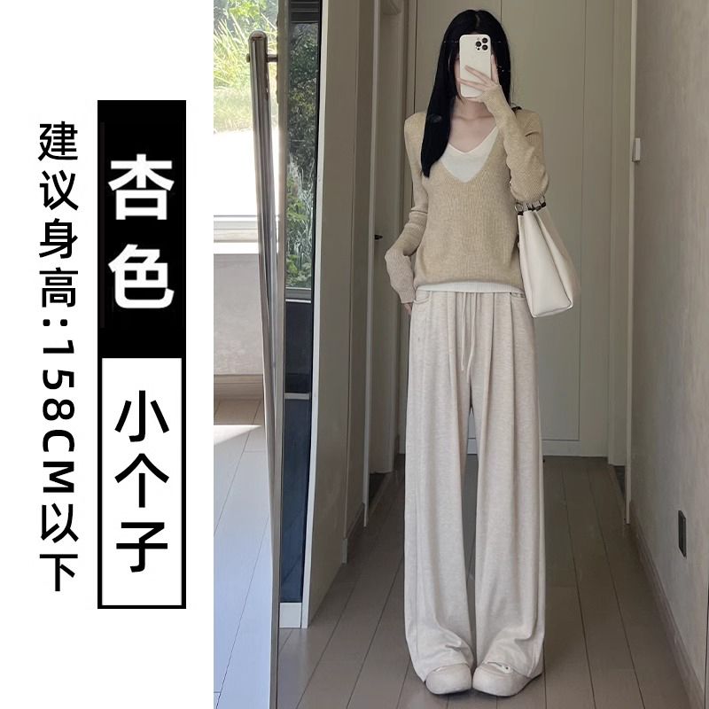 糯米裤女春秋新款高腰简约通勤直筒垂感慵懒风宽松休闲百搭阔腿裤