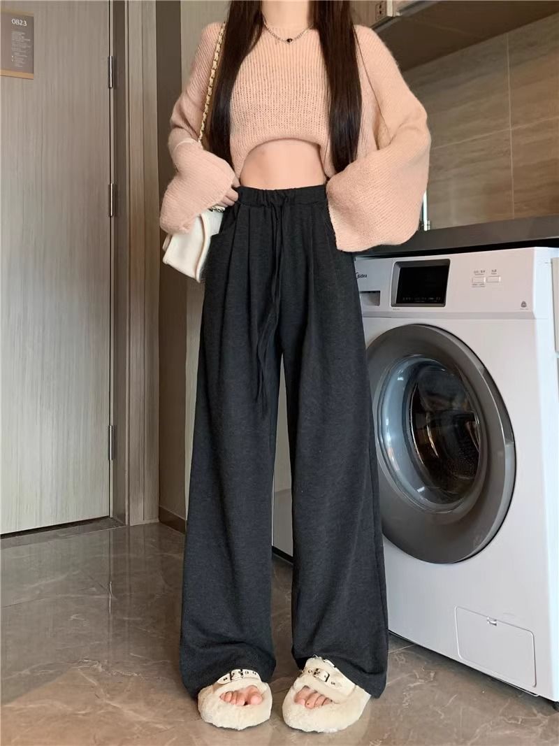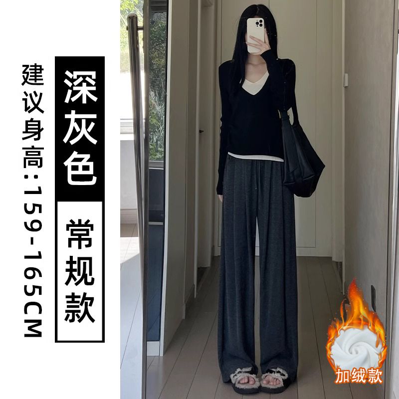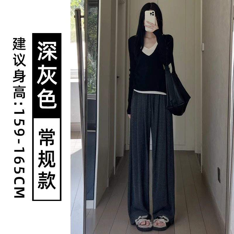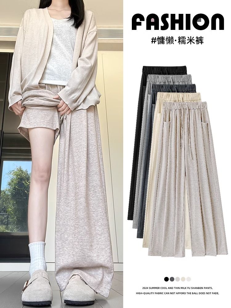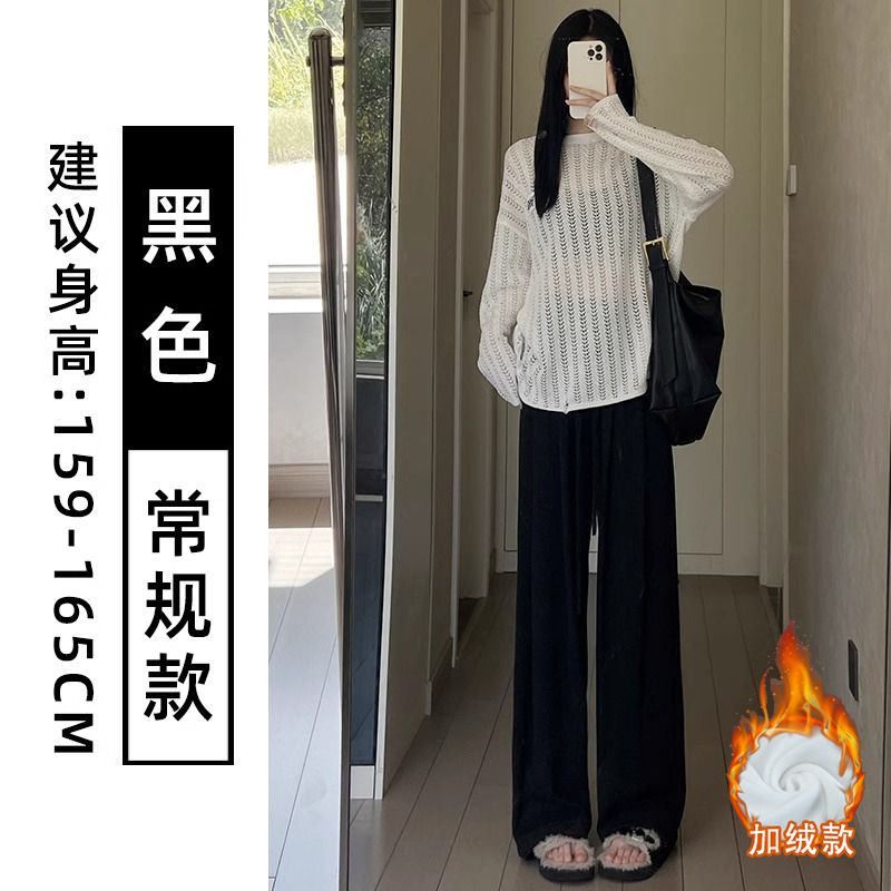 糯米裤女春秋新款高腰简约通勤直筒垂感慵懒风宽松休闲百搭阔腿裤