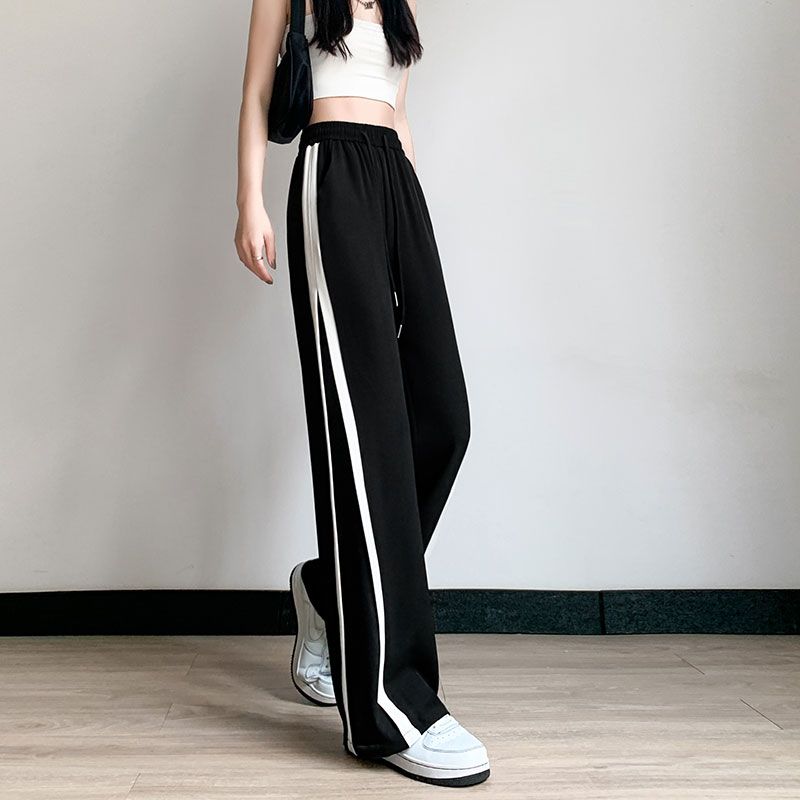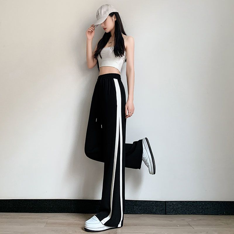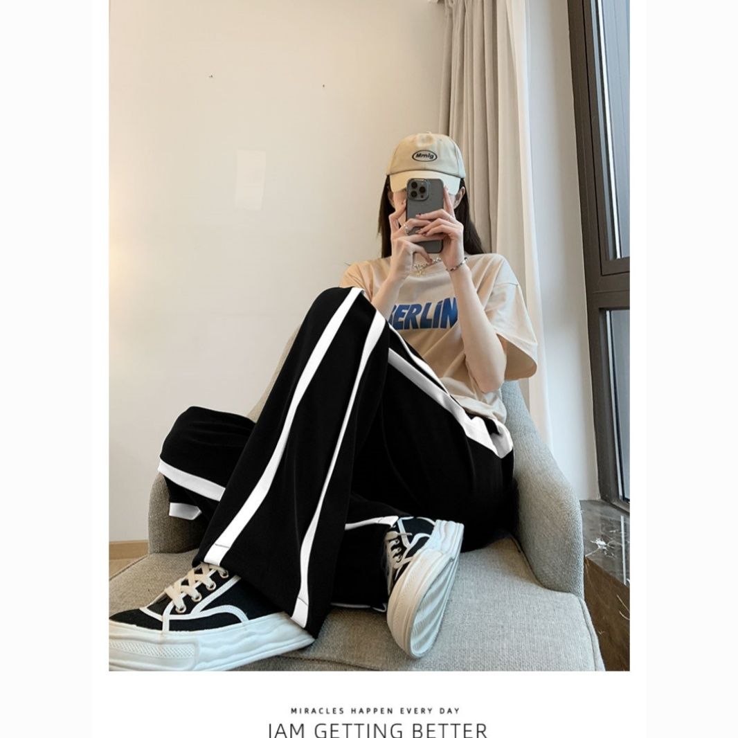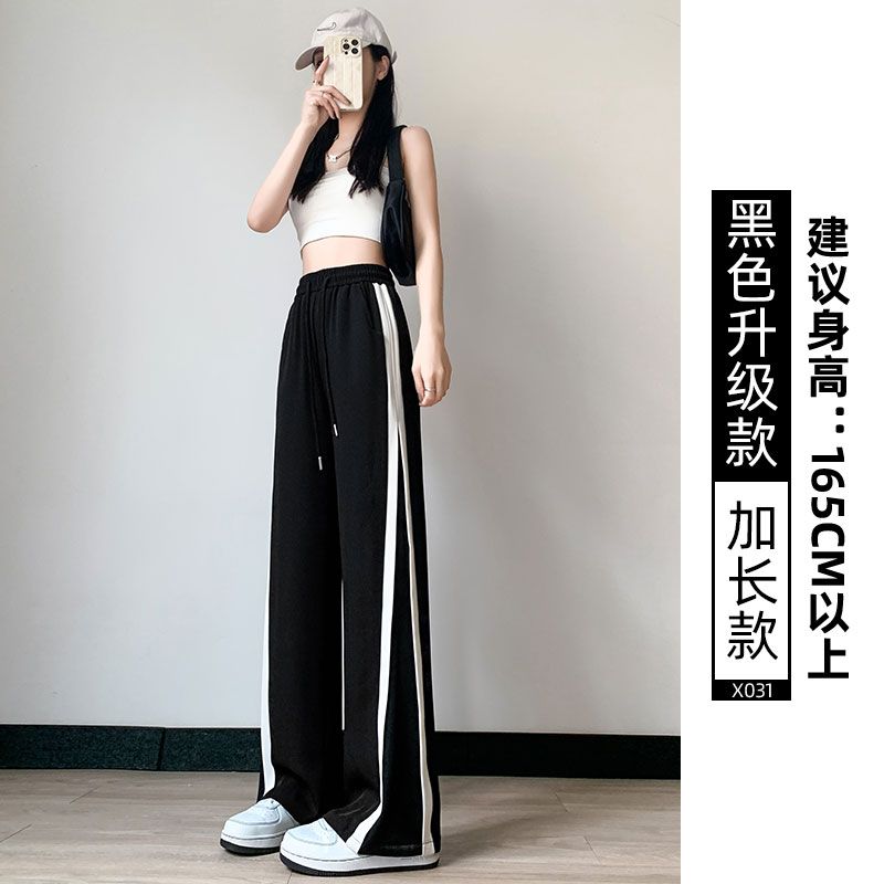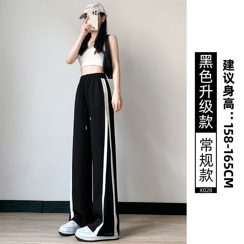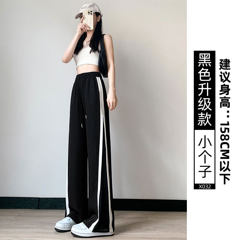 REUP运动裤女春秋2023新款高腰垂感阔腿裤休闲显瘦小个子直筒裤子