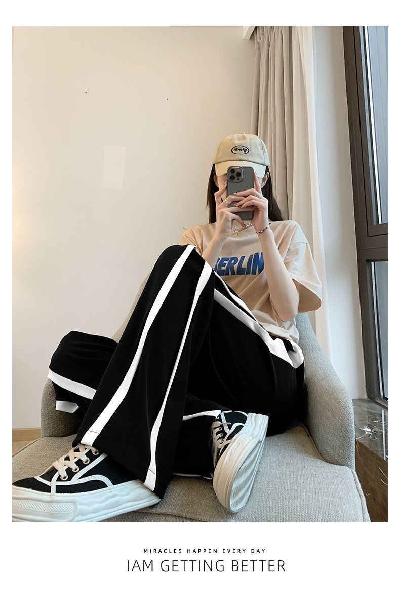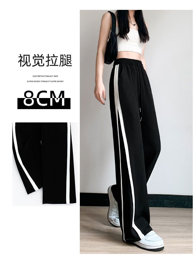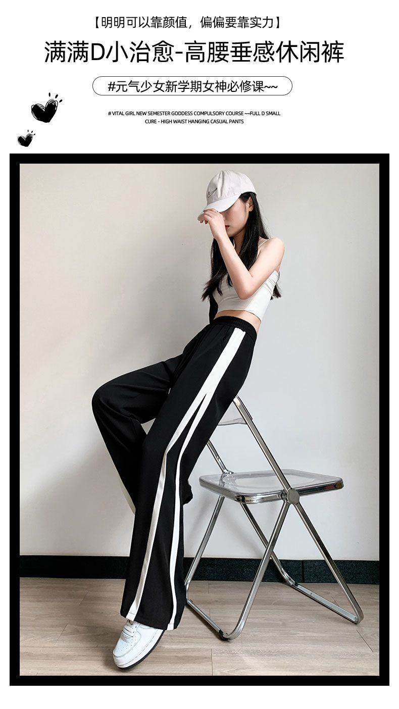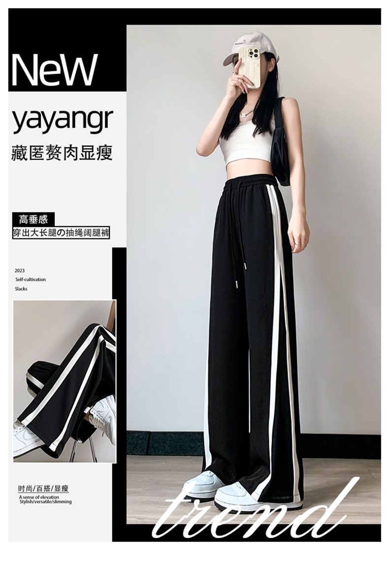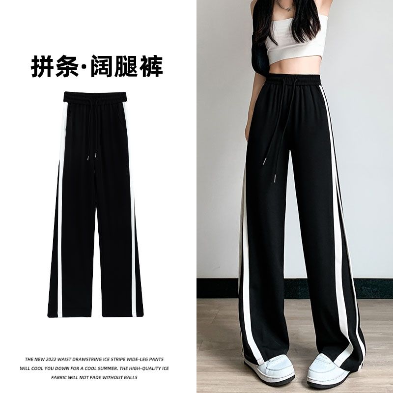 REUP运动裤女春秋2023新款高腰垂感阔腿裤休闲显瘦小个子直筒裤子