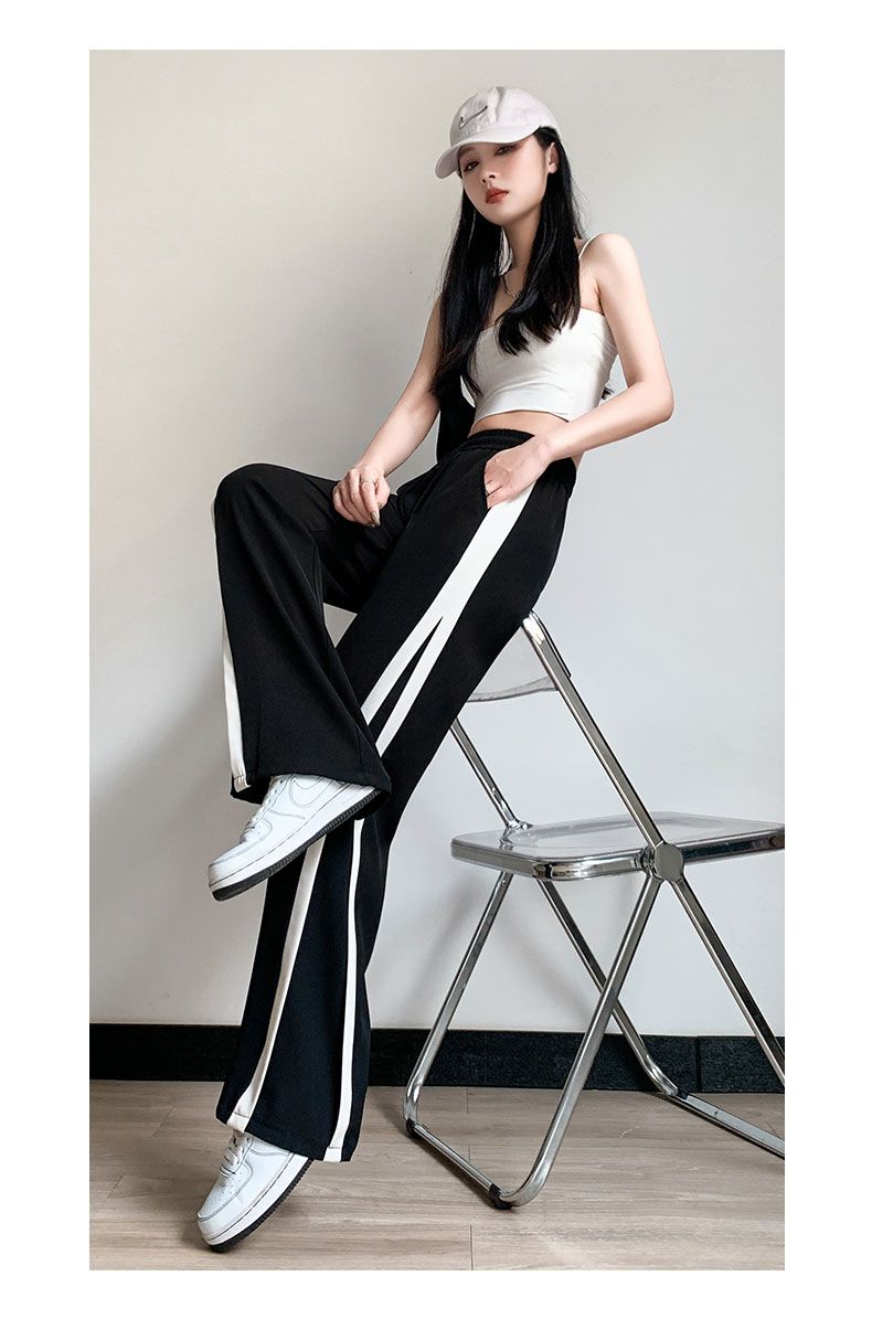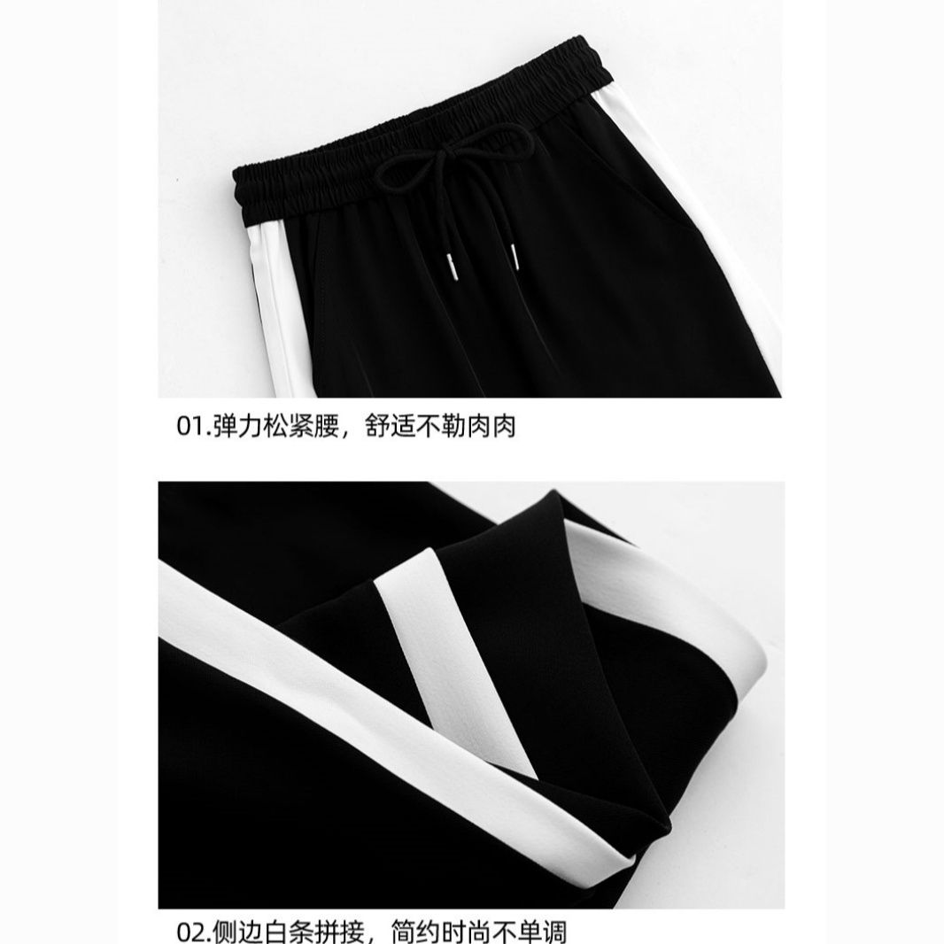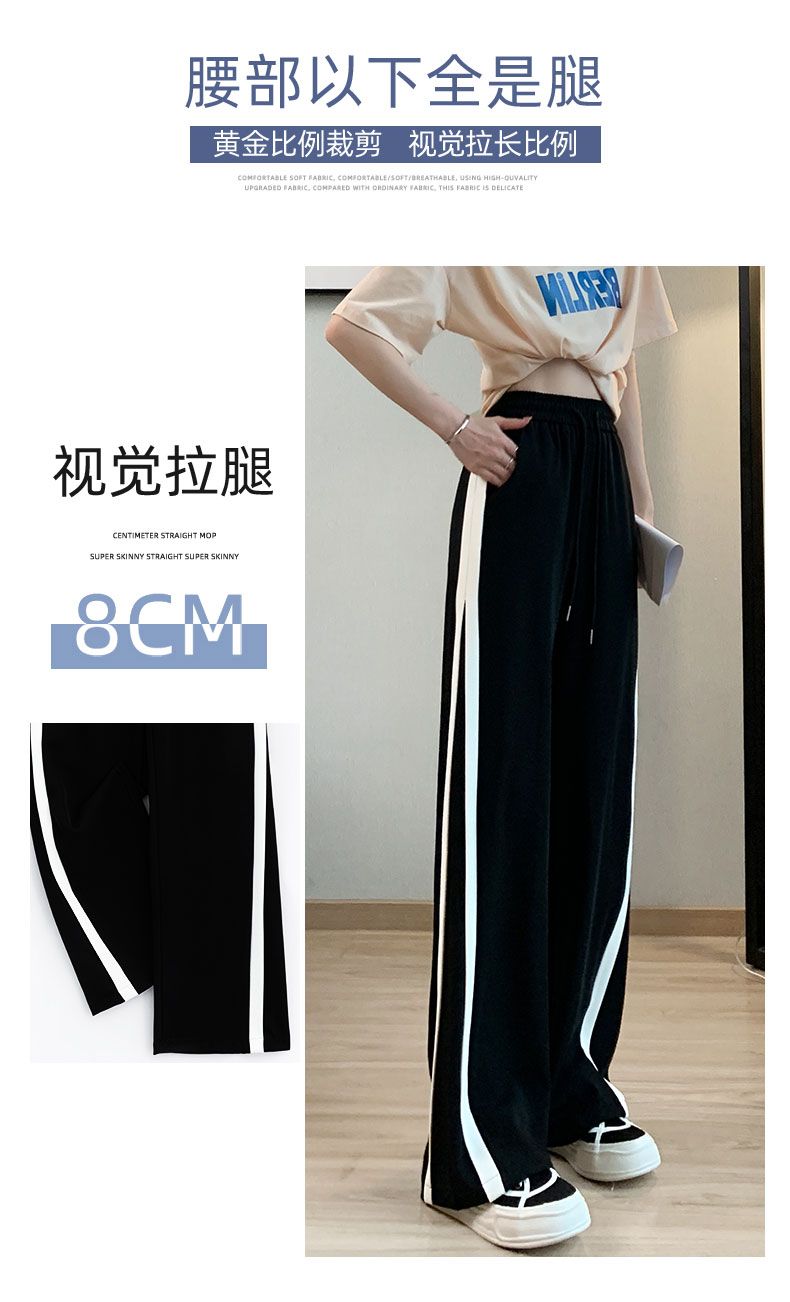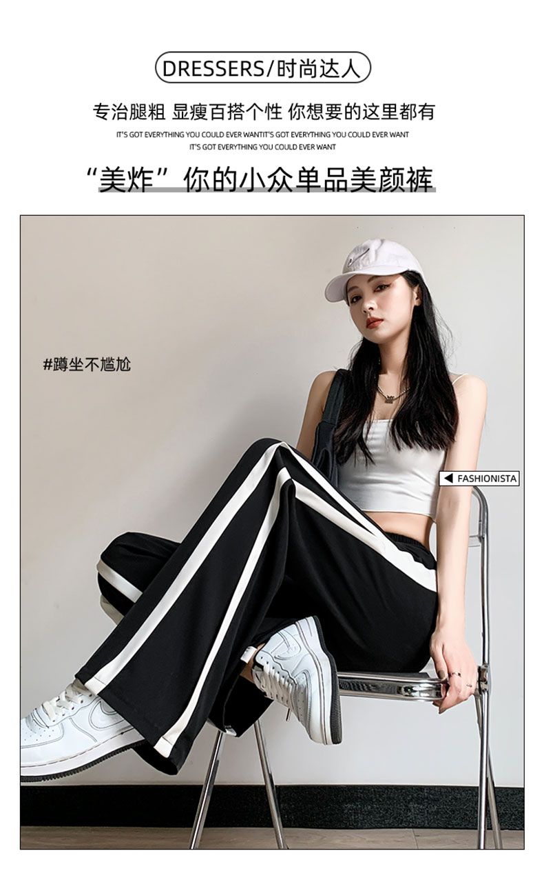REUP运动裤女春秋2023新款高腰垂感阔腿裤休闲显瘦小个子直筒裤子