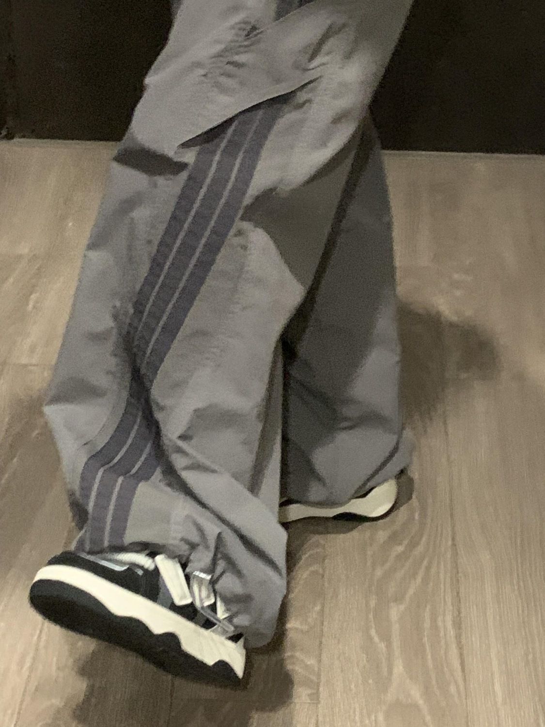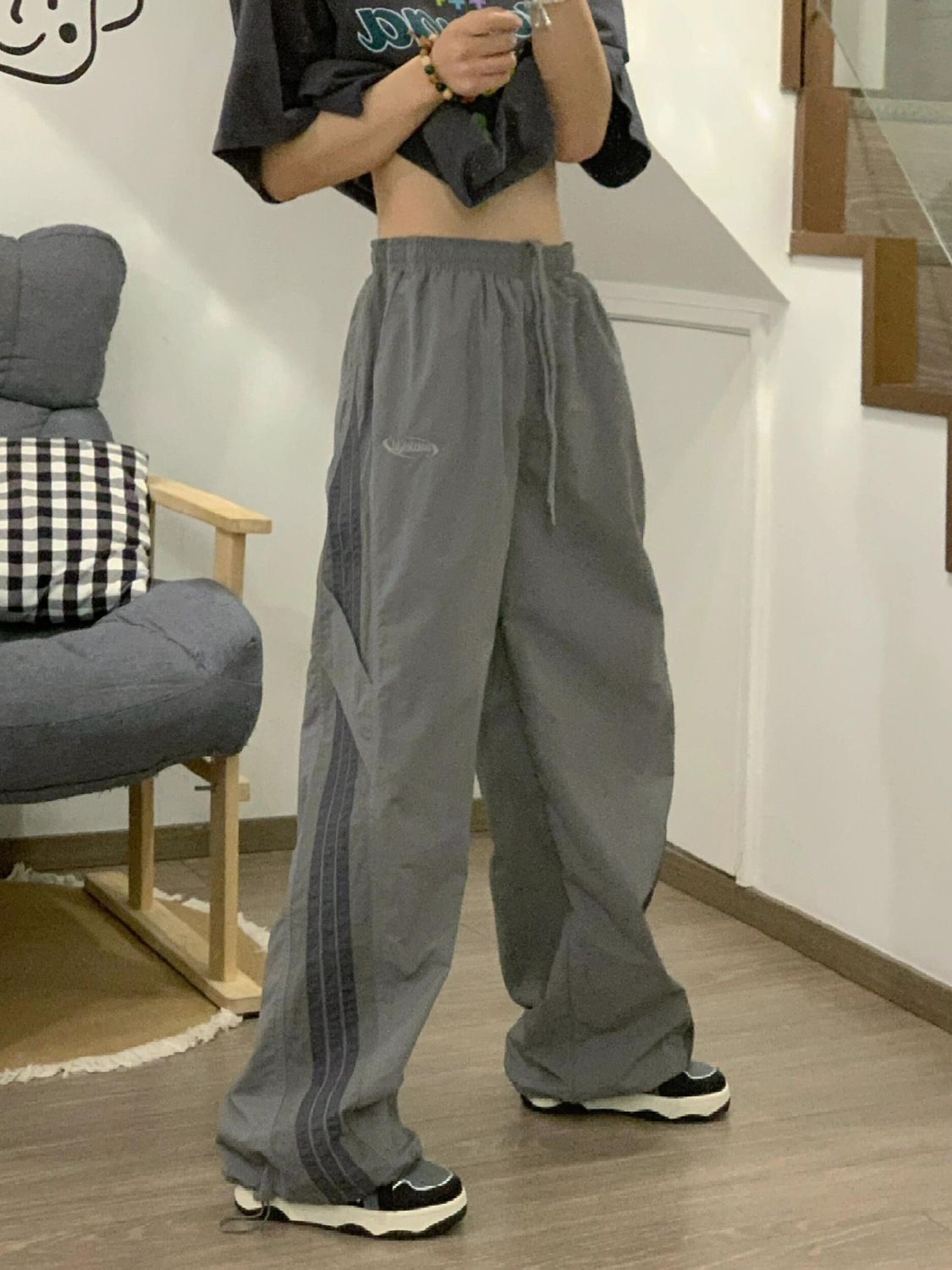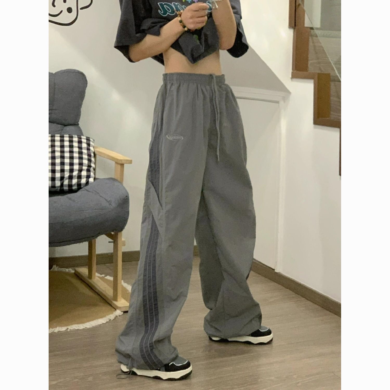 美式拼接工装裤女2024新款高腰宽松百搭潮流个性休闲运动阔腿长裤