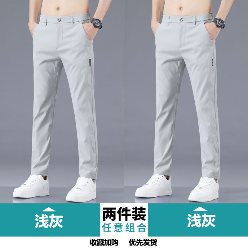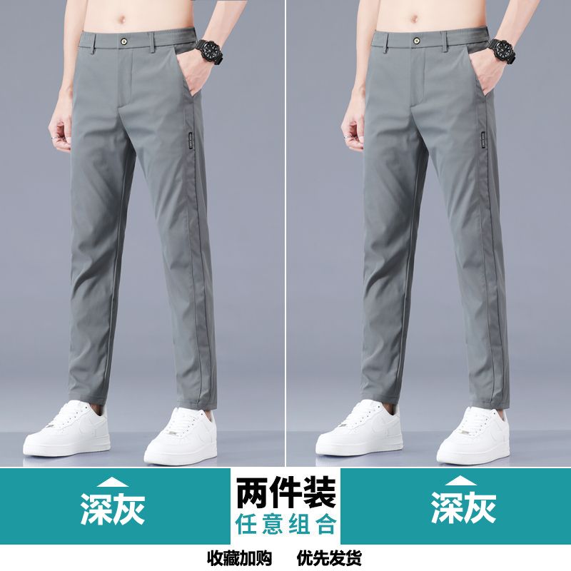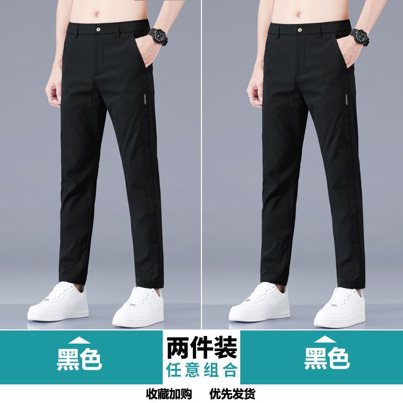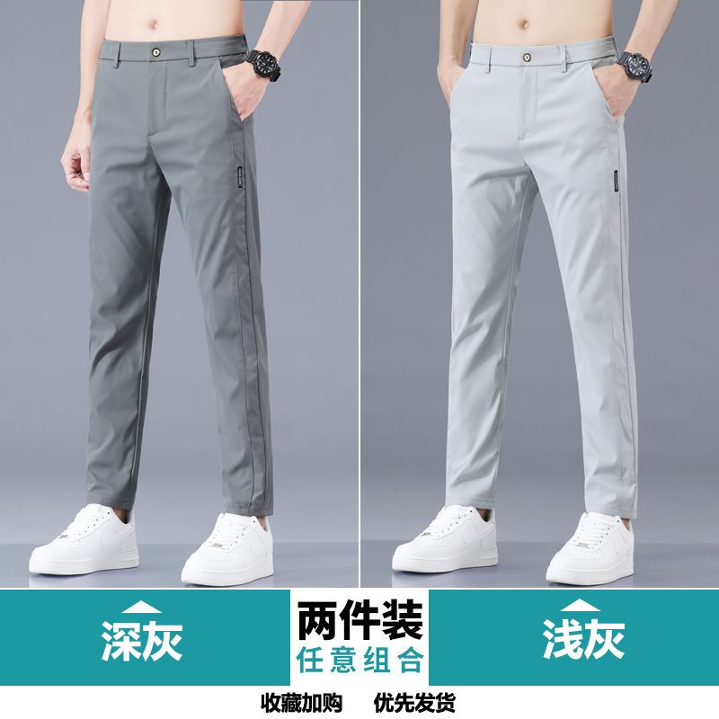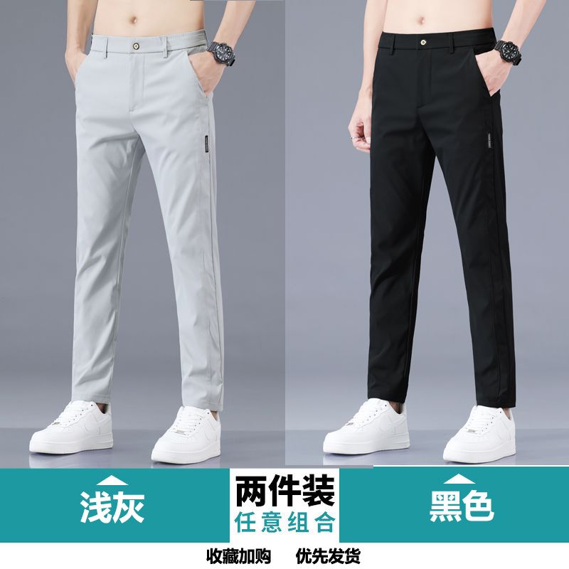 夏季新款男士修身裤子直筒宽松冰丝潮流百搭韩版休闲裤西裤长裤